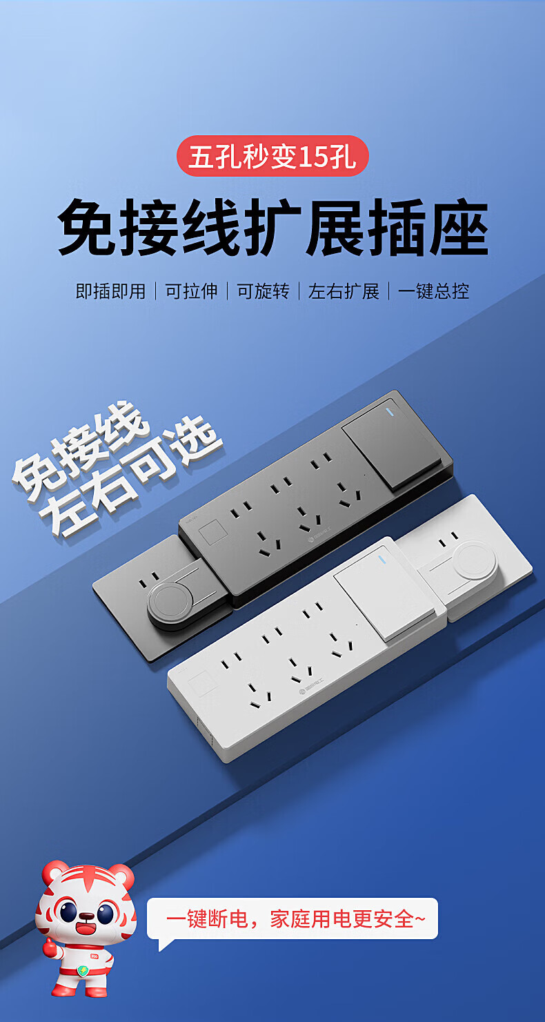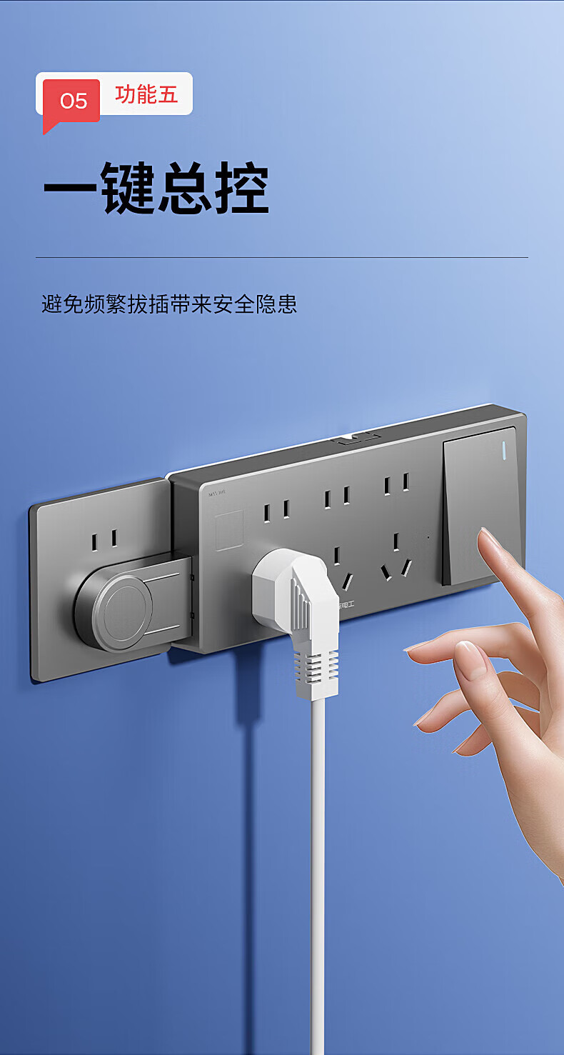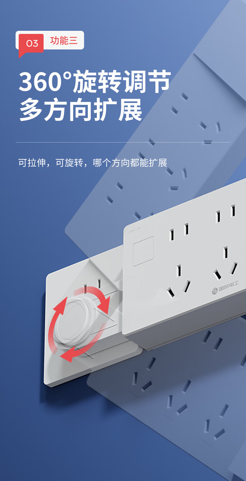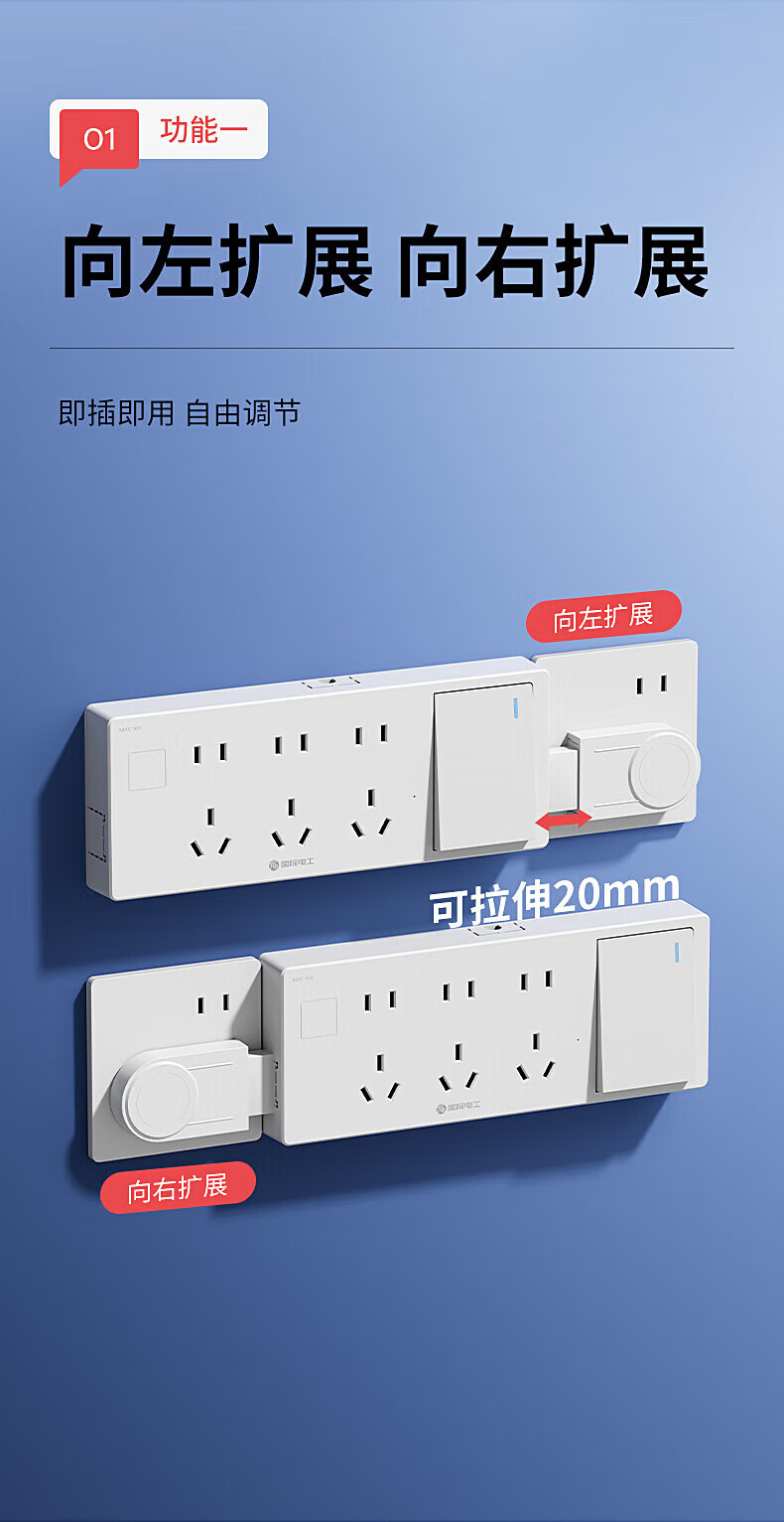 国际电工免接线不带线86型多功能排插墙壁延伸五孔旋转式拓展可调节家用 10孔总控【免接线向左扩展】白色