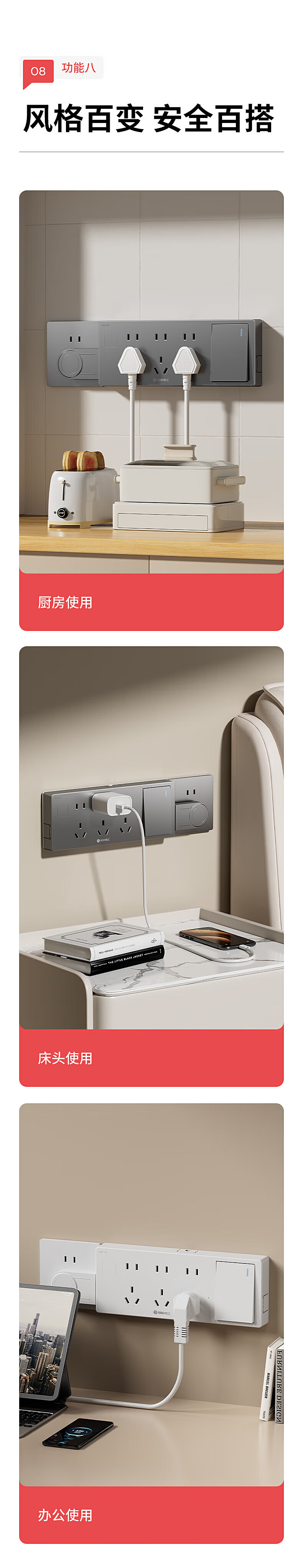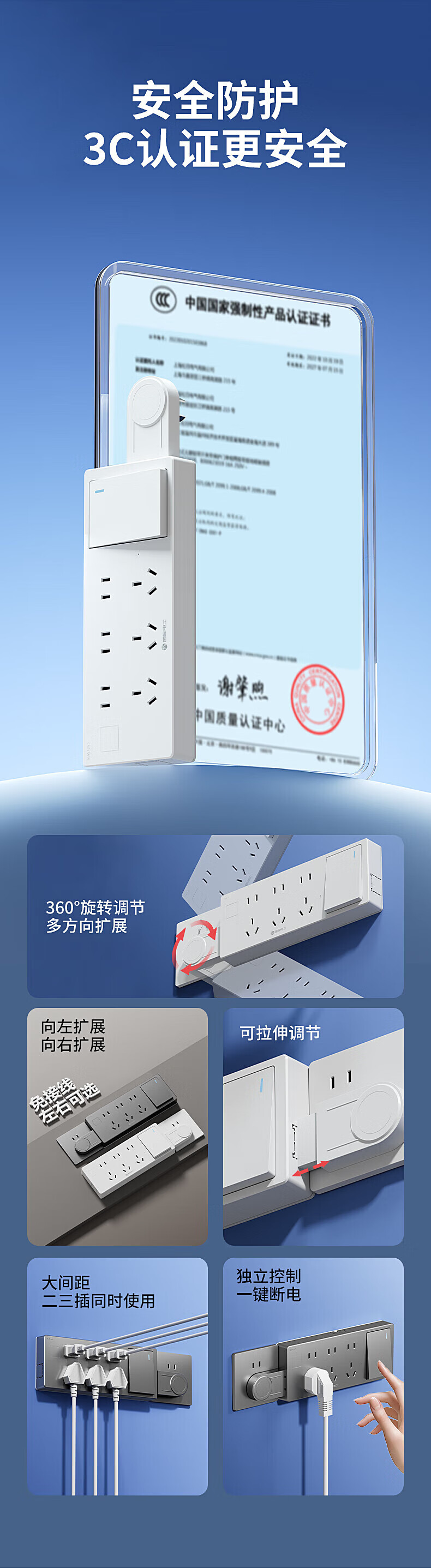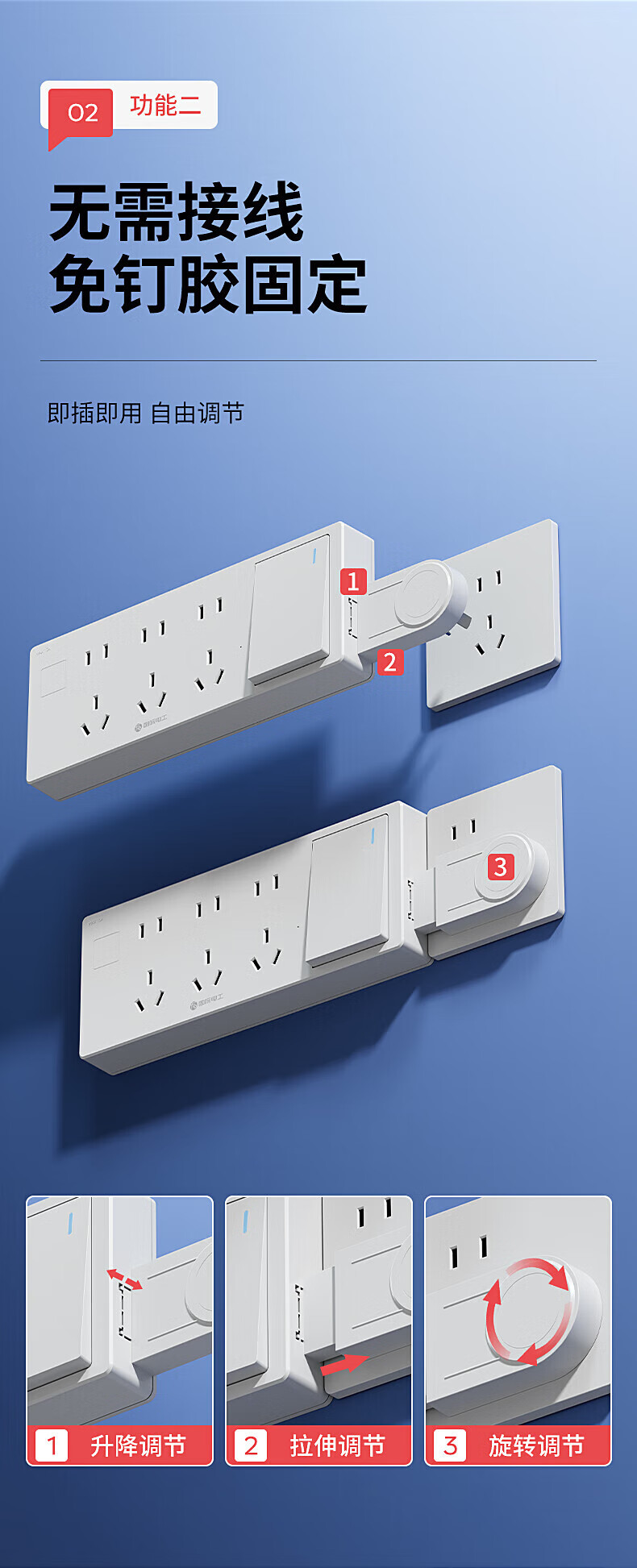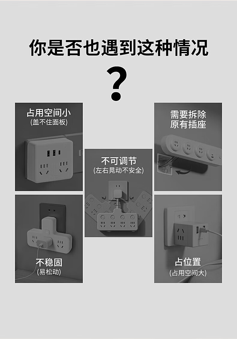 国际电工免接线不带线86型多功能排插墙壁延伸五孔旋转式拓展可调节家用 10孔总控【免接线向左扩展】白色