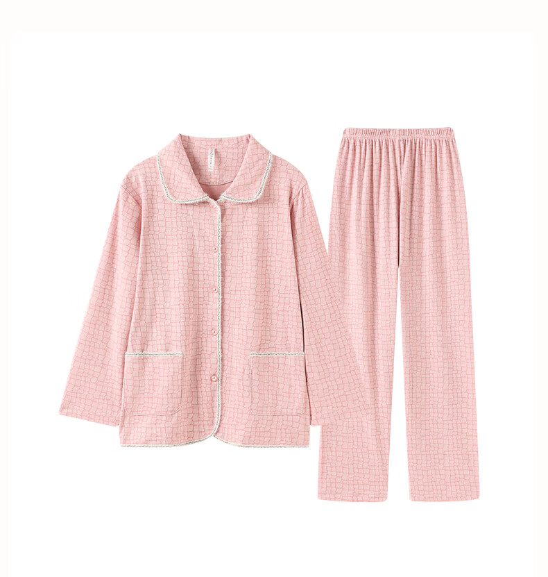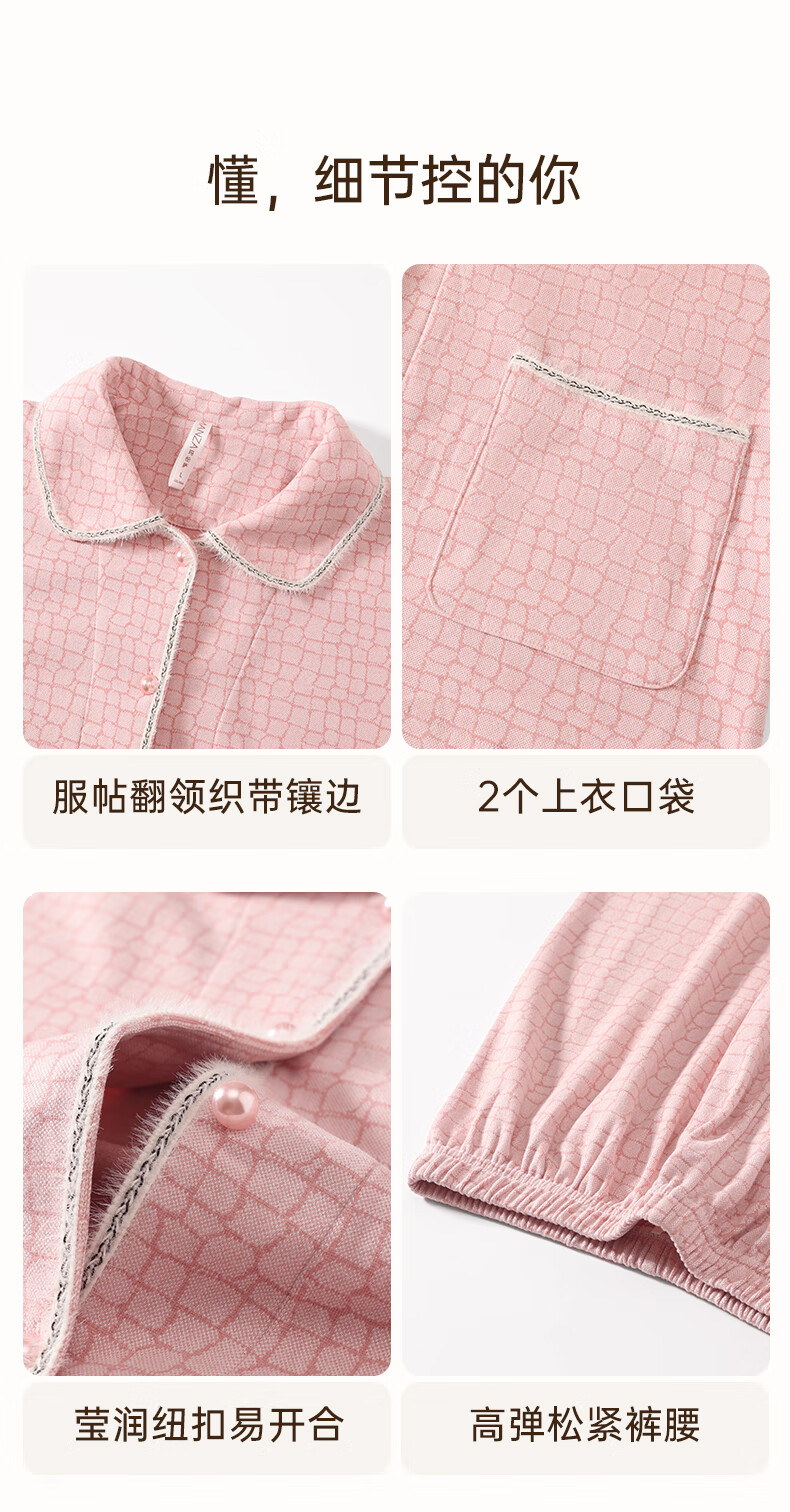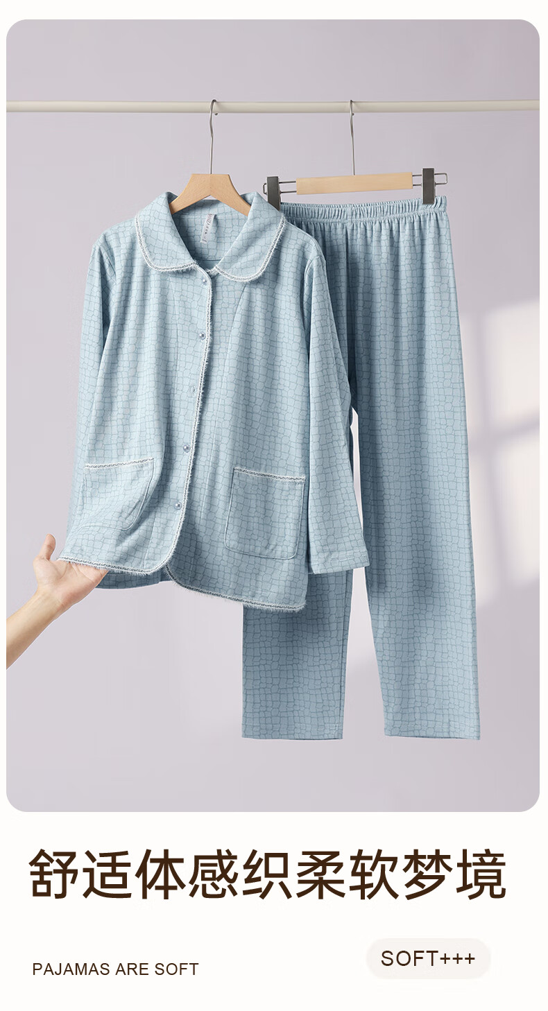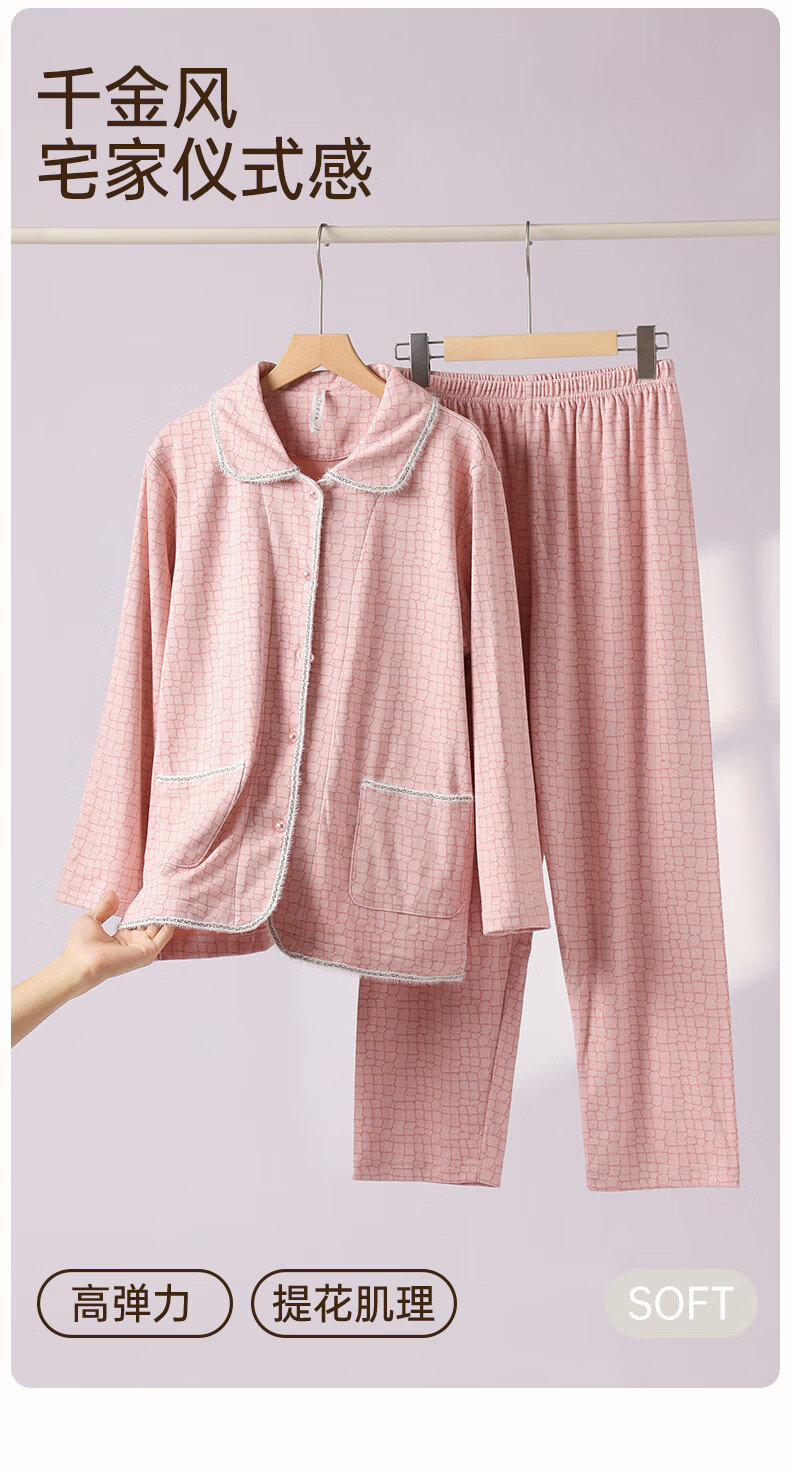 玛伦萨【抗静电】睡衣女春秋季可外穿2025新款长袖长裤翻领女士家居服 兰格 M