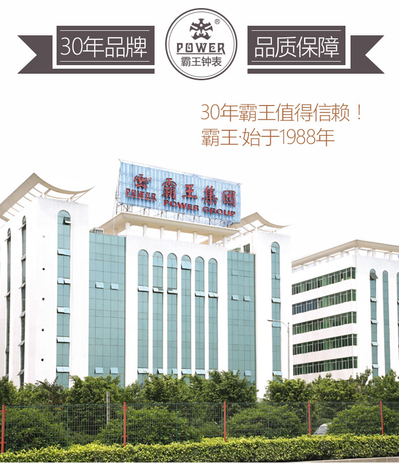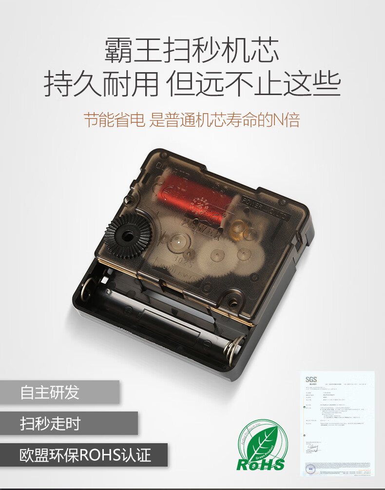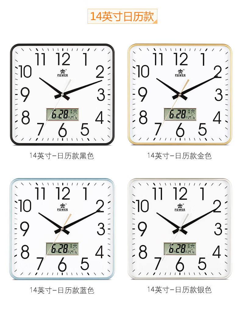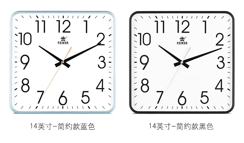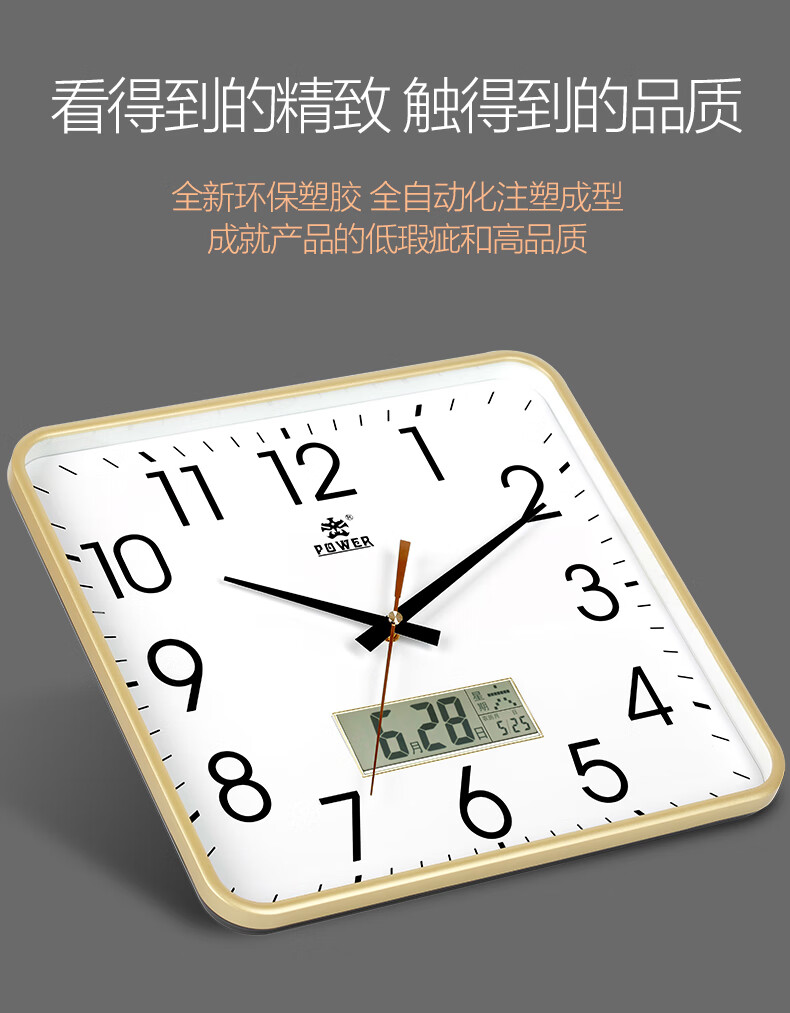 POWER霸王钟表挂钟方形客厅简约时钟立体字挂墙30cm银BW23005F