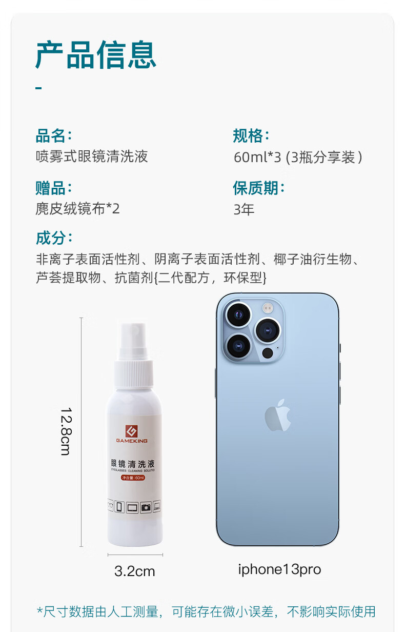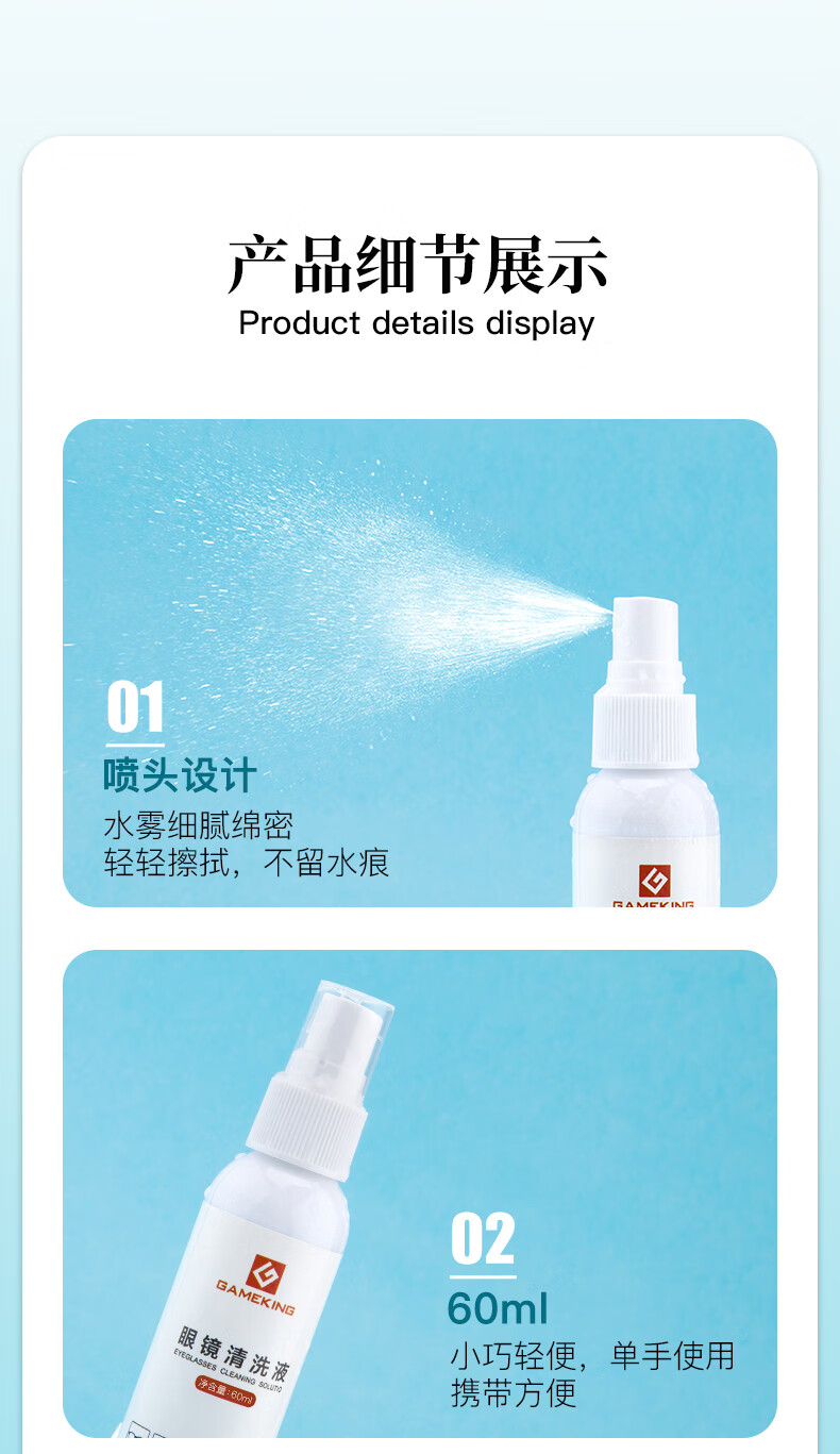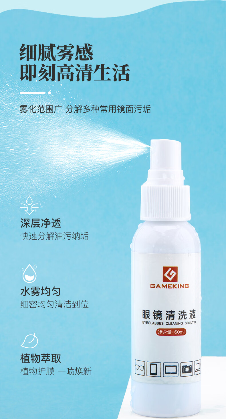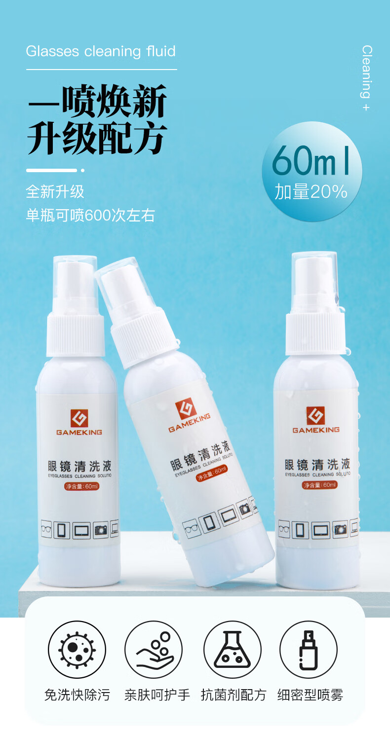 Gameking眼镜清洗液洗眼镜水手机电脑屏幕眼睛镜片喷雾式清洁剂神器开学