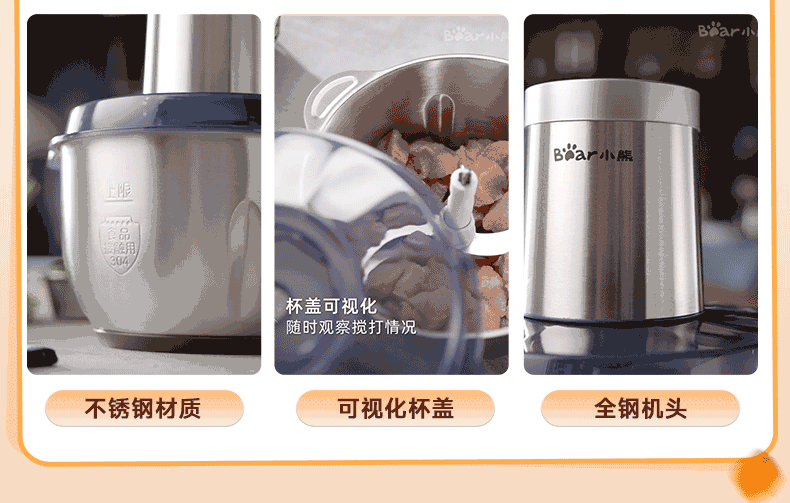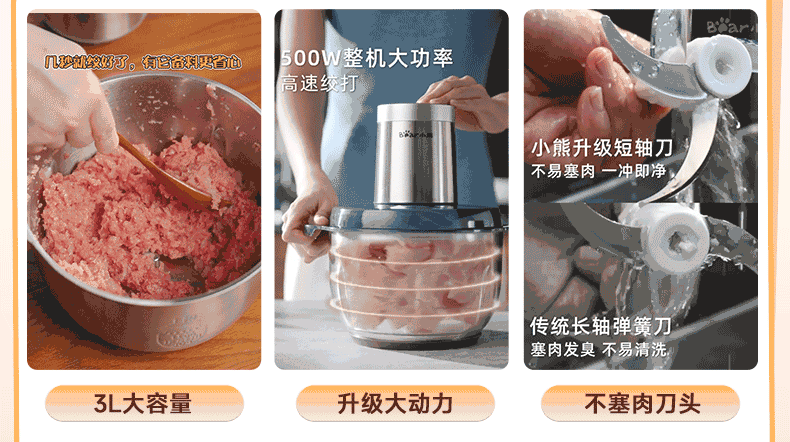 小熊(Bear)绞肉机家用 碎肉机电动搅拌机饺子肉馅蒜蓉机 搅肉机 绞肉绞菜多功能一体机 3L全钢杯 QSJ-P05E3