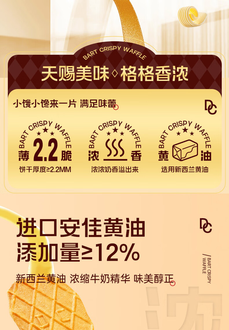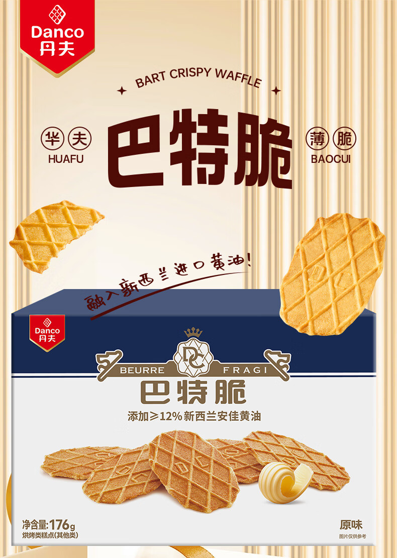 丹夫巴特脆华夫176g/盒进口黄油薄脆饼干营养早餐下午茶独立点心零食