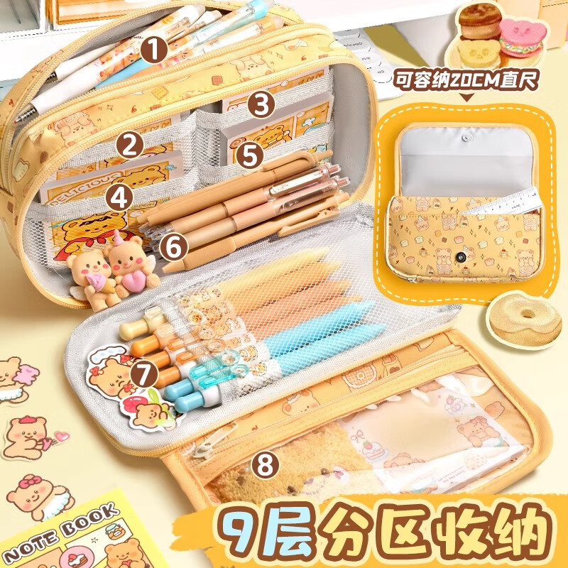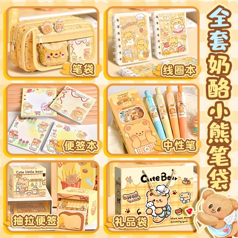 舒星小熊笔袋黄油文具盒礼盒套装大容量女孩高颜值铅笔盒儿童开学大礼包一年级初中小学生入学生日礼物