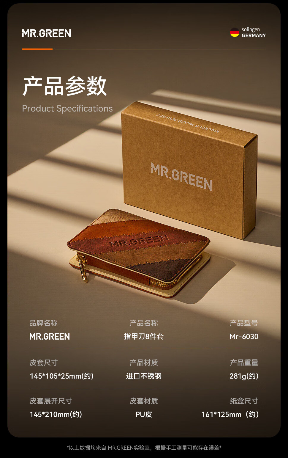 MR.GREEN德国指甲刀套装全套指甲剪工具指甲钳大小号进口礼物8件套Mr-6030