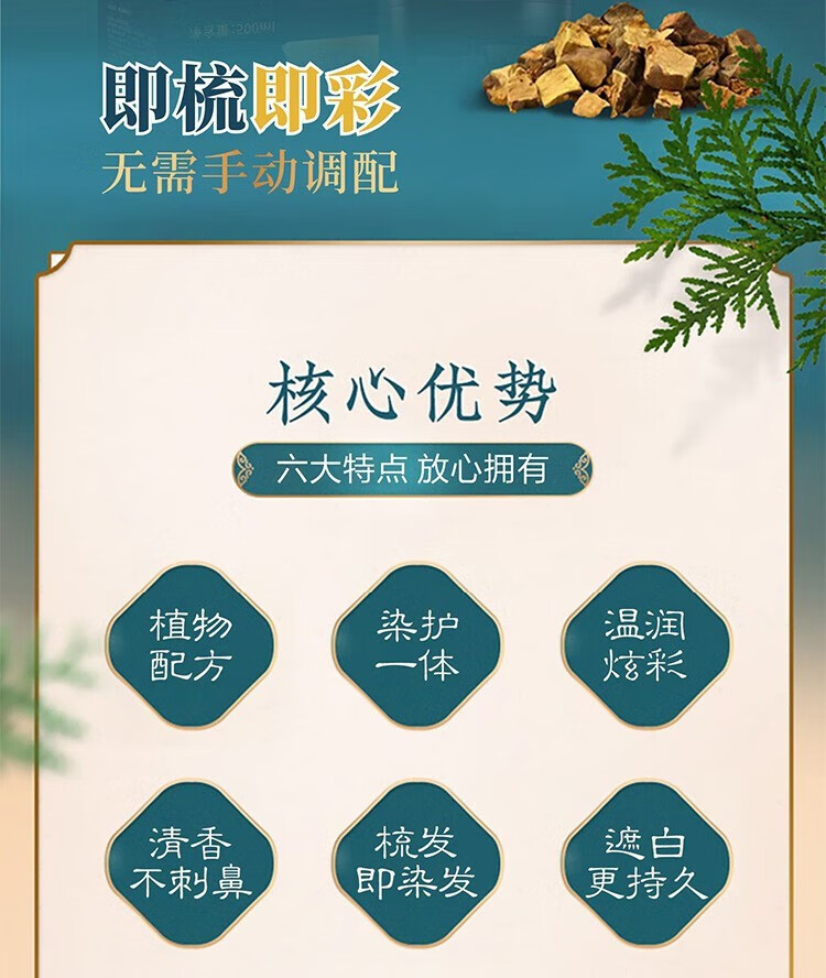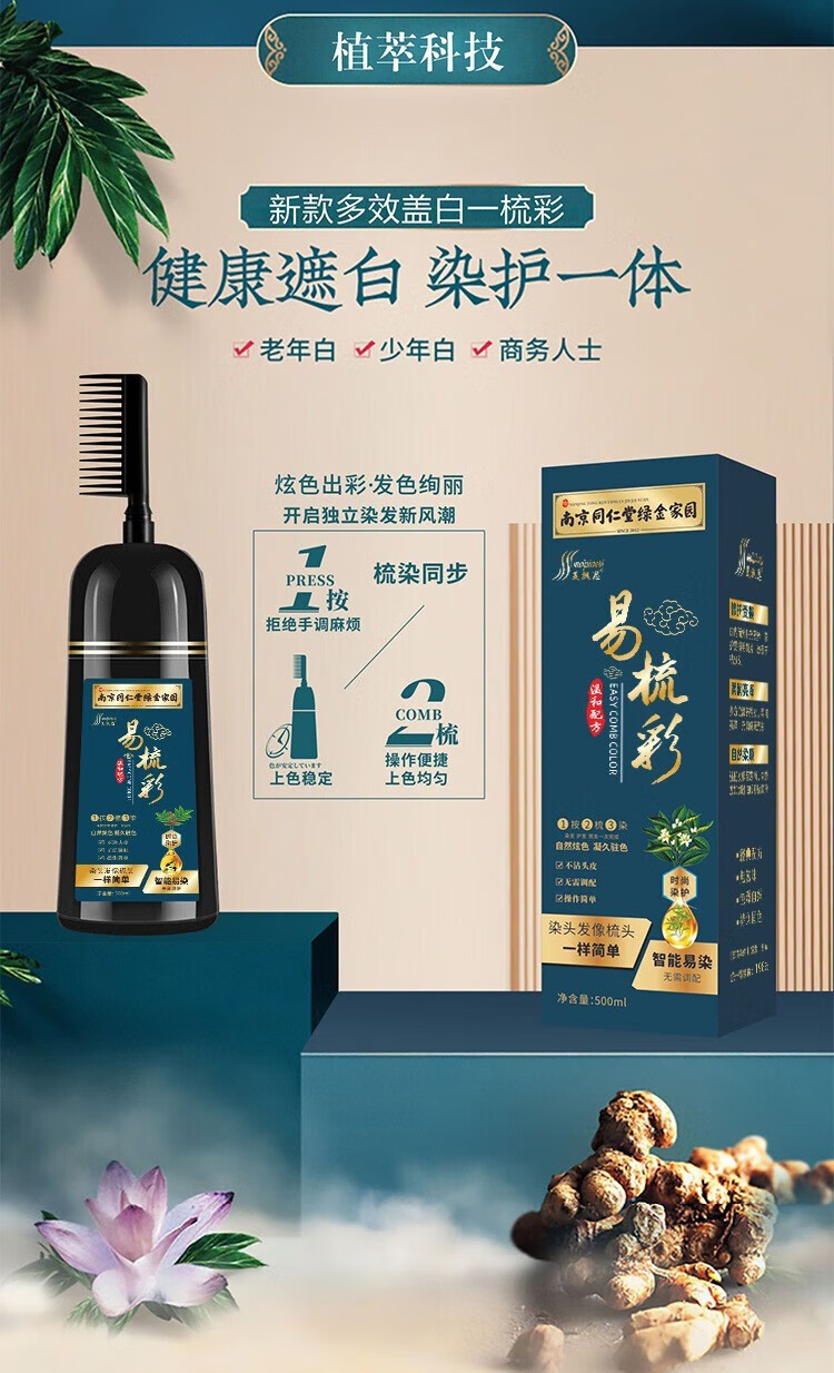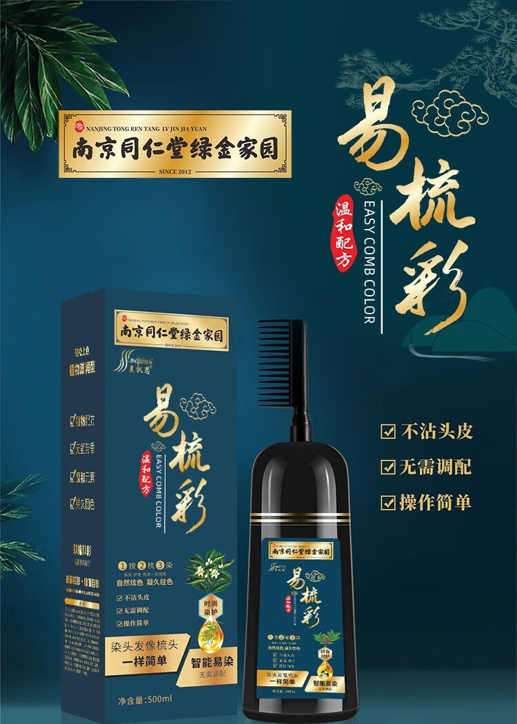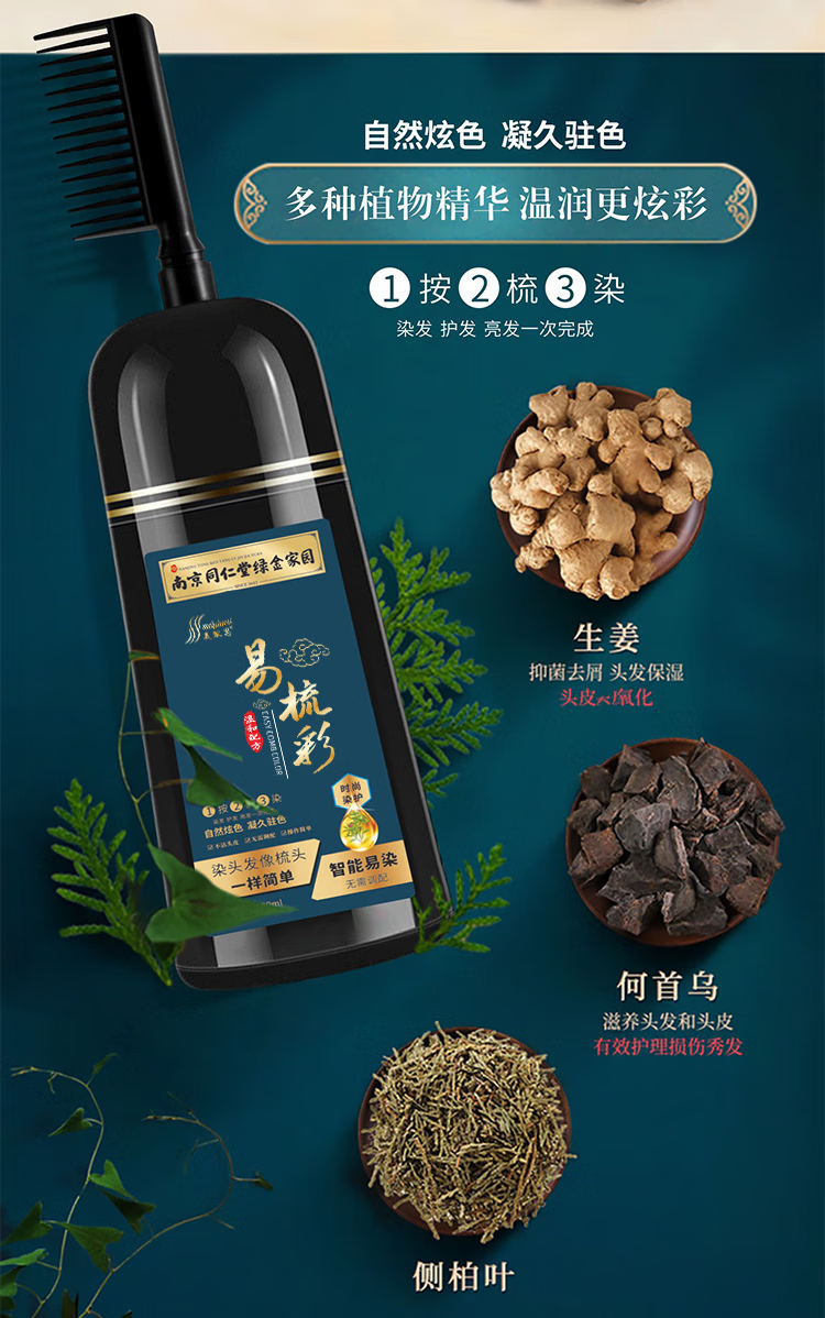 南京同仁堂【明星代言】染发一洗黑染发水黑色自然清水黑发男女士焗油一梳黑 1盒装