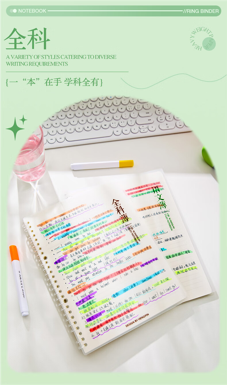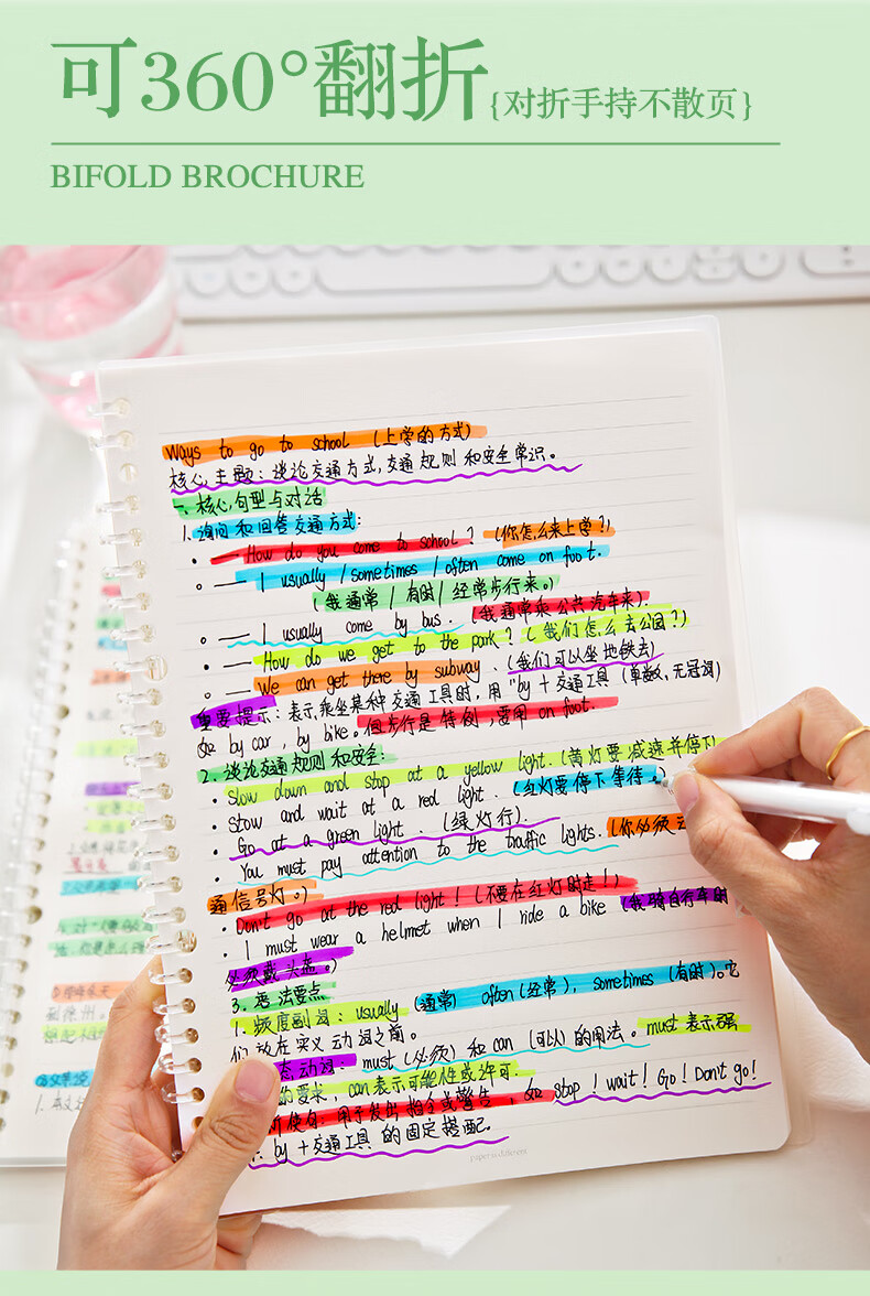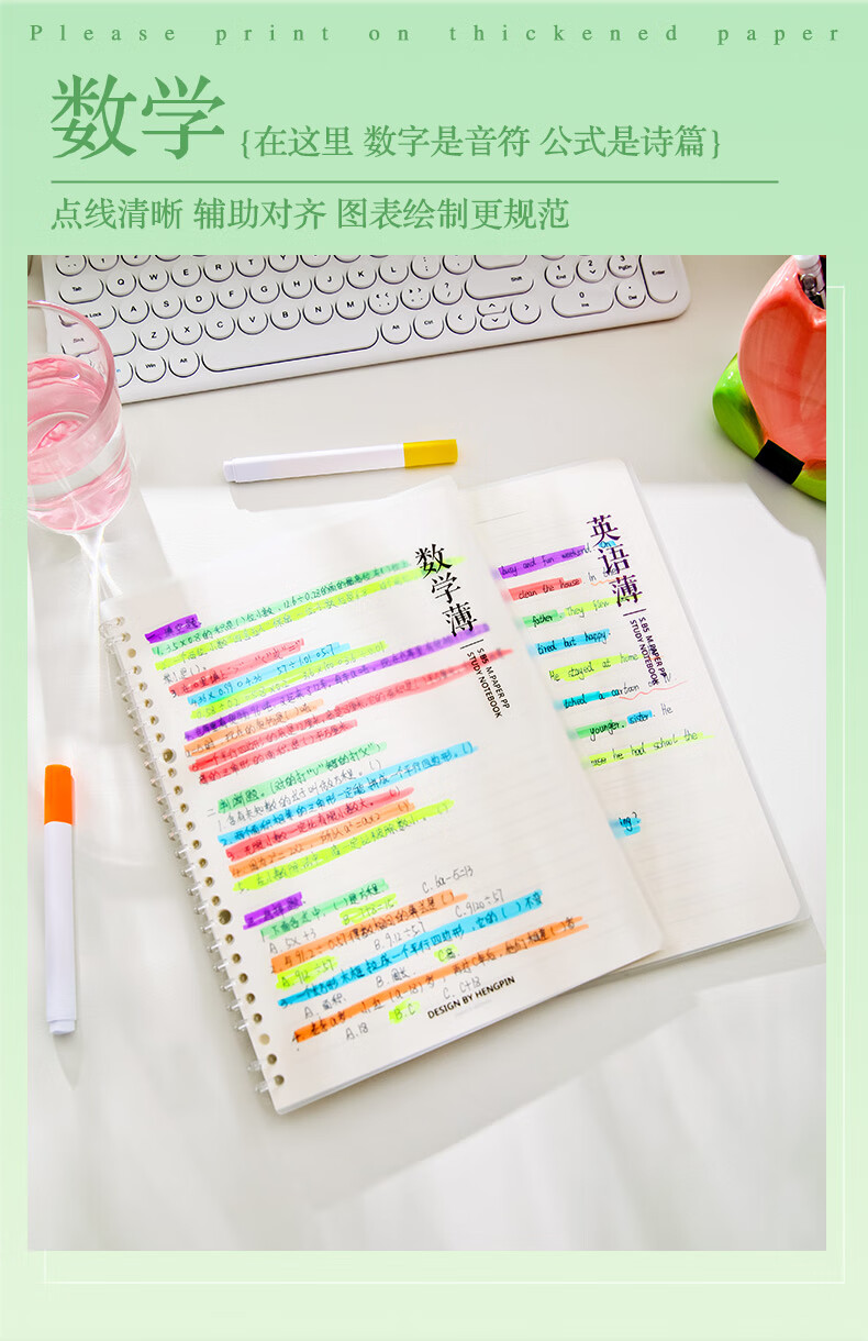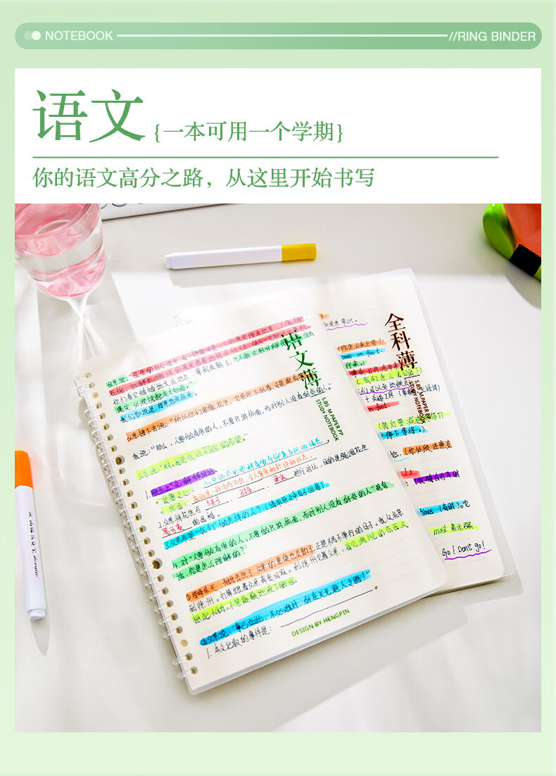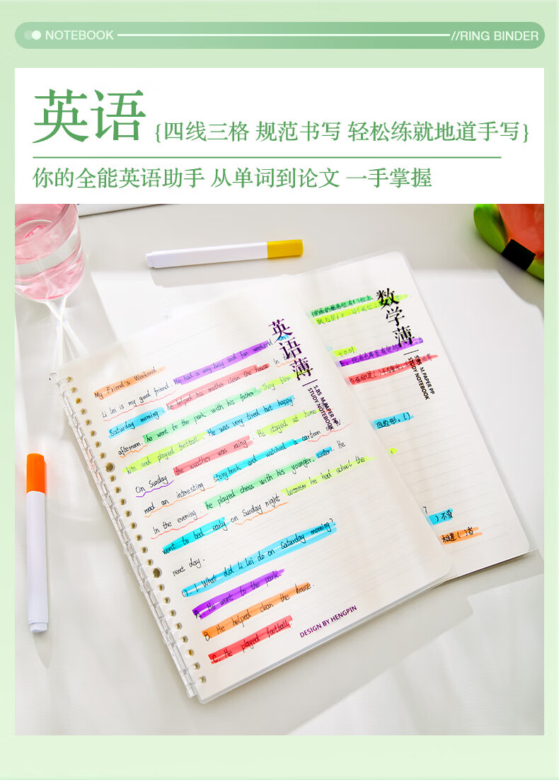 少年伴英语本笔记本记事本高颜值B5大号活页本加厚学科本可拆卸学生课堂笔记语文英语错题本英语簿两本装