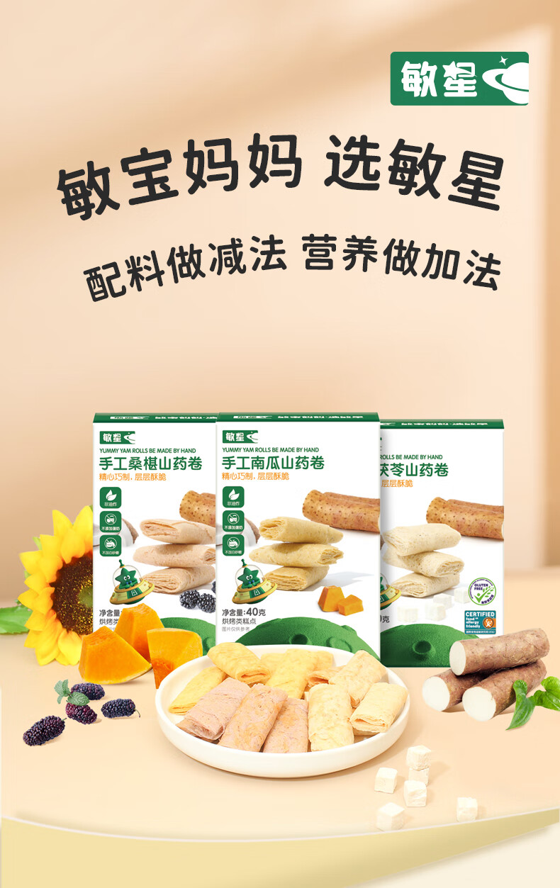 敏星椰子山药茯苓脆脆卷无小麦麸质不加蛋奶休闲零食送宝宝儿童食谱 【无麸质】3盒【口味各一】