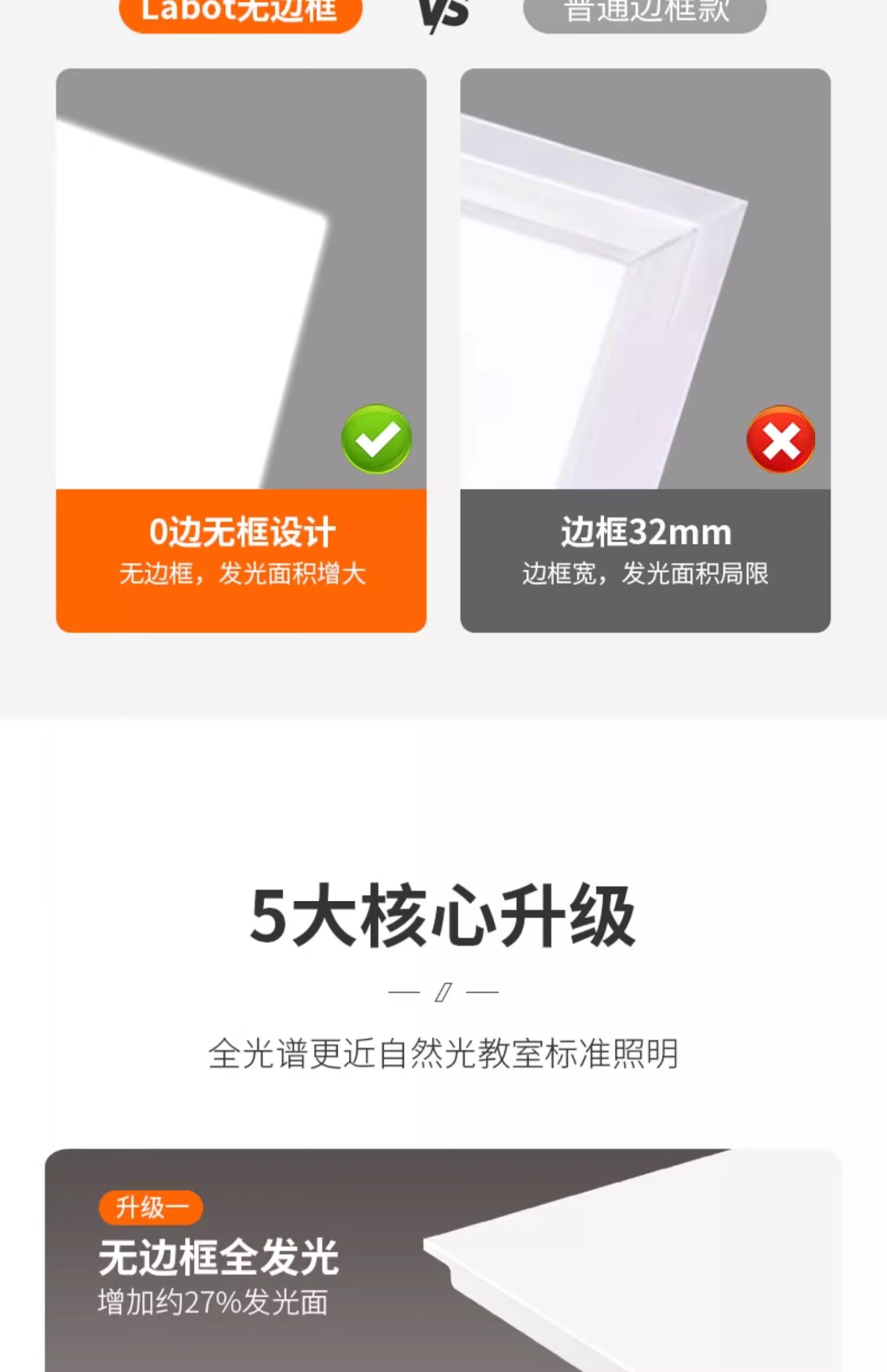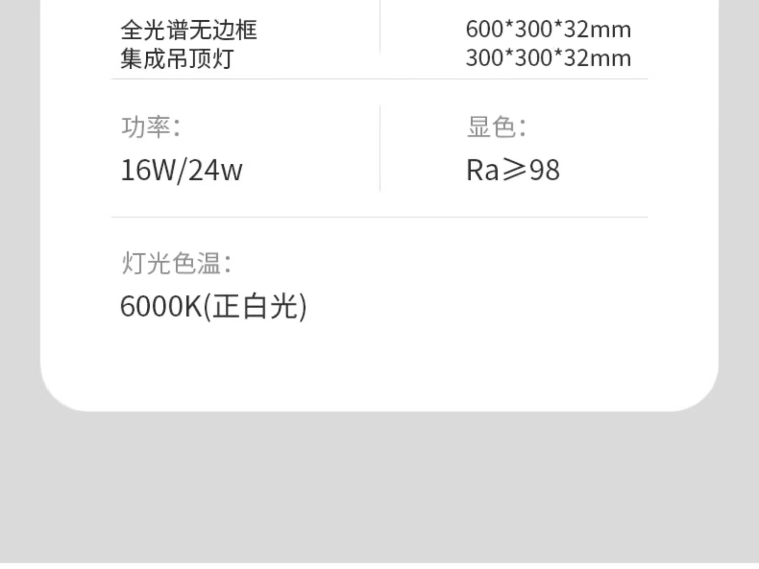 拉伯塔厨房集成吊顶led吸顶灯卫生间浴室铝扣板300x300x600平板灯无边框 【无边全发光】300*600/38W 【白光6000K】