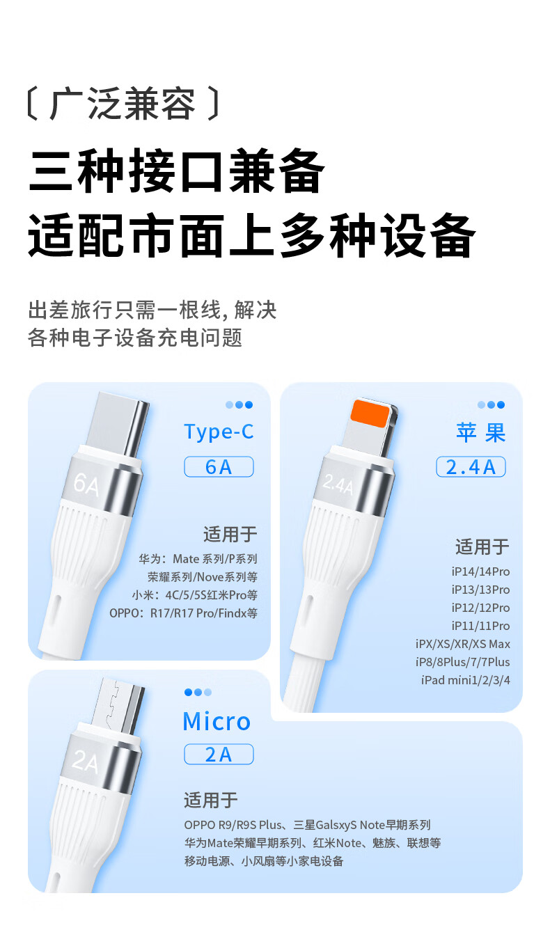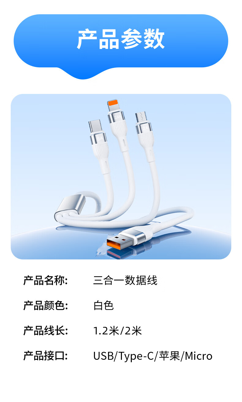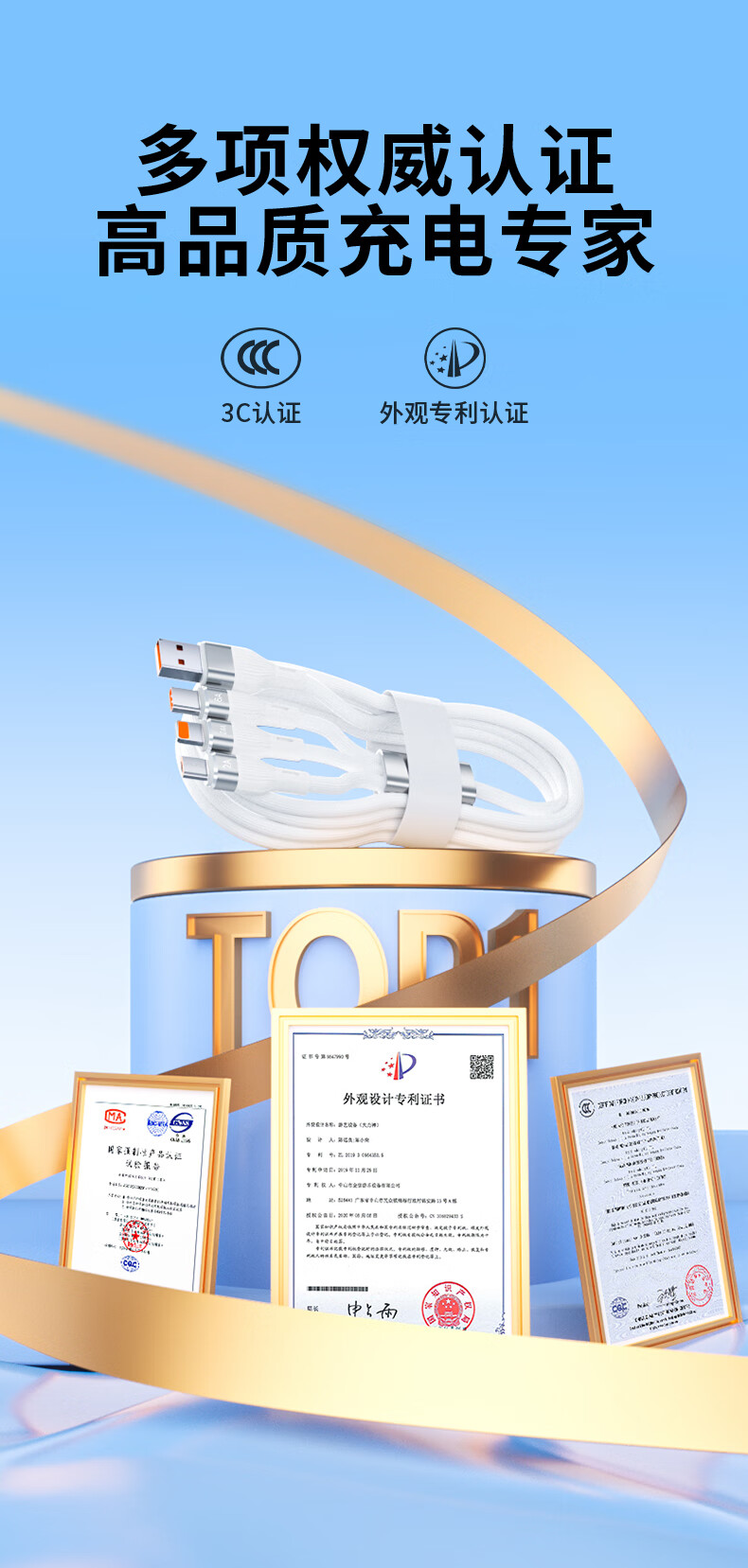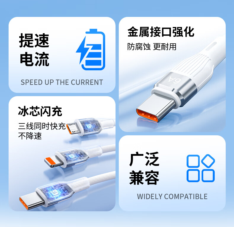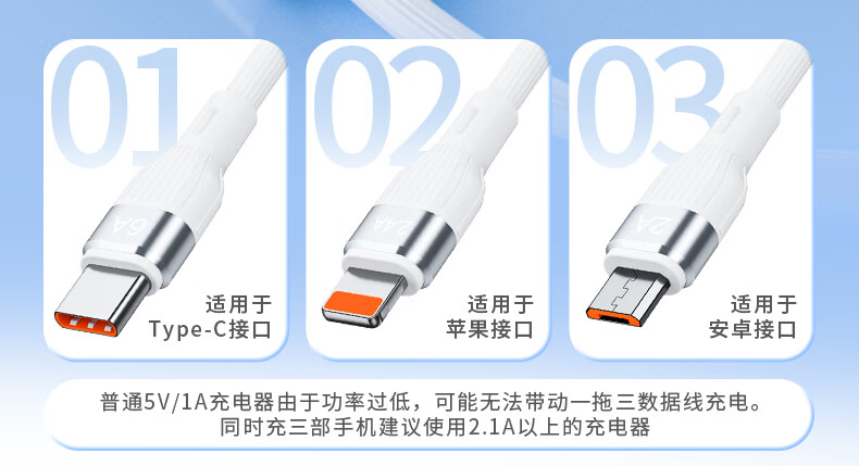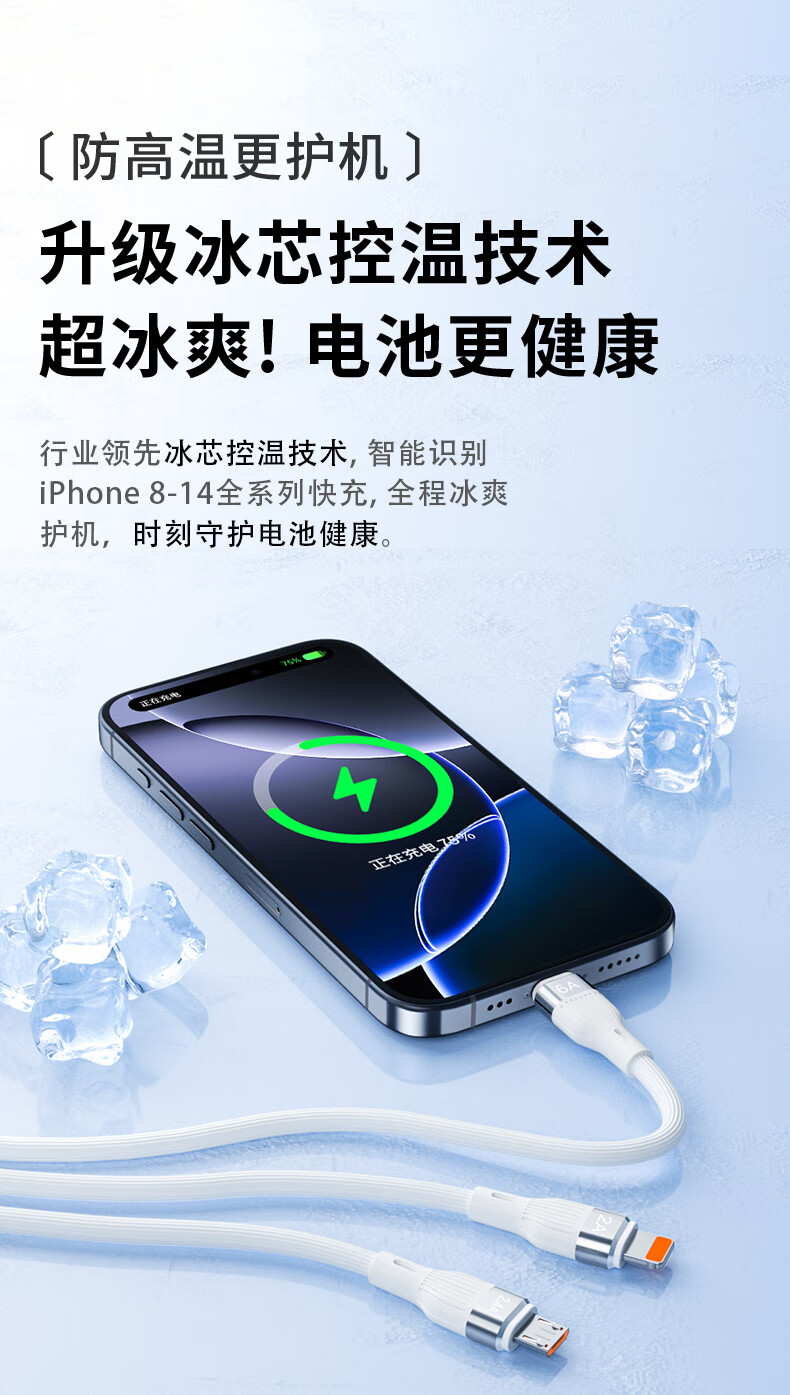 AMKE充电线三合一数据线一拖三100W快充type-c多三头适用苹果iPhone小米OPPO三星华为vivo安卓车载