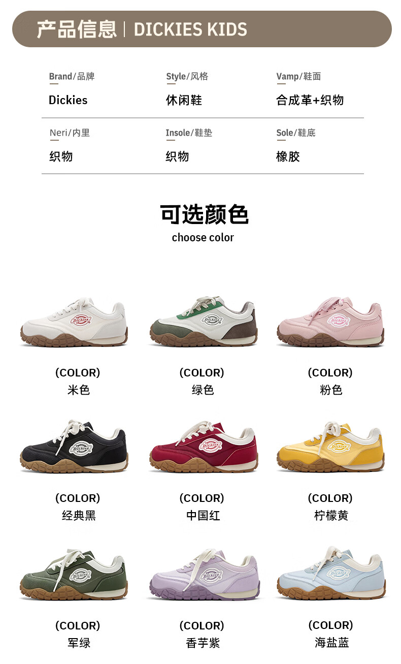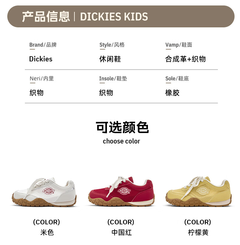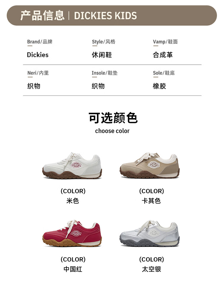 Dickies女童德训鞋2025秋季新款儿童百搭小白鞋学生时尚休闲跑步运动鞋
