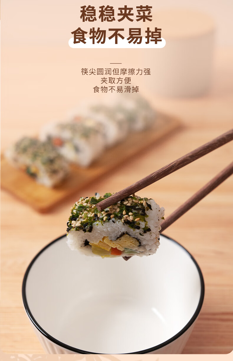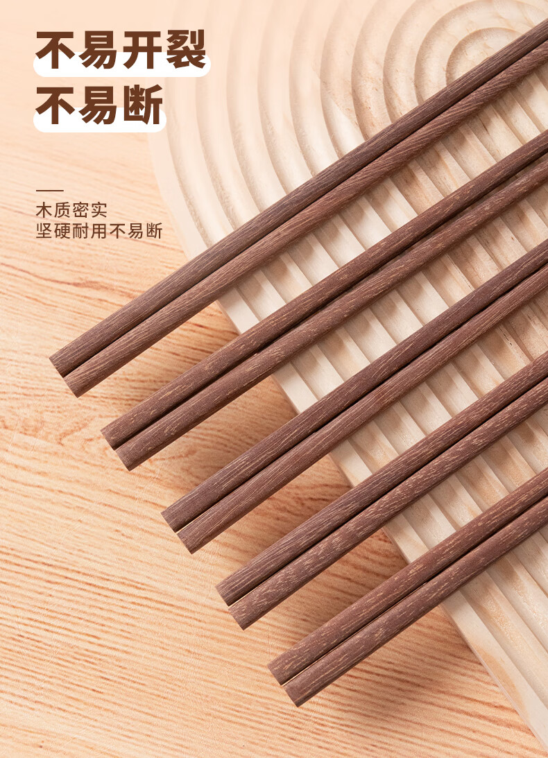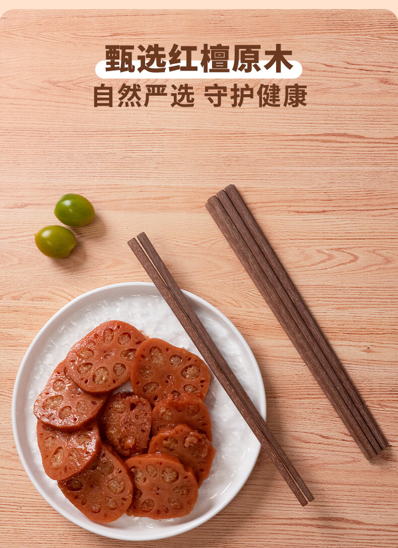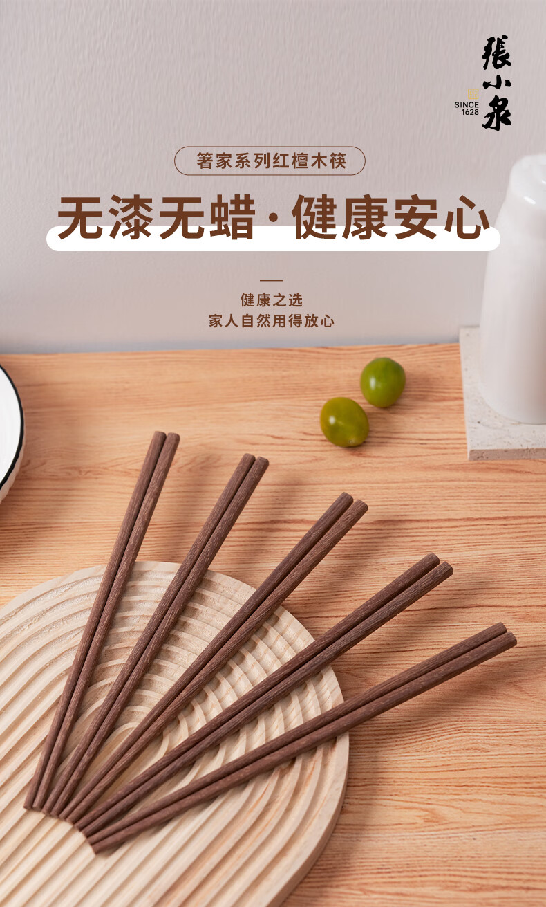 张小泉红檀木筷子 天然木筷 家用实木无漆无蜡筷子餐具五双装C400201