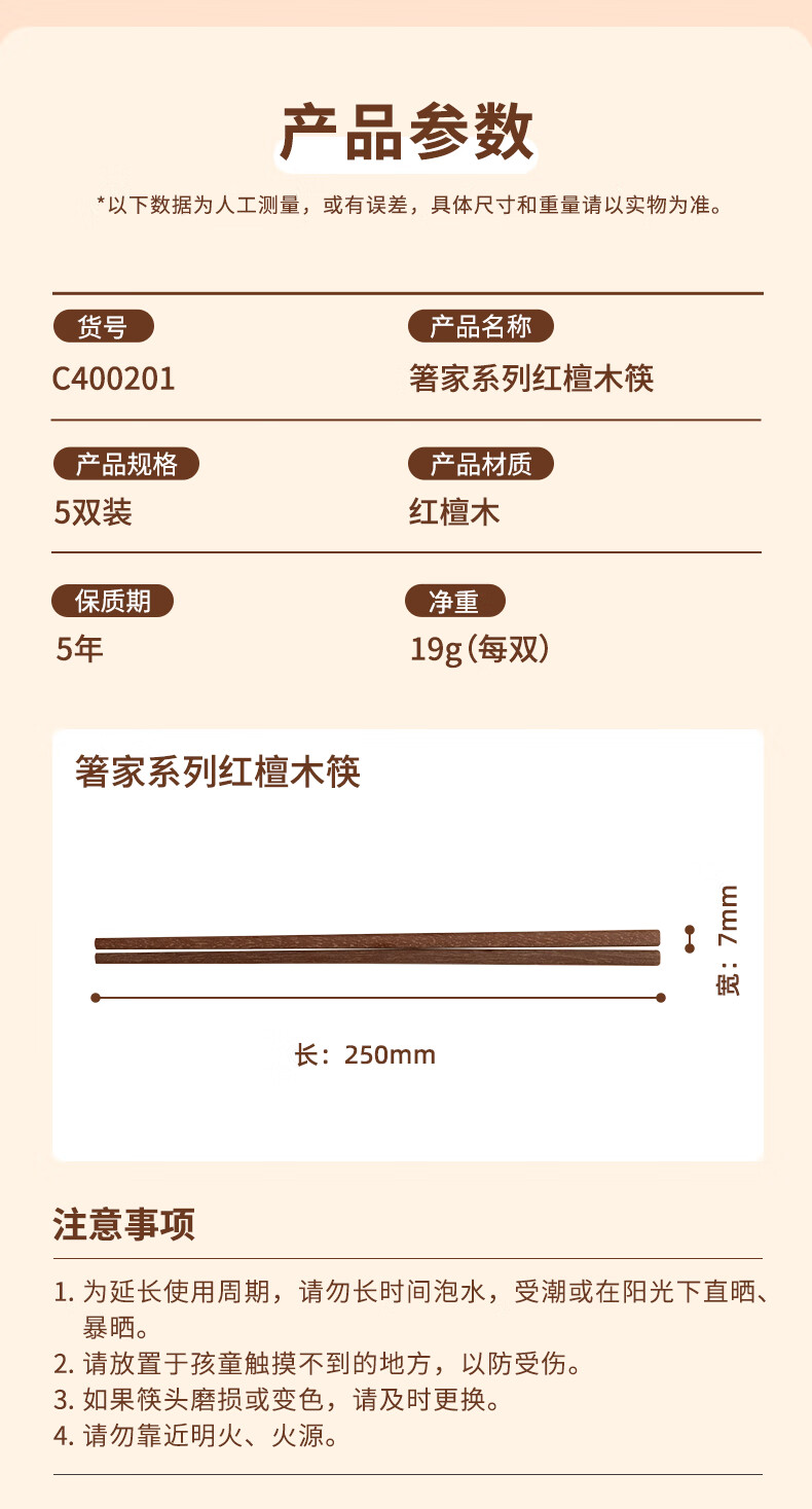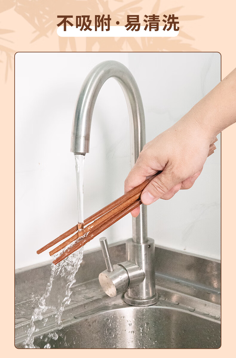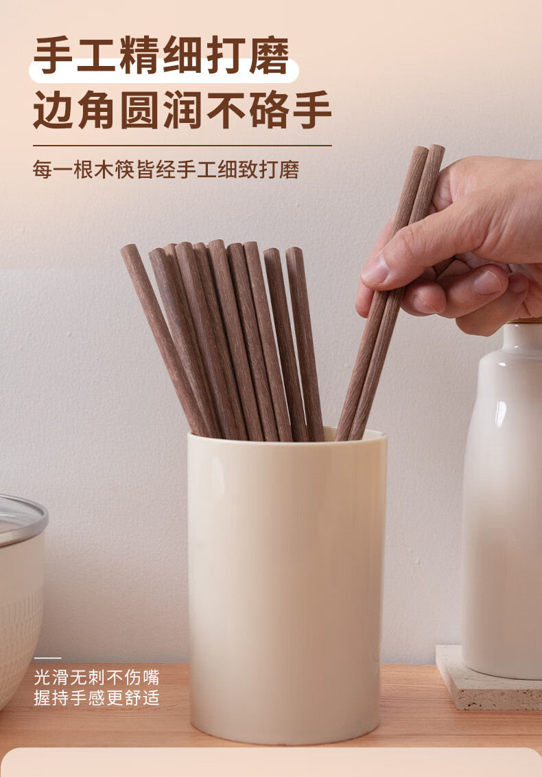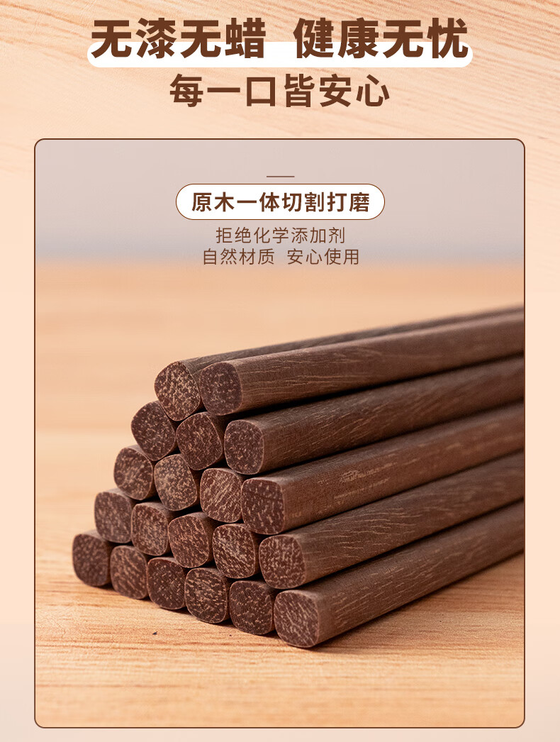 张小泉红檀木筷子 天然木筷 家用实木无漆无蜡筷子餐具五双装C400201
