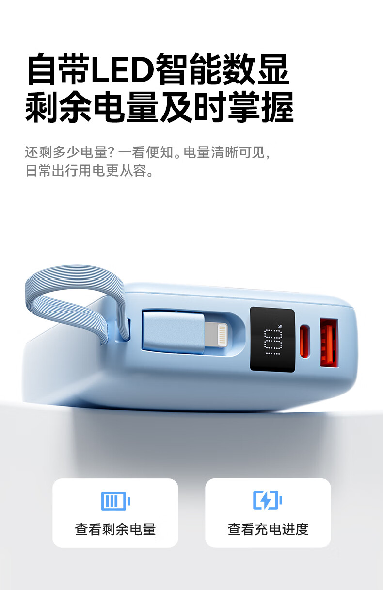 品胜(PISEN)3C认证充电宝 可上飞机 超级快充22.5W圆屏数显2万毫安大容量充电宝移动电源苹果17华为小米安卓 云初白【2万毫安圆屏数显22.5W】