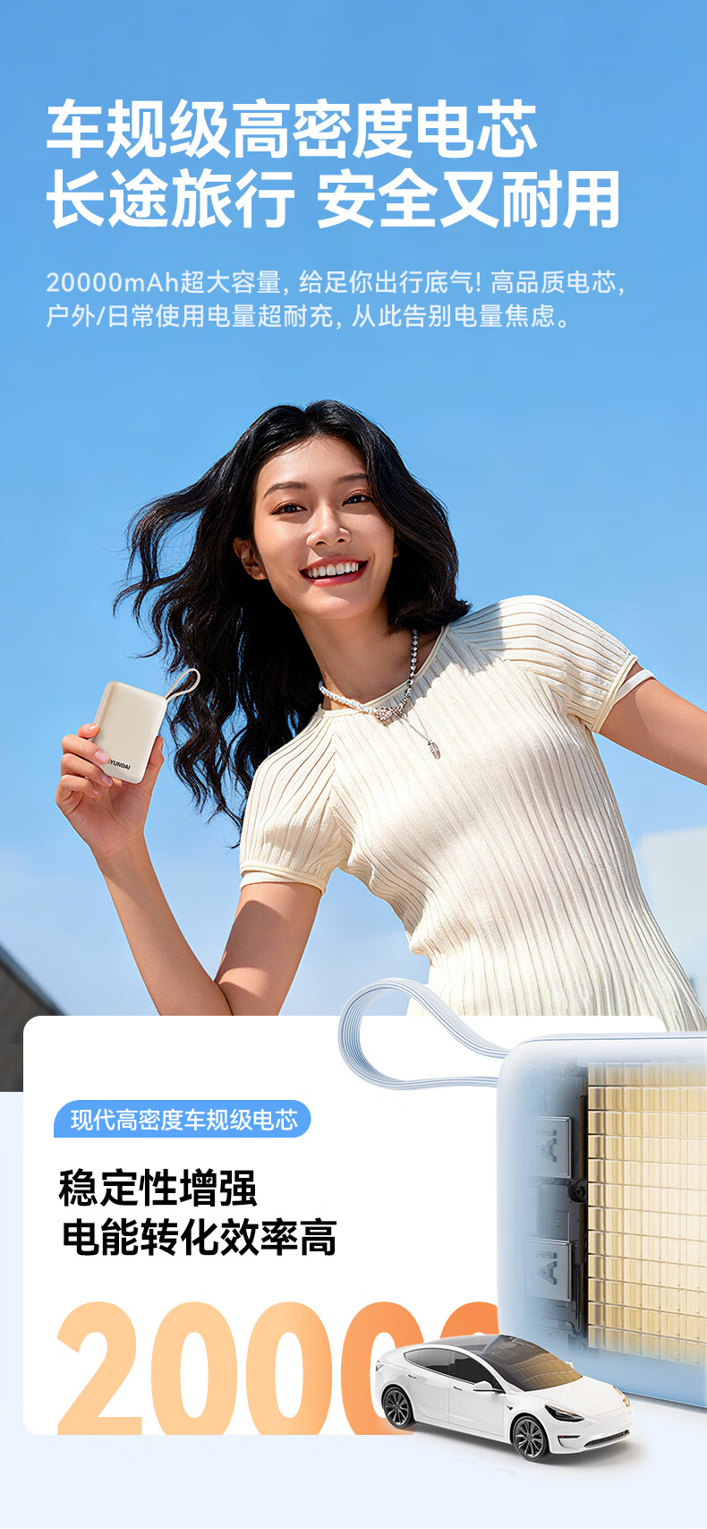 倍魔充电宝20000毫安自带线AC插头新国标3C认证可上飞机 22.5W快充三合一移动电源适用苹果17小米华为 2万毫安|自带双线|AC折叠插头