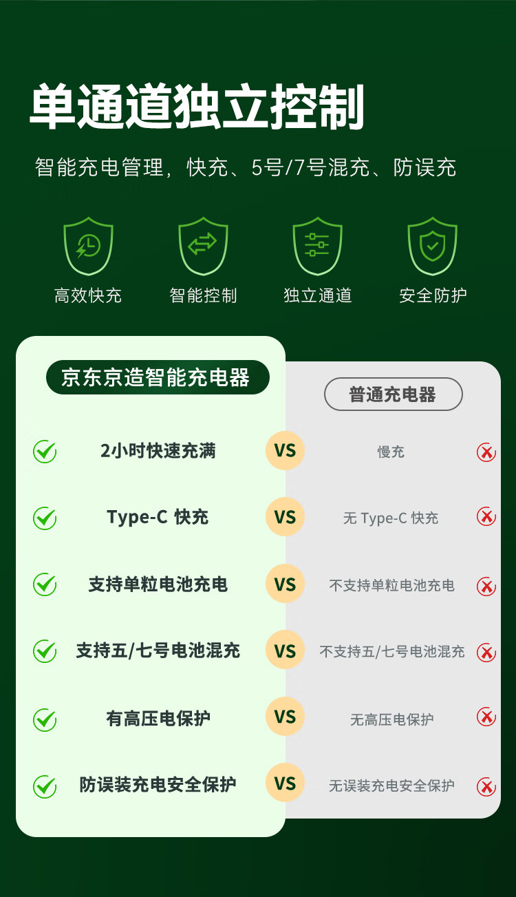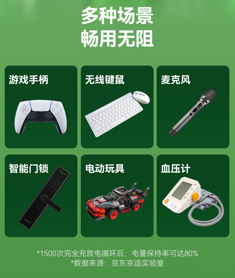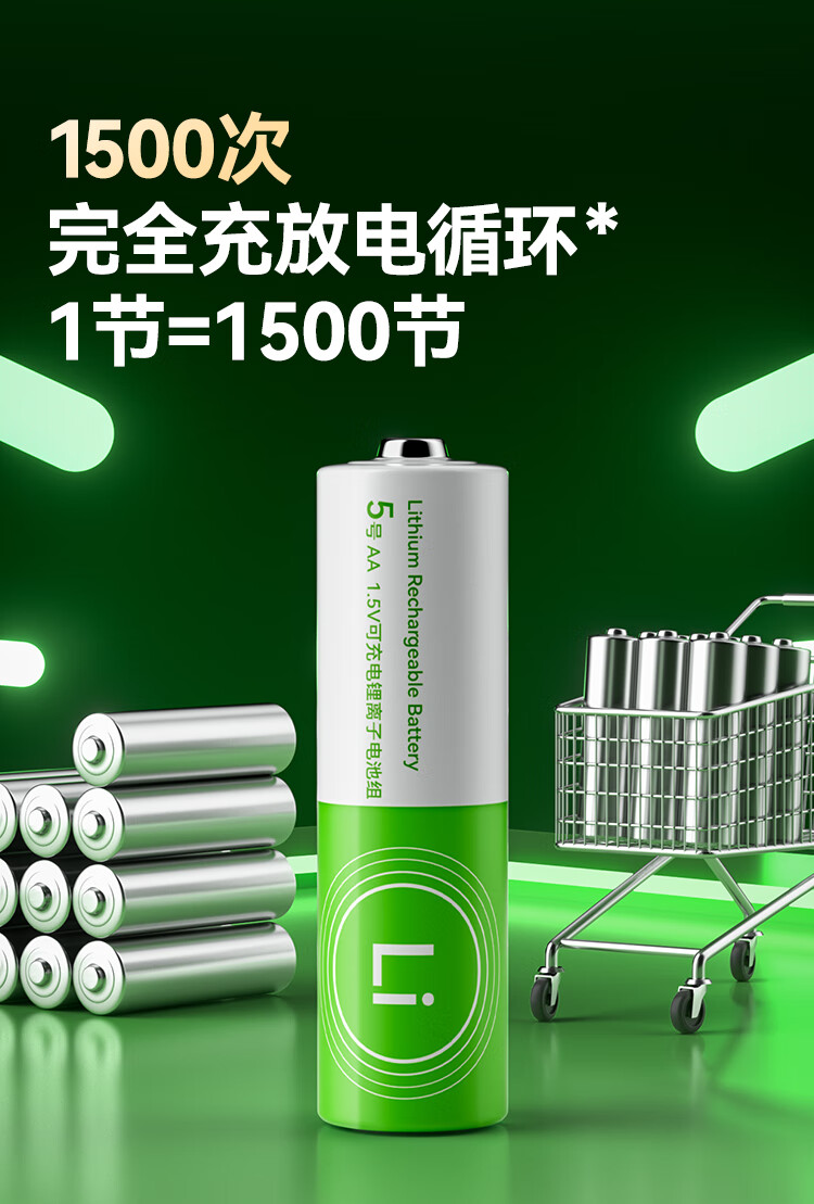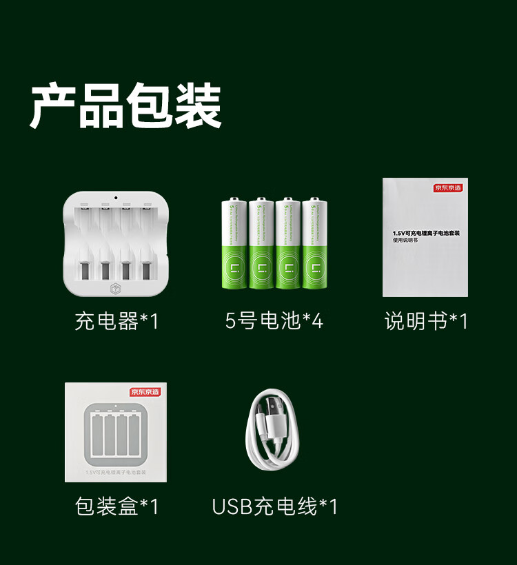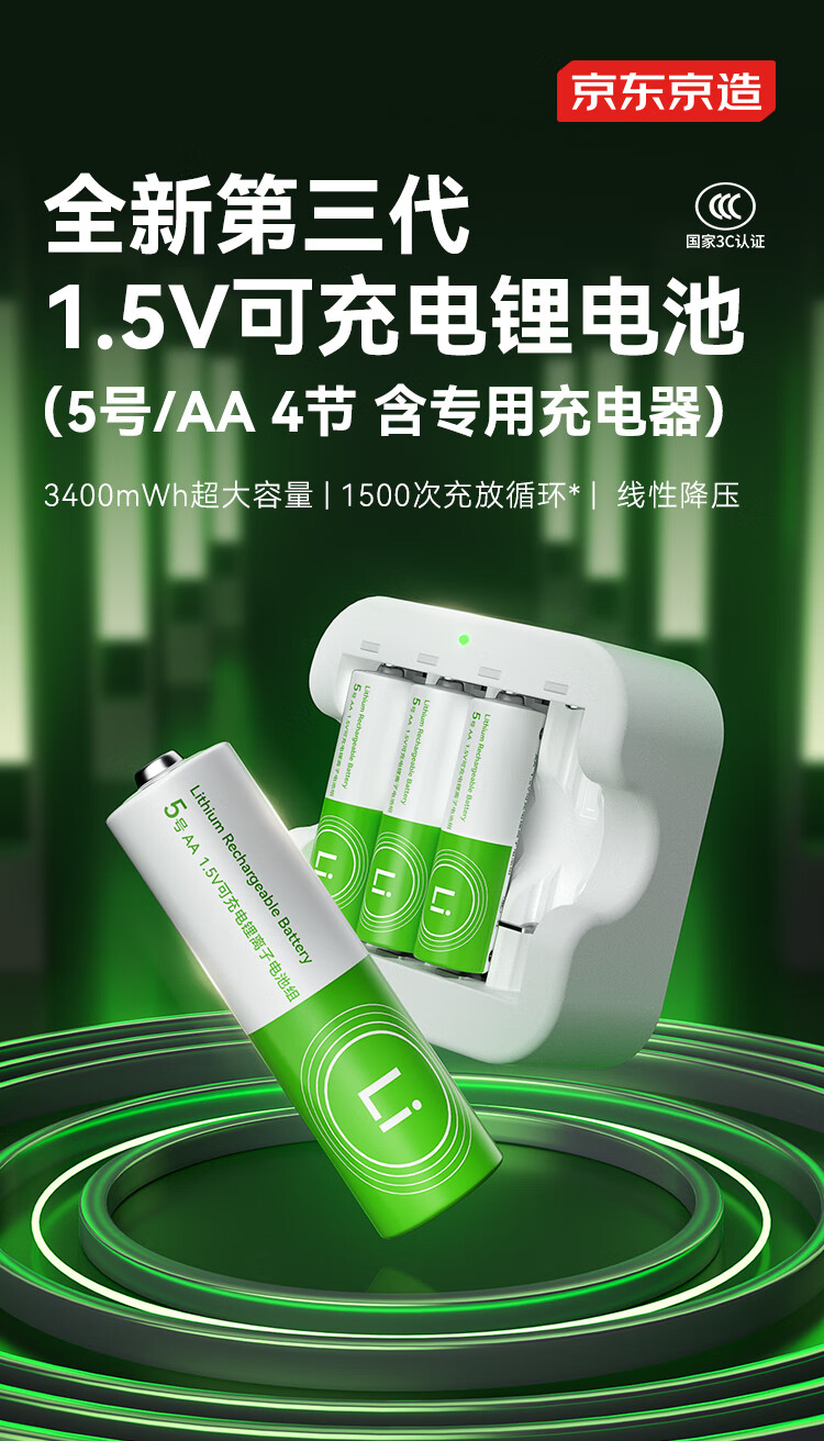 京东京造5号充电锂电池4粒套装 1.5V恒压快充 适用游戏手柄/键鼠/话筒/吸奶器/血压计/玩具赛车等 AA五号