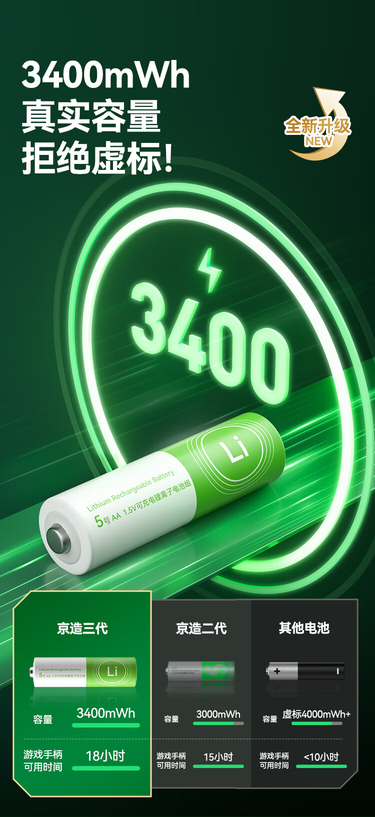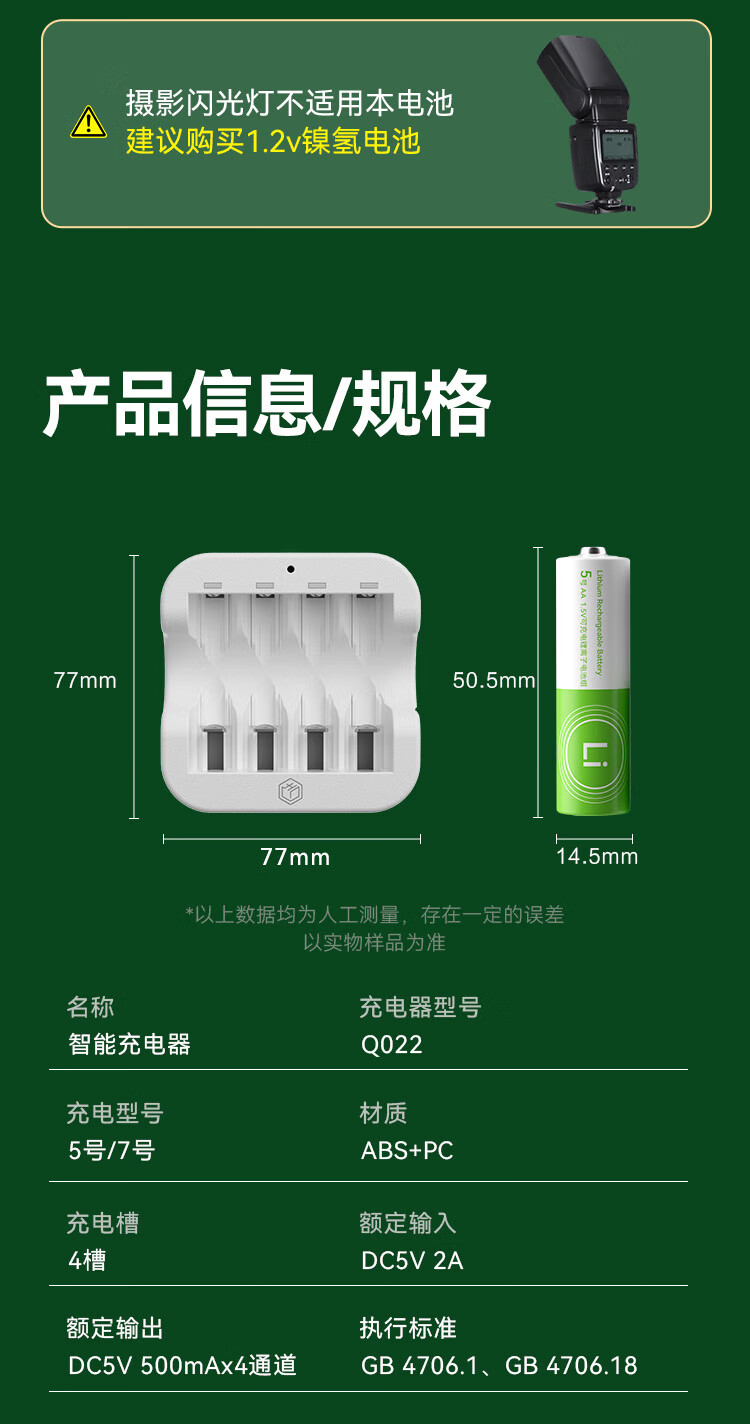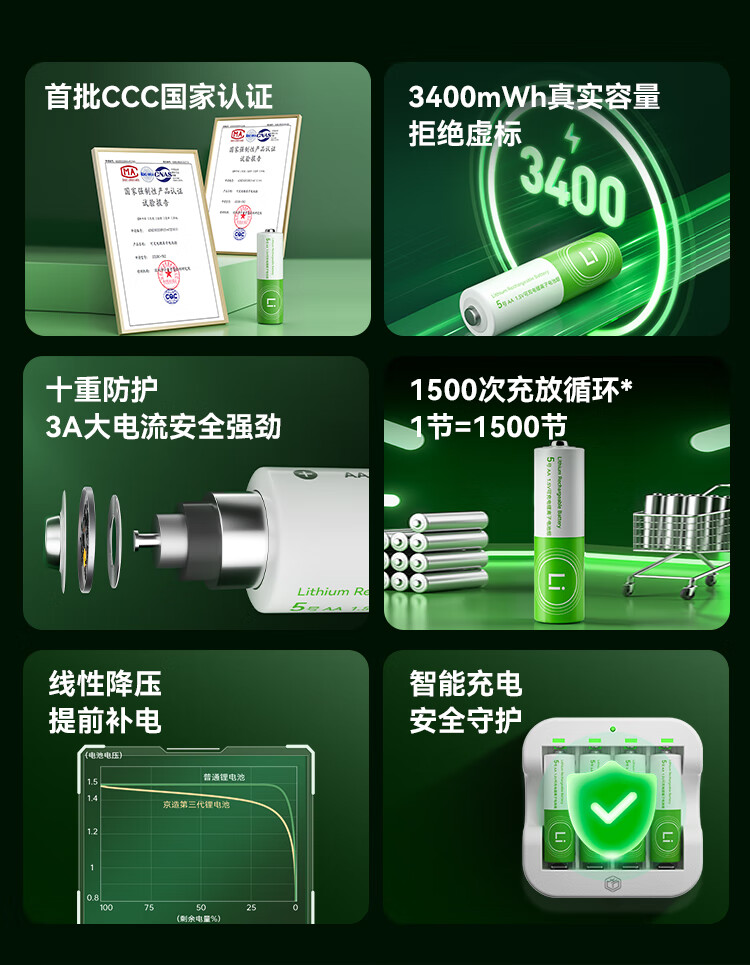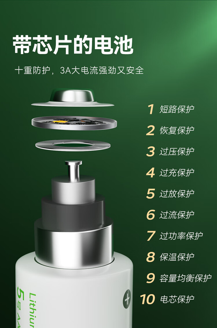 京东京造5号充电锂电池4粒套装 1.5V恒压快充 适用游戏手柄/键鼠/话筒/吸奶器/血压计/玩具赛车等 AA五号