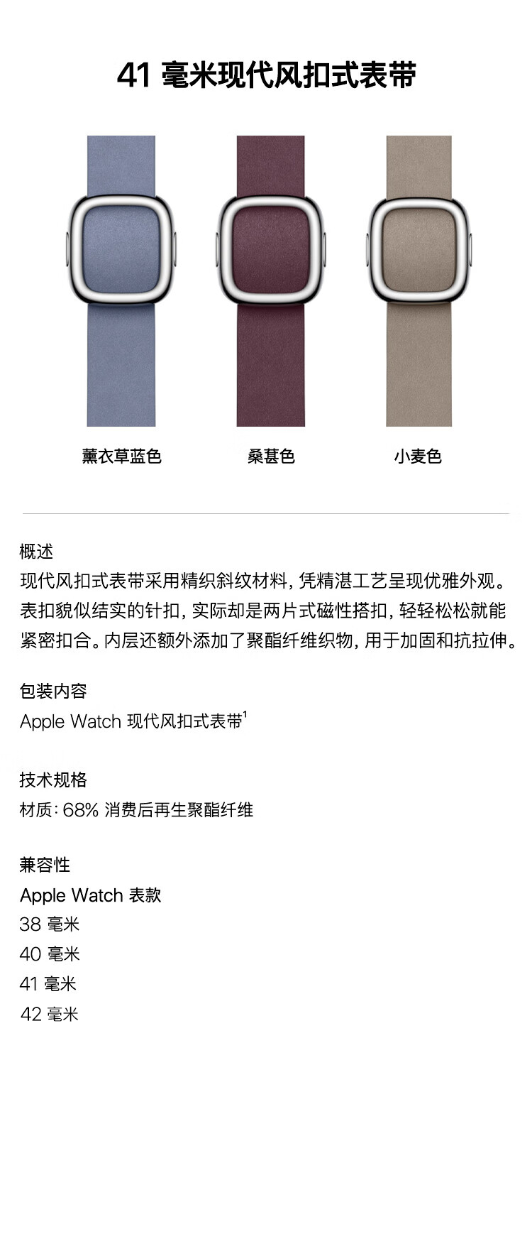 Apple/苹果 41毫米L码 薰衣草蓝色现代风扣式表带 适用40毫米的SE3/2和42毫米的S11/10 苹果表带