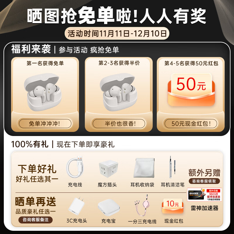 弱水时砂【周传雄推荐】earfeel i5无线蓝牙耳机入耳HiFi音质游戏运动耳机主动降噪长续航学生 武士黑|HiFi音质+强降噪+不压耳