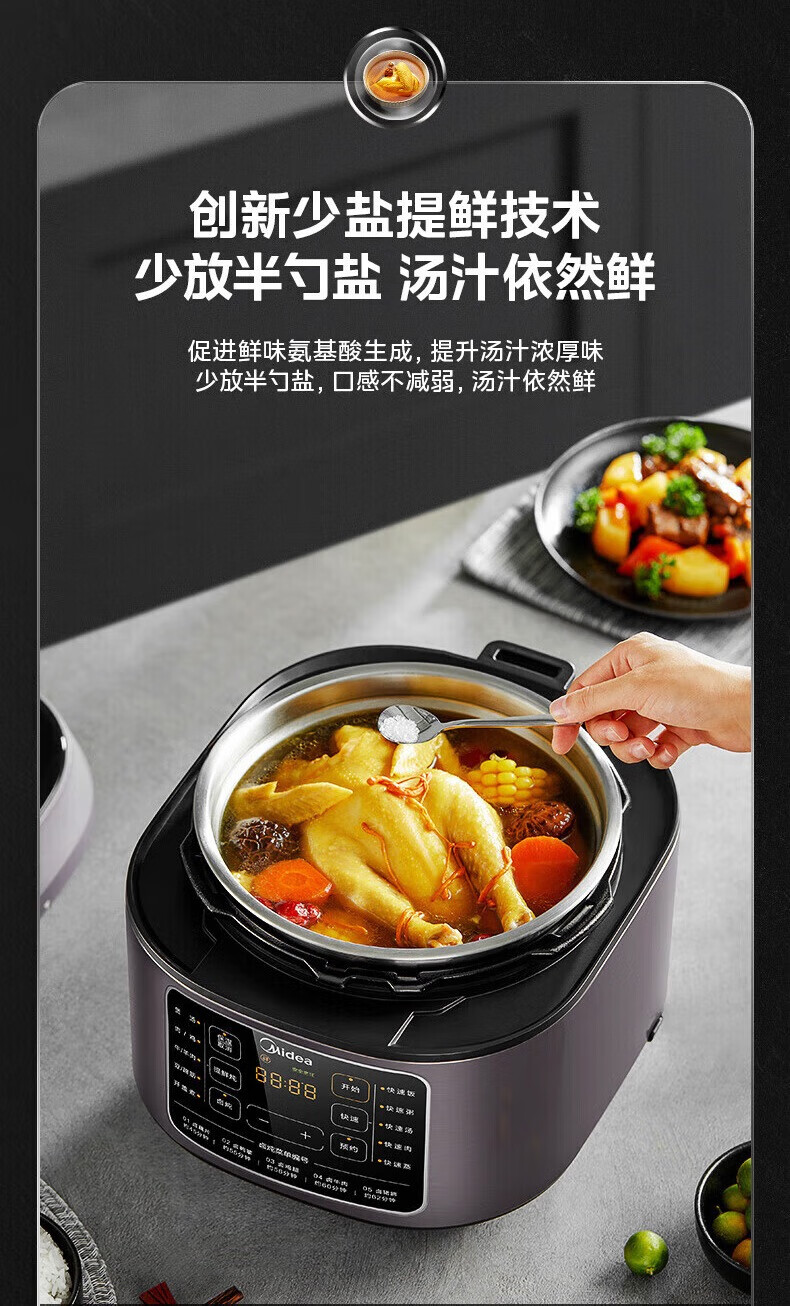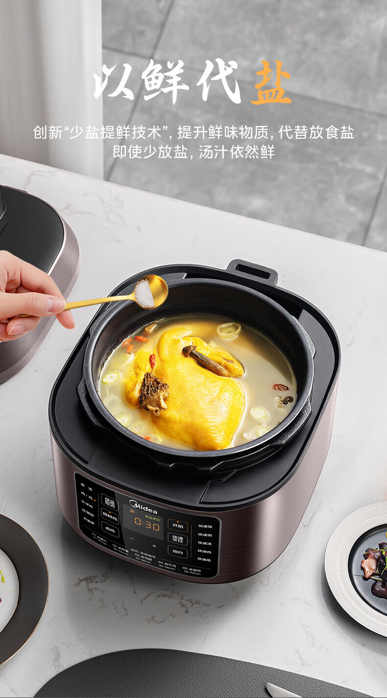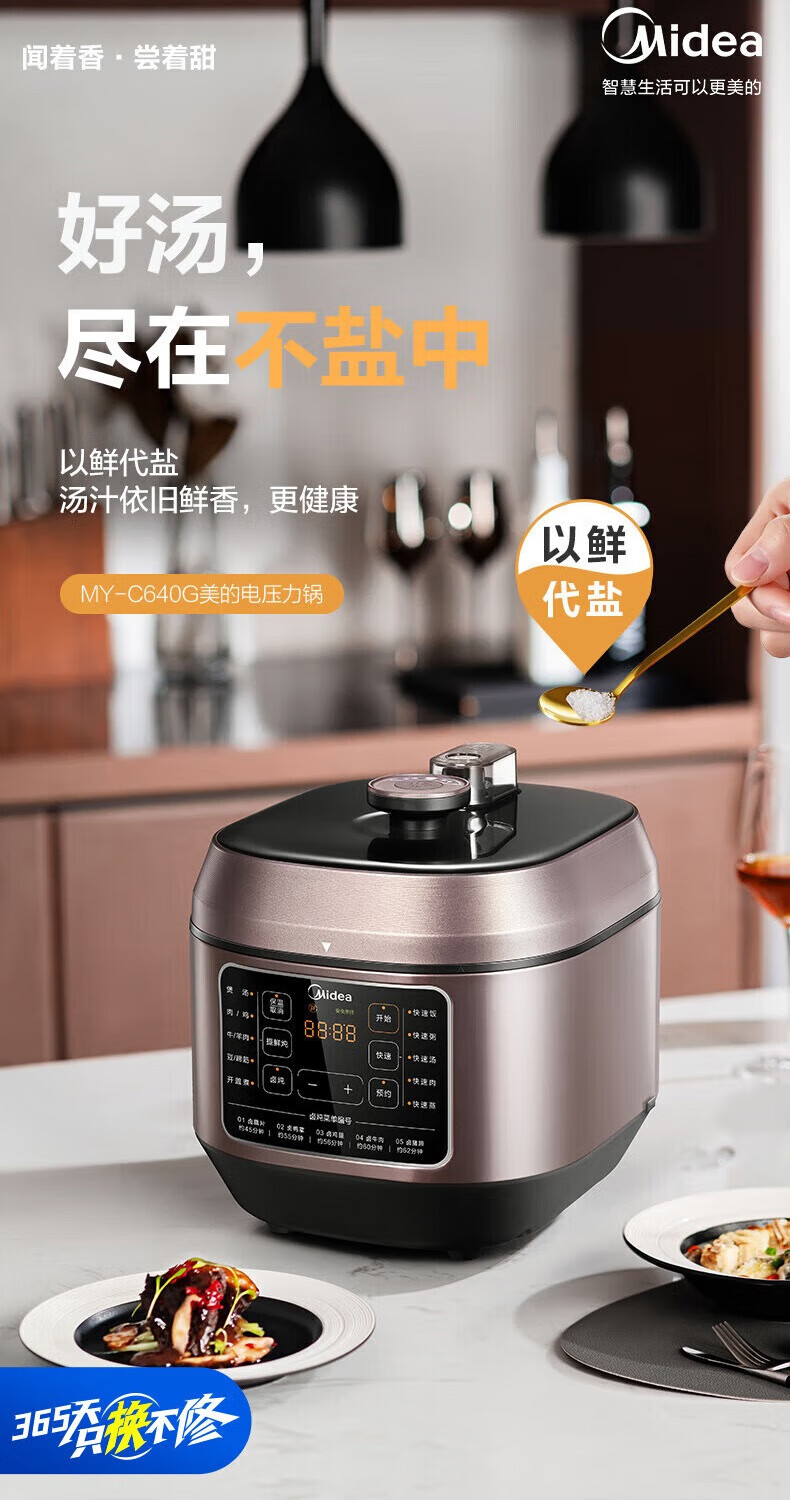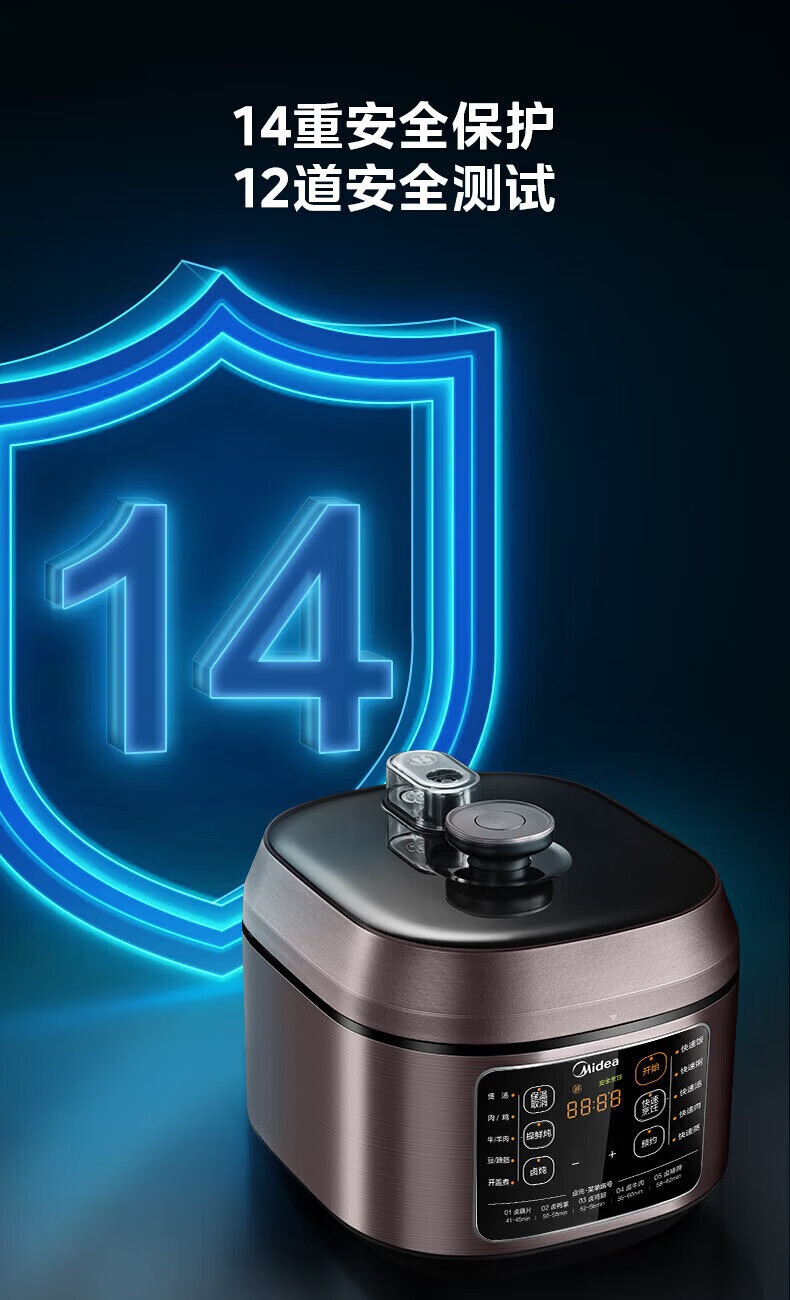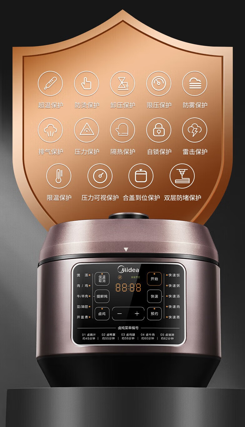 美的电压力锅 电高压锅家用0涂层 高压电饭锅 双内胆电压锅不锈钢内胆 自动排气 3-4-5-6-8-10人 【带蒸屉上蒸下煮】 5L