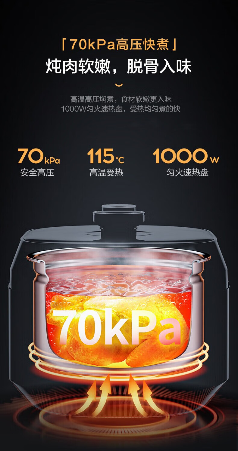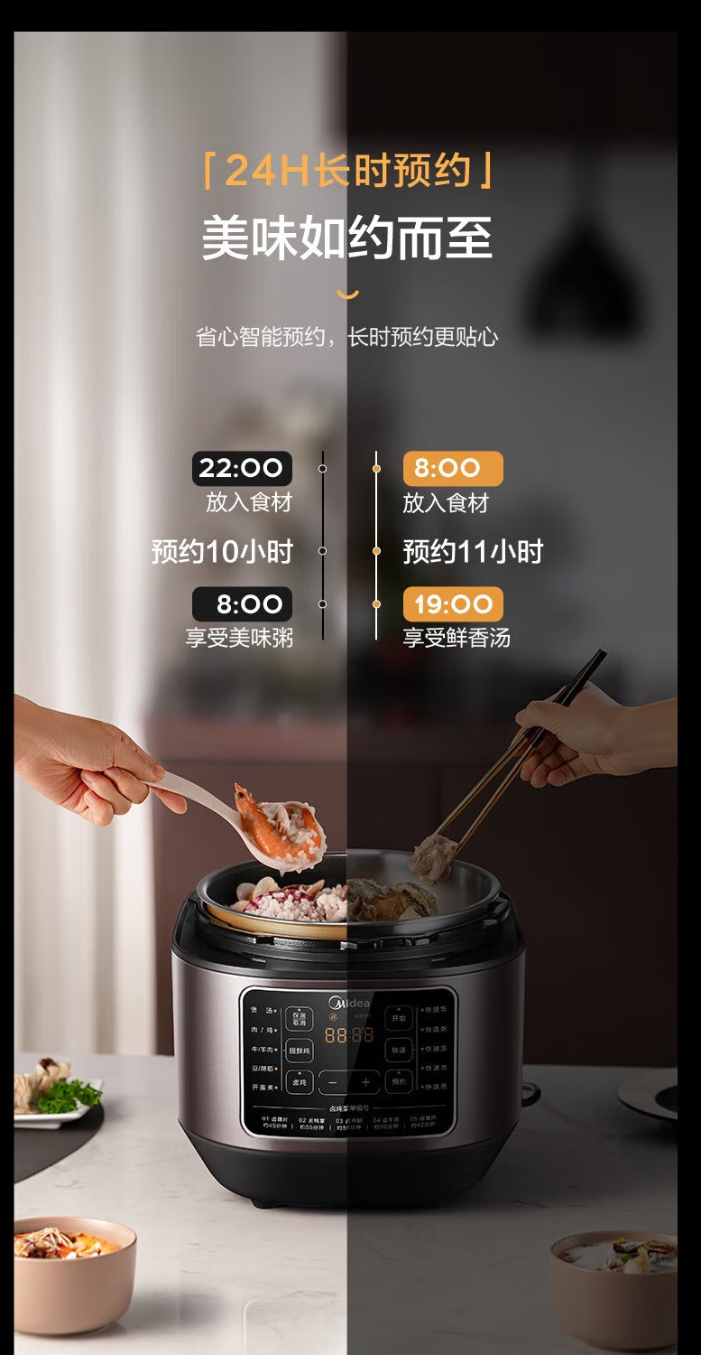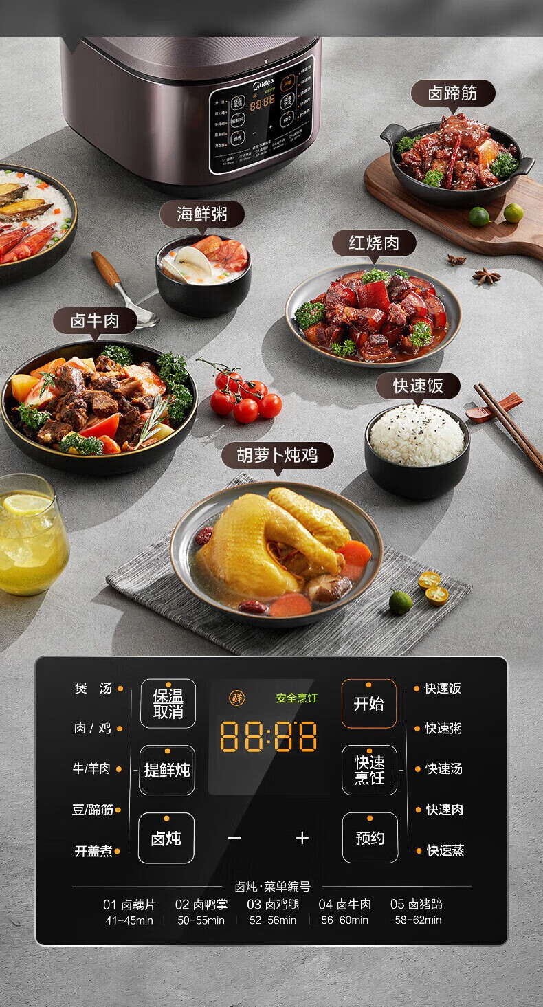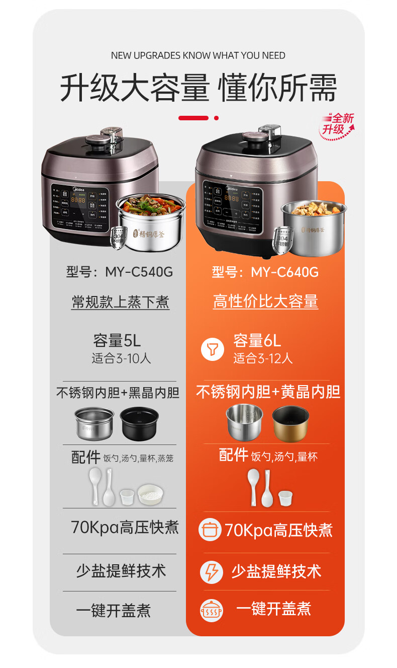美的电压力锅 电高压锅家用0涂层 高压电饭锅 双内胆电压锅不锈钢内胆 自动排气 3-4-5-6-8-10人 【带蒸屉上蒸下煮】 5L