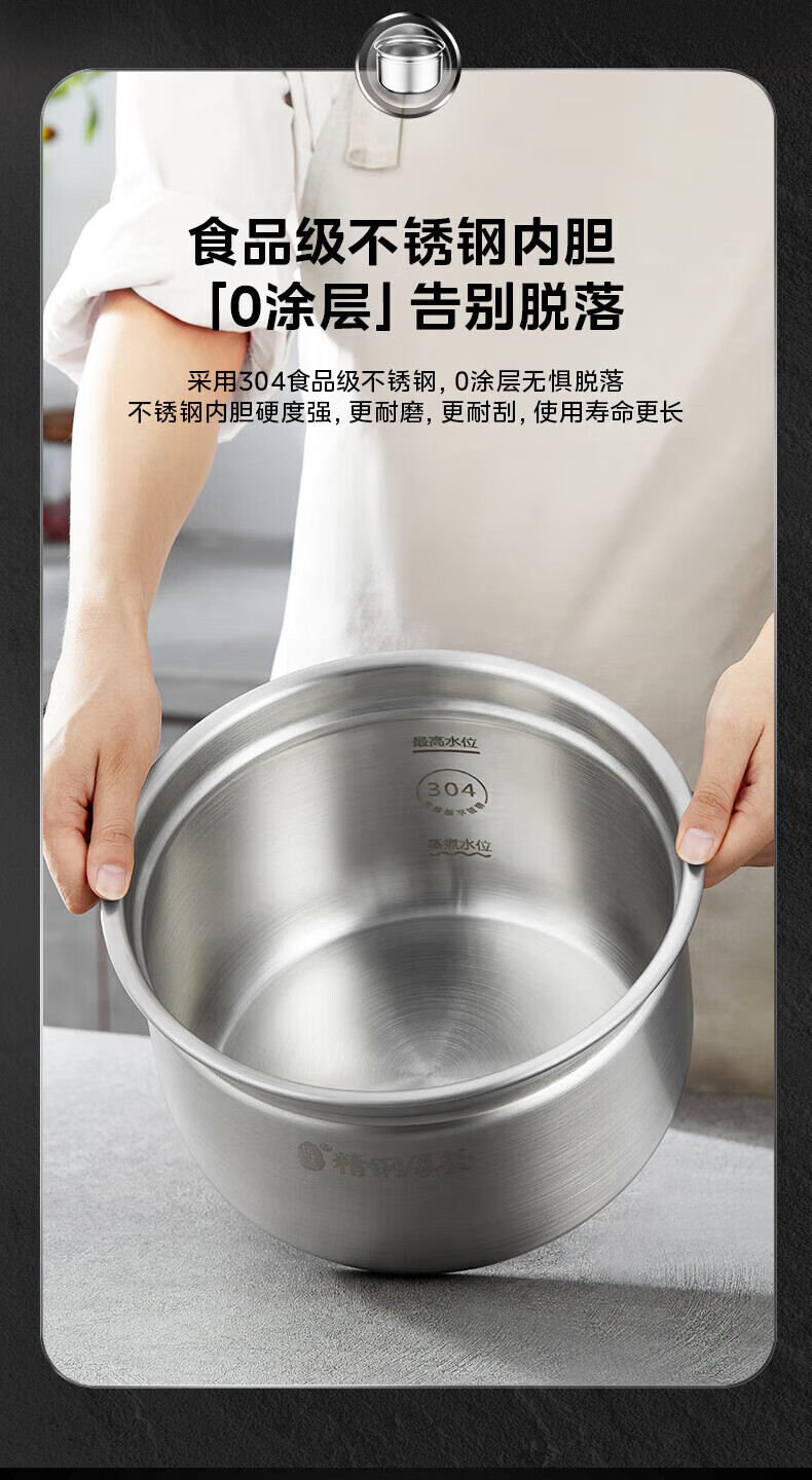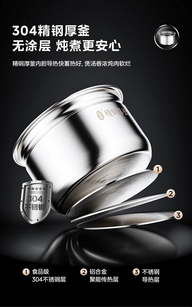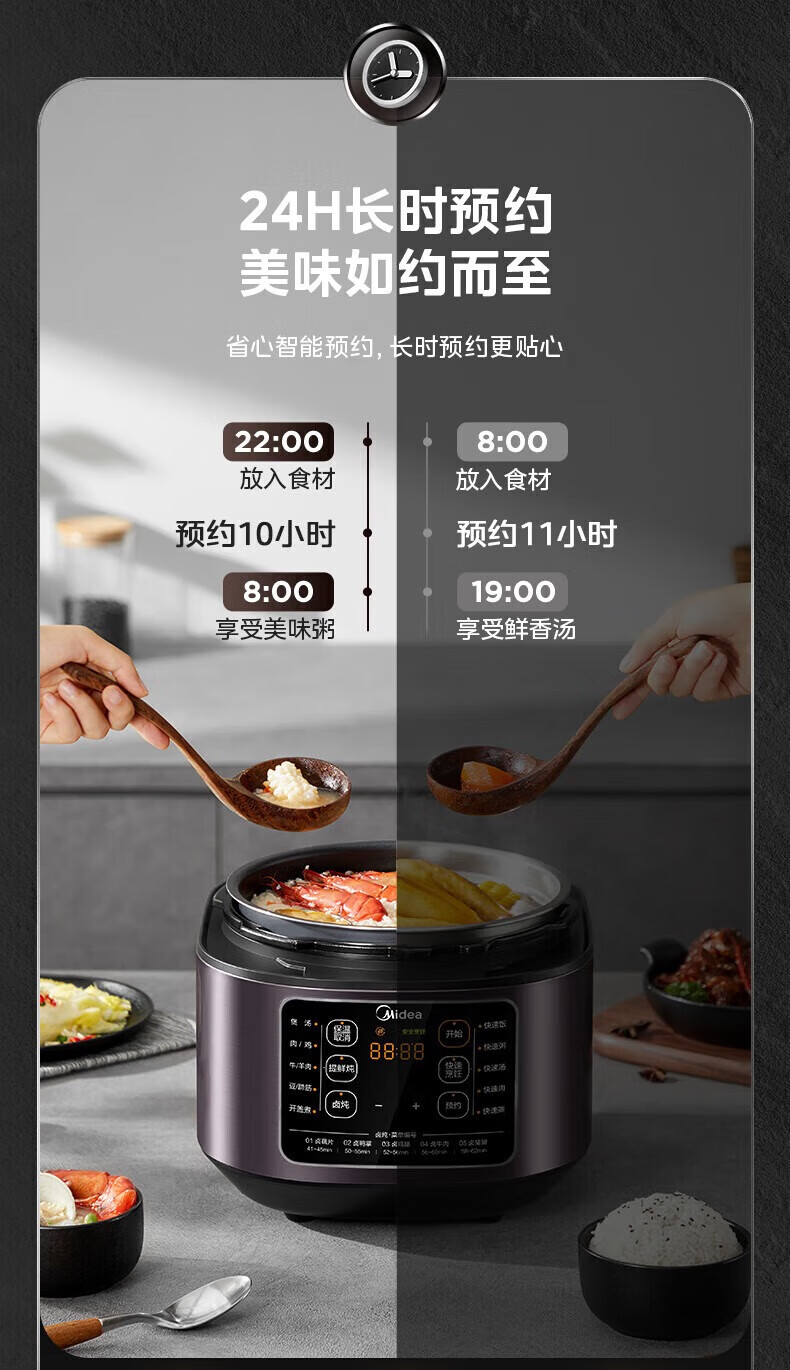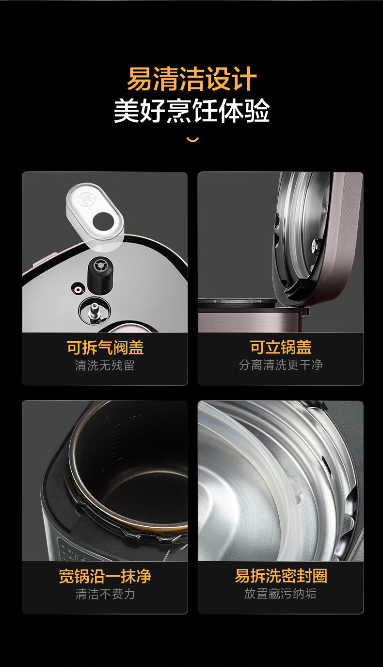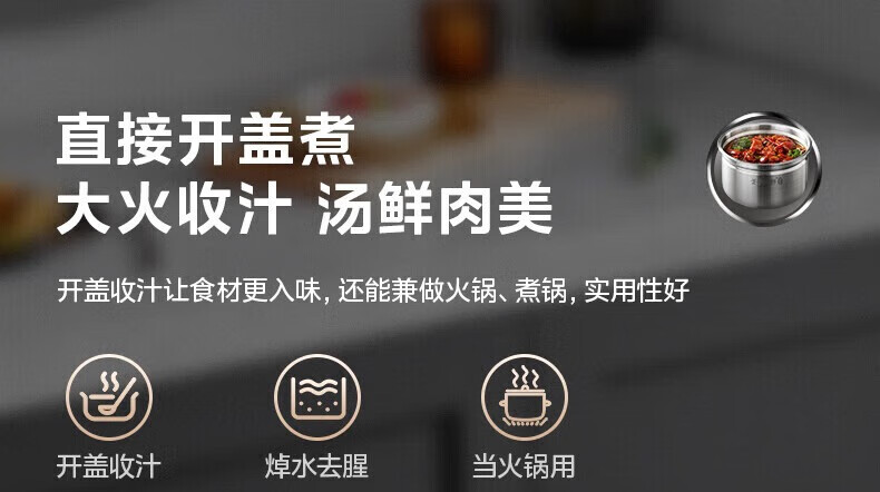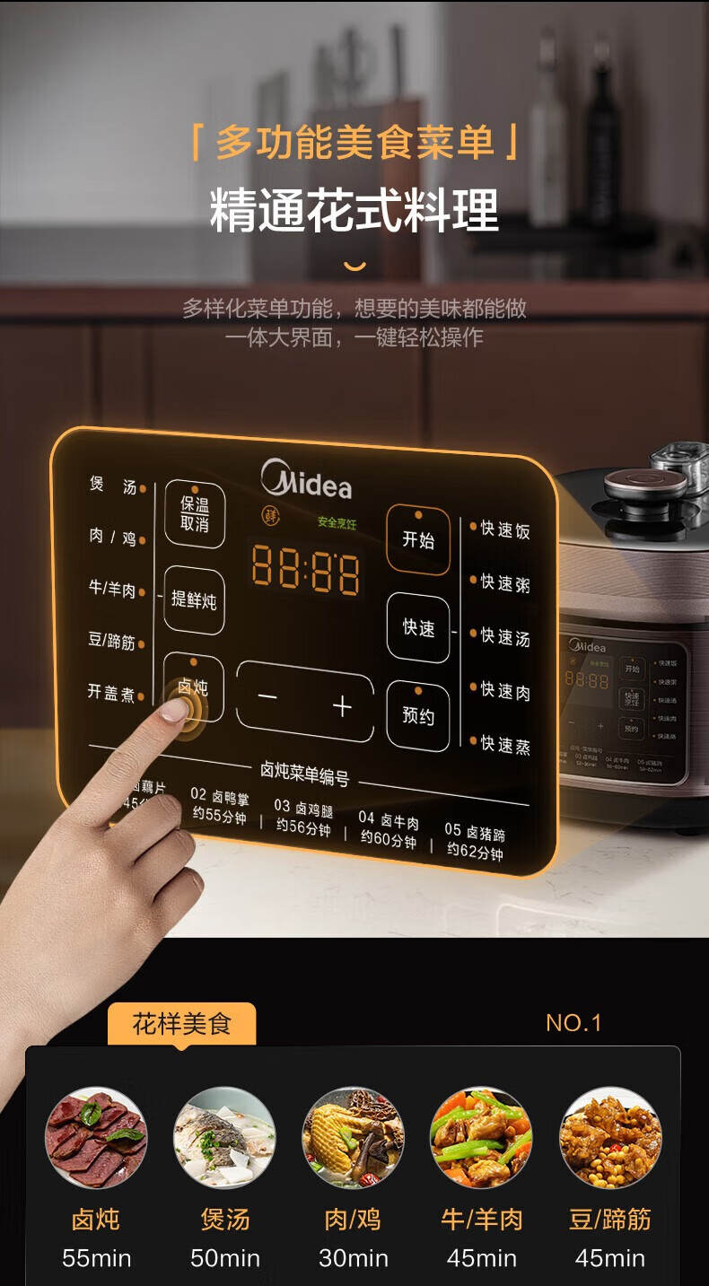 美的电压力锅 电高压锅家用0涂层 高压电饭锅 双内胆电压锅不锈钢内胆 自动排气 3-4-5-6-8-10人 【带蒸屉上蒸下煮】 5L