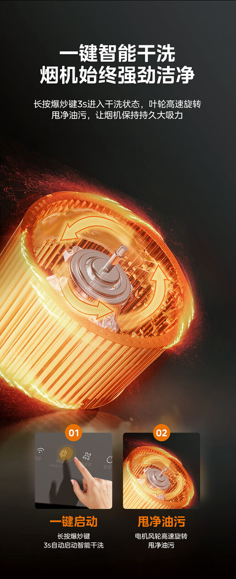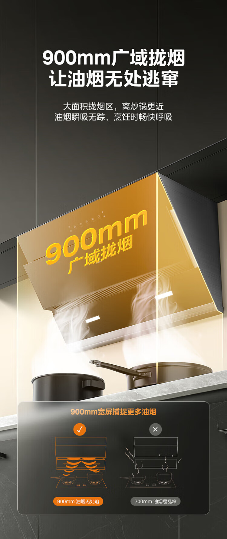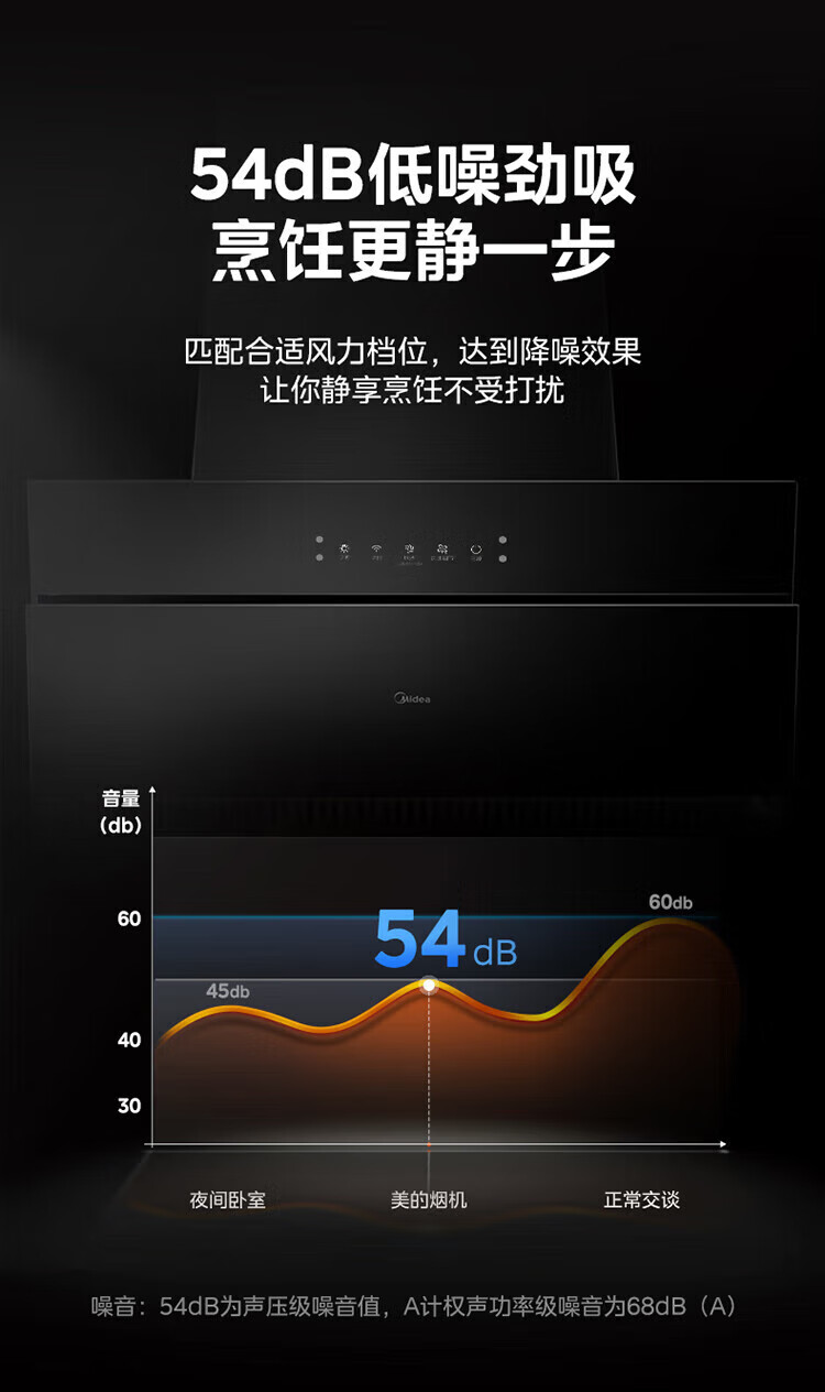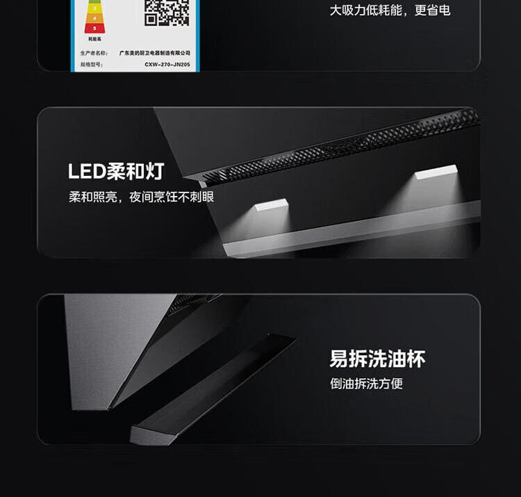 美的(Midea)【高性价比】家用抽油烟机21立方大吸力侧吸式挥手控制自动清洗燃气灶具厨房套装家电排烟机JN205 【21立方】【挥手控制 立体环吸】单烟机