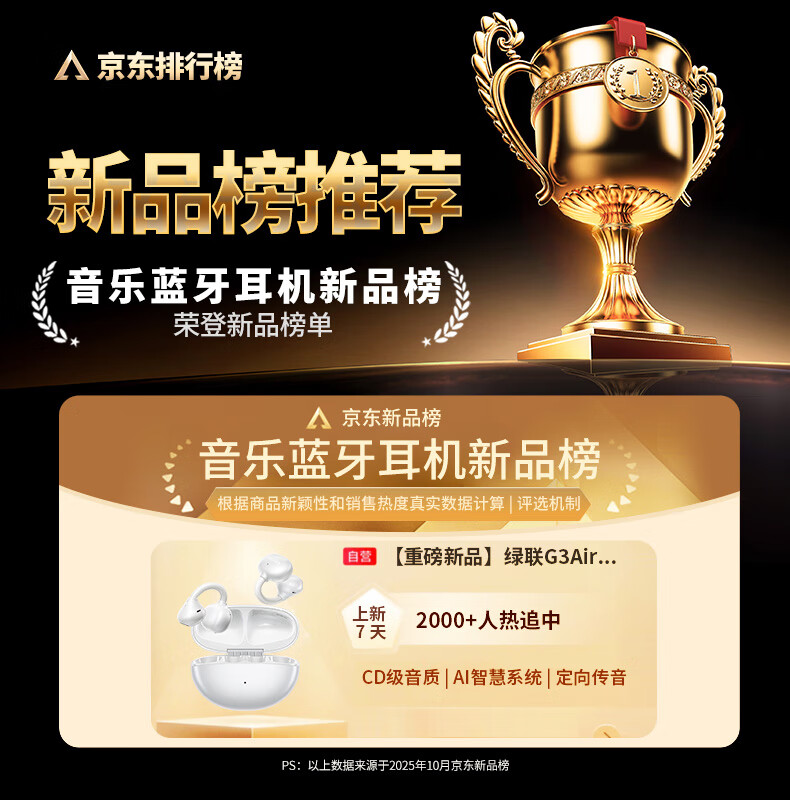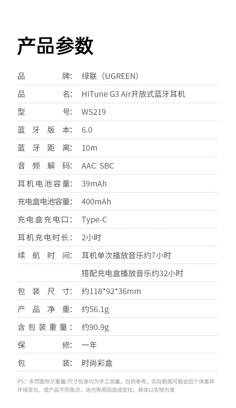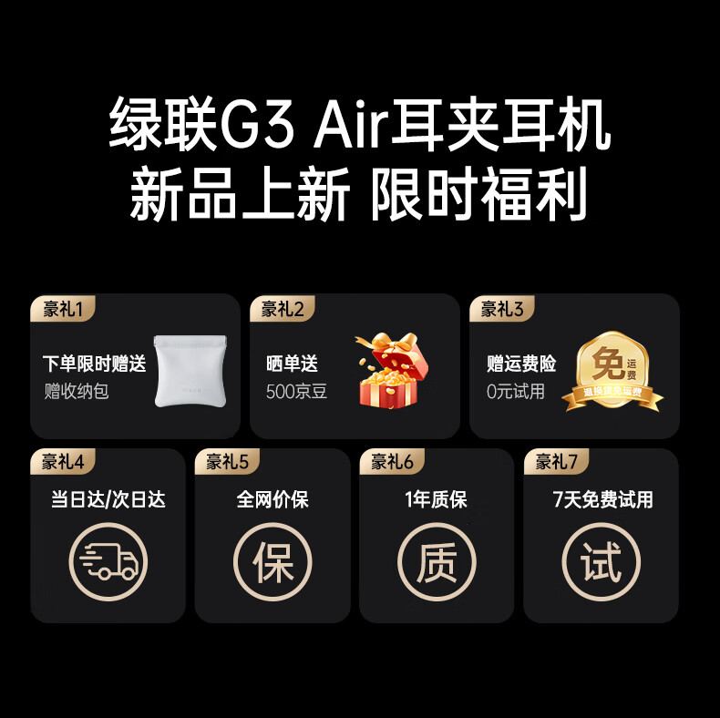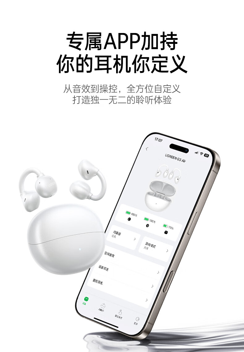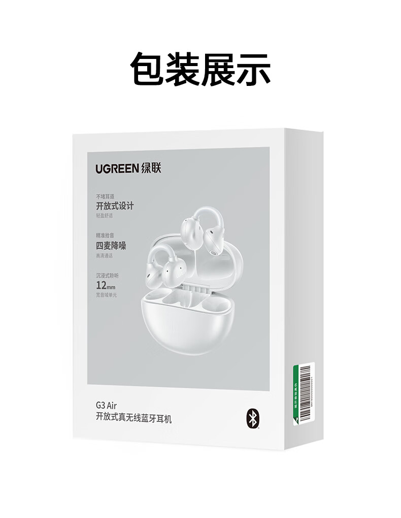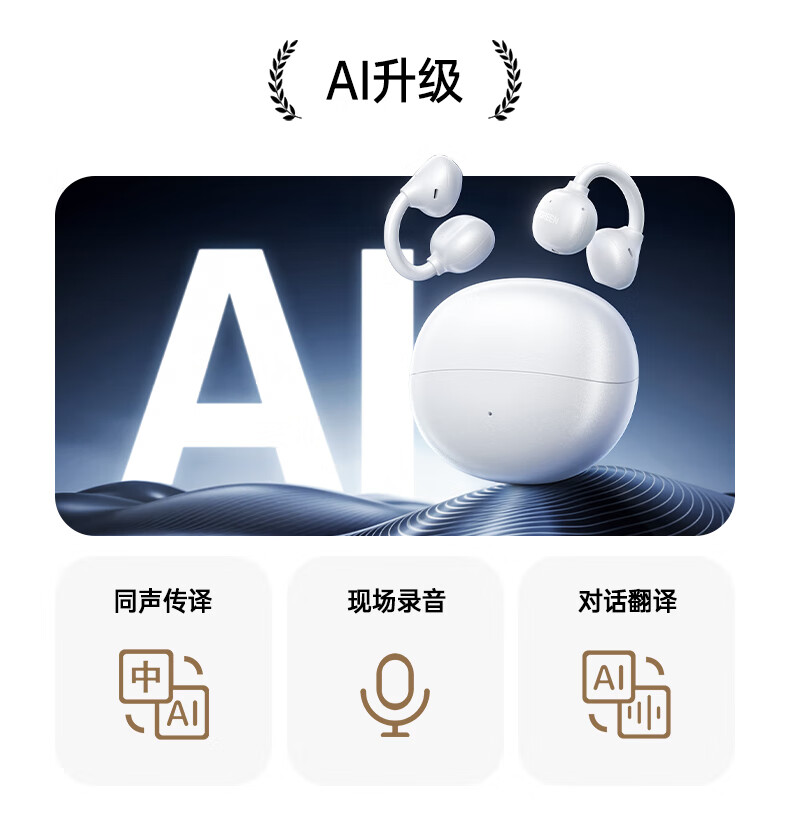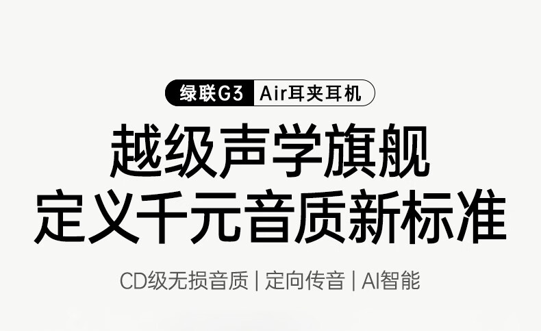 绿联G3 Air【重磅新品】耳夹式蓝牙耳机高保真音质开放式气骨传导概念AI翻译运动通话适用苹果华为小米