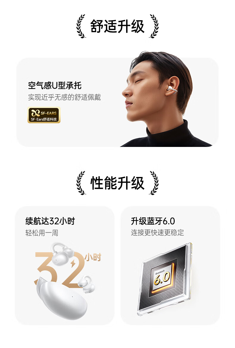 漫步者(EDIFIER)【2025新款】Comfo SE 开放式真无线蓝牙耳机 蓝牙V6.1 AI翻译 不入耳 运动跑步耳机 优雅白