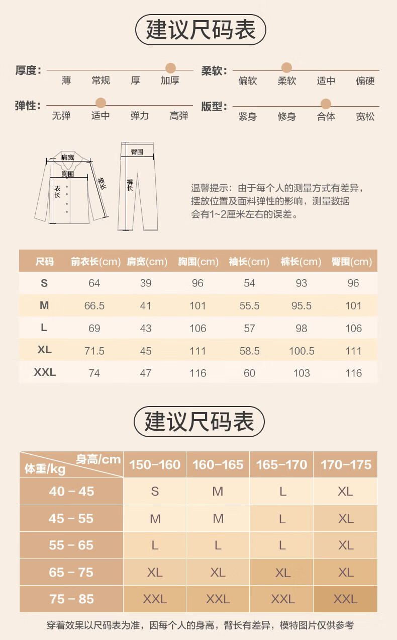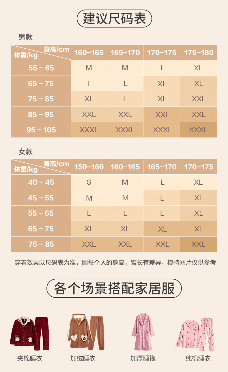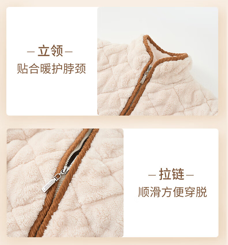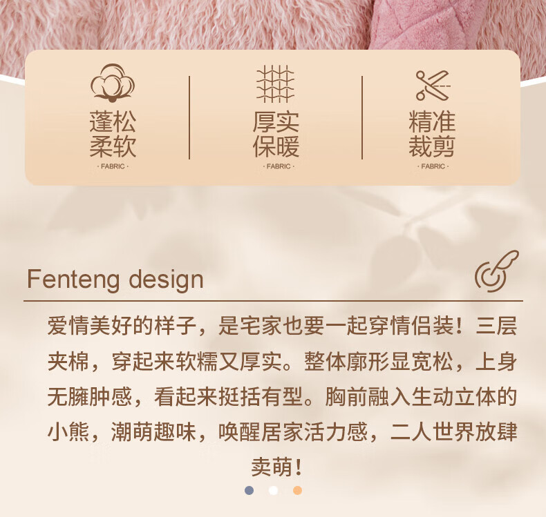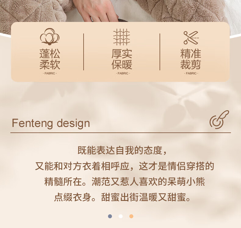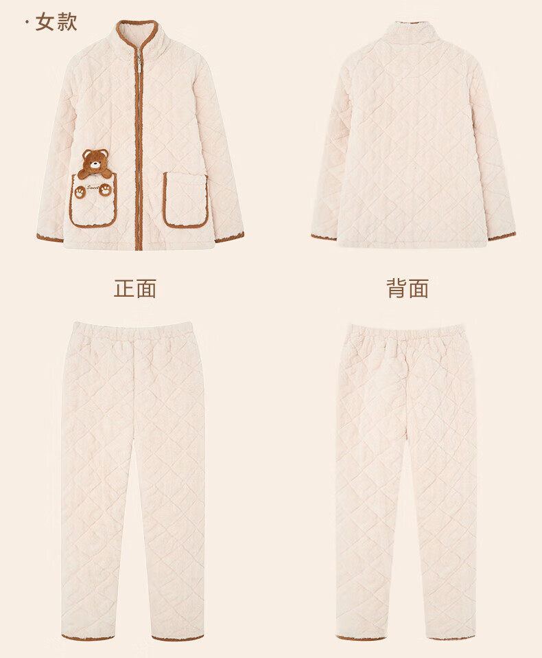 芬腾情侣睡衣三层夹棉加厚保暖卡通简约长袖翻领开衫家居服套装 卡其-男款 3XL