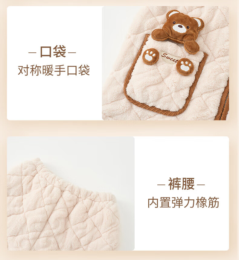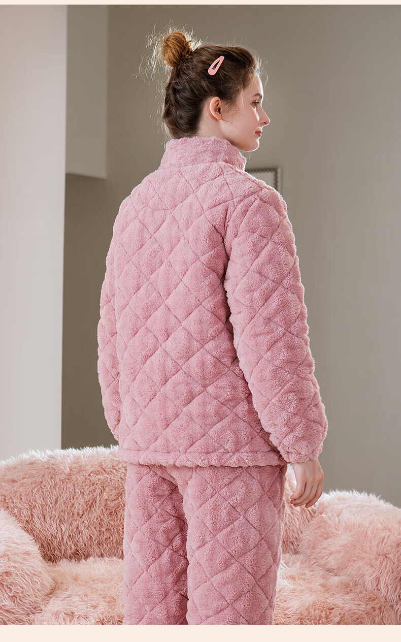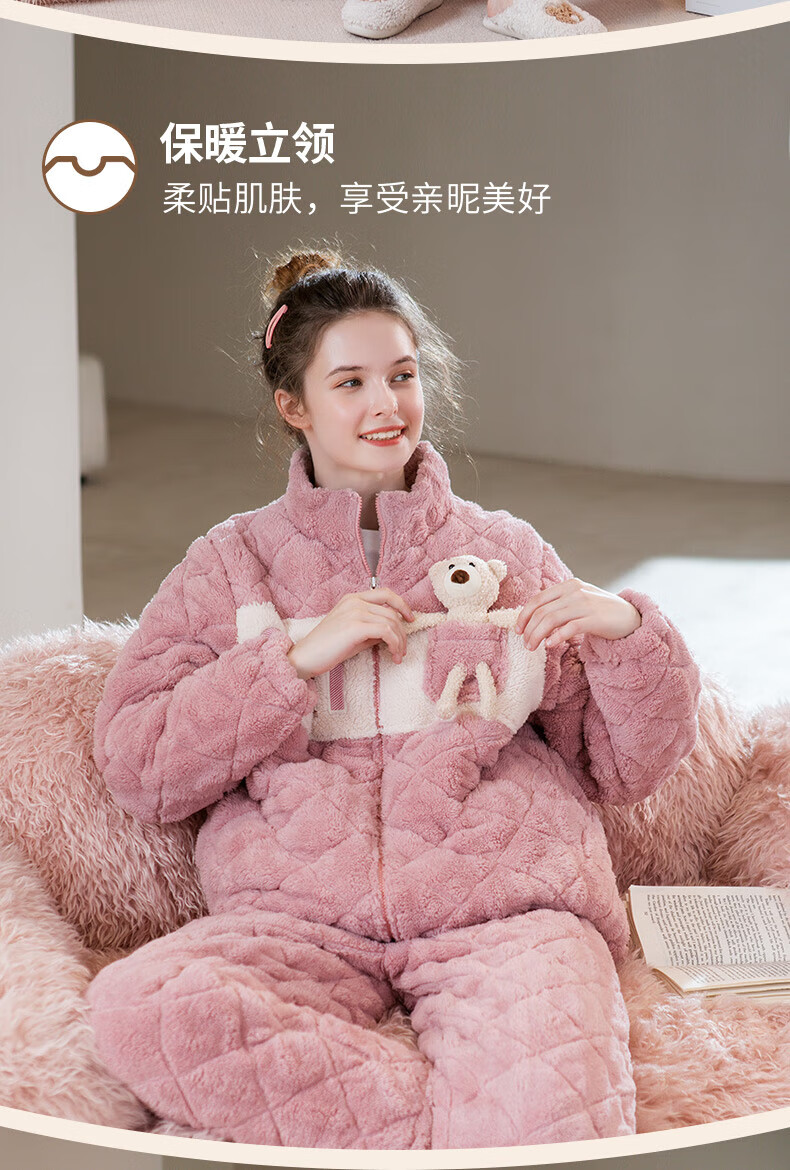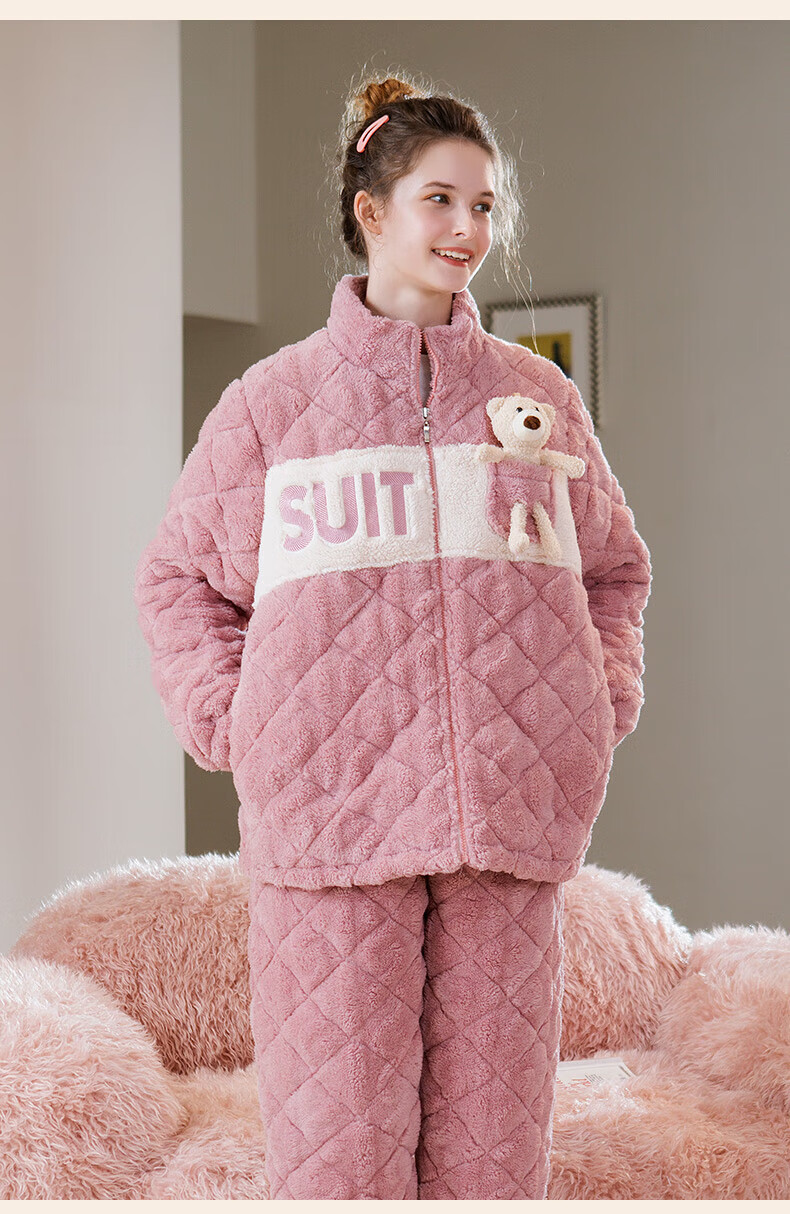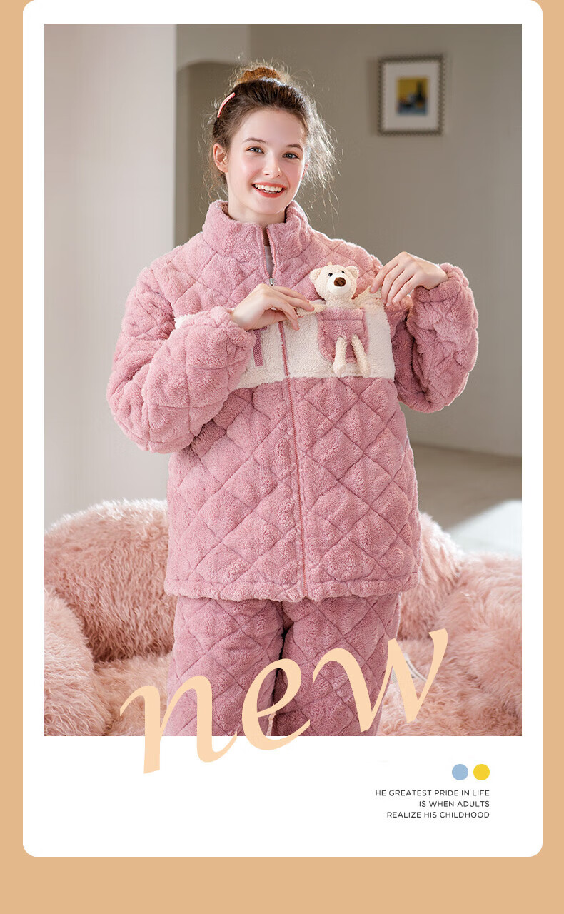 芬腾睡衣女夹棉三层加厚秋冬季温暖卡通开衫长袖家居服套装 冰兰 2XL