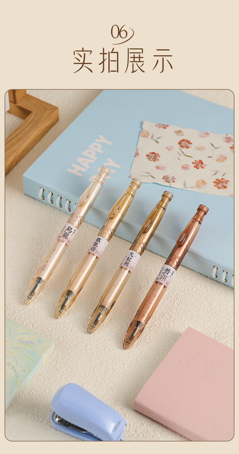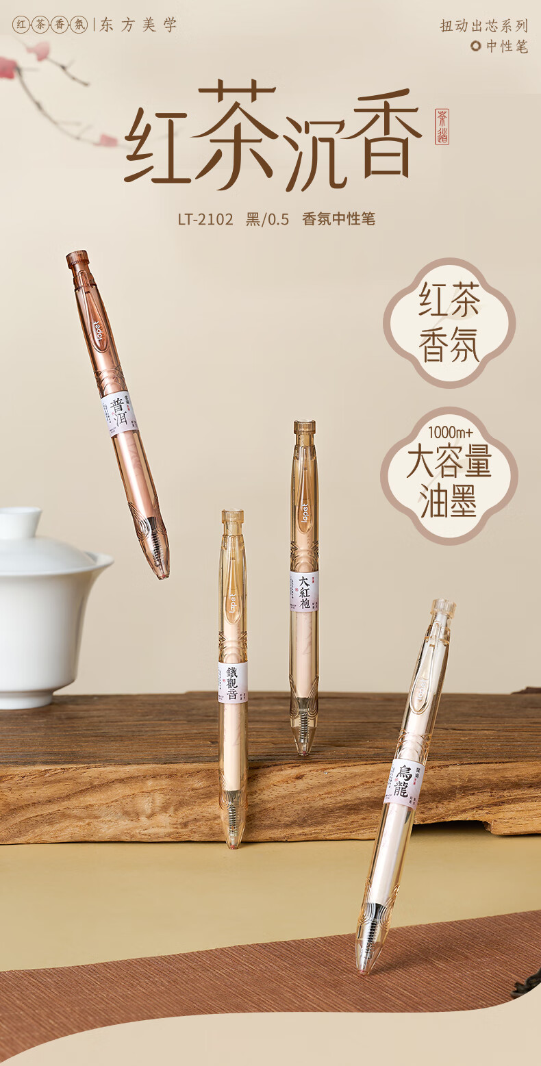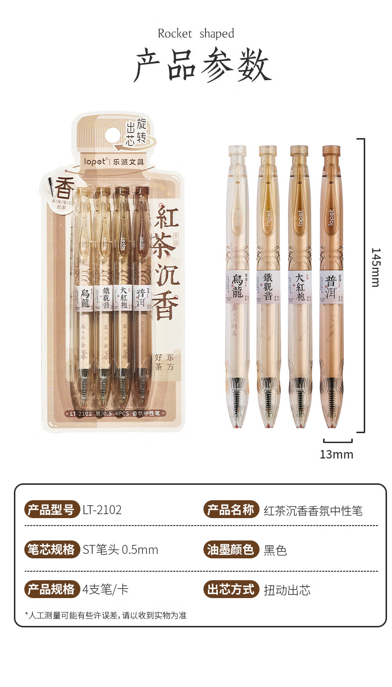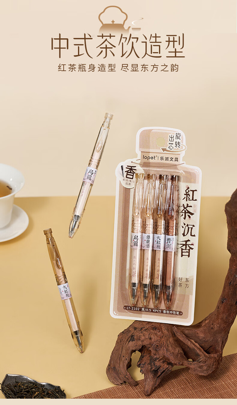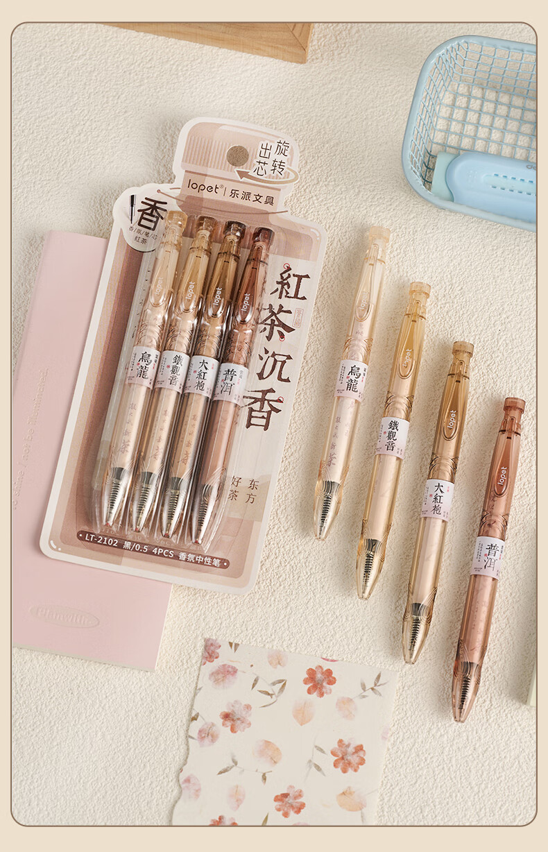 LOPET香氛黑笔中性笔0.5学生专用签字笔高颜值黑色水笔速干刷题笔碳素笔圆珠笔4支/装LT-2102