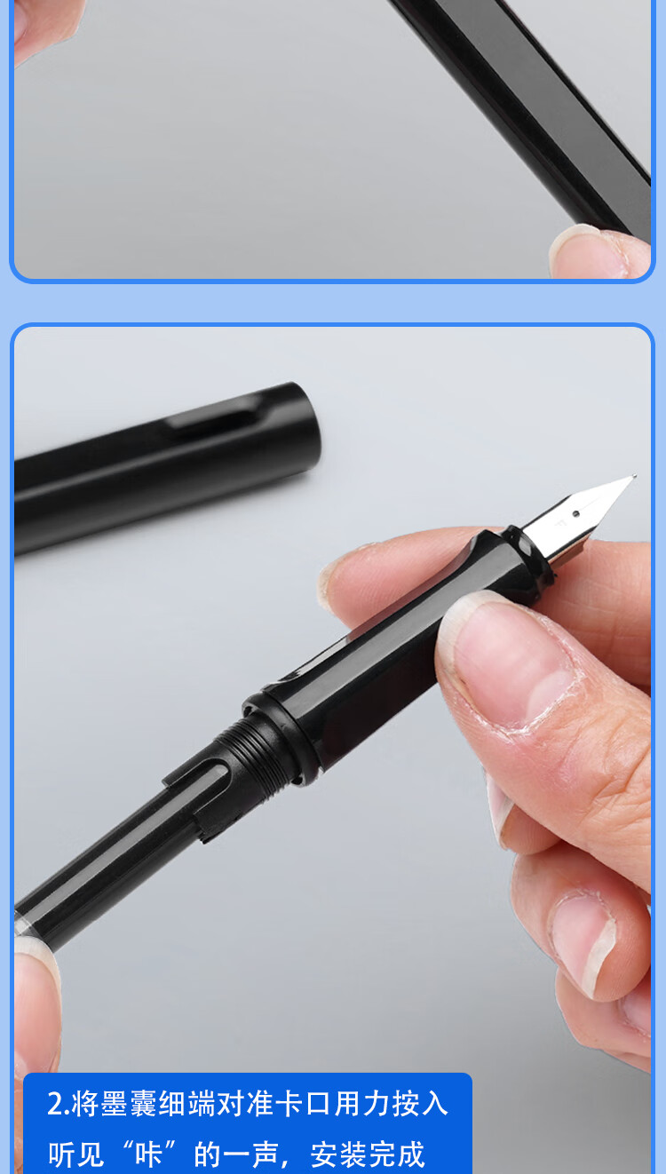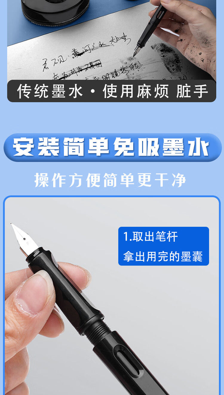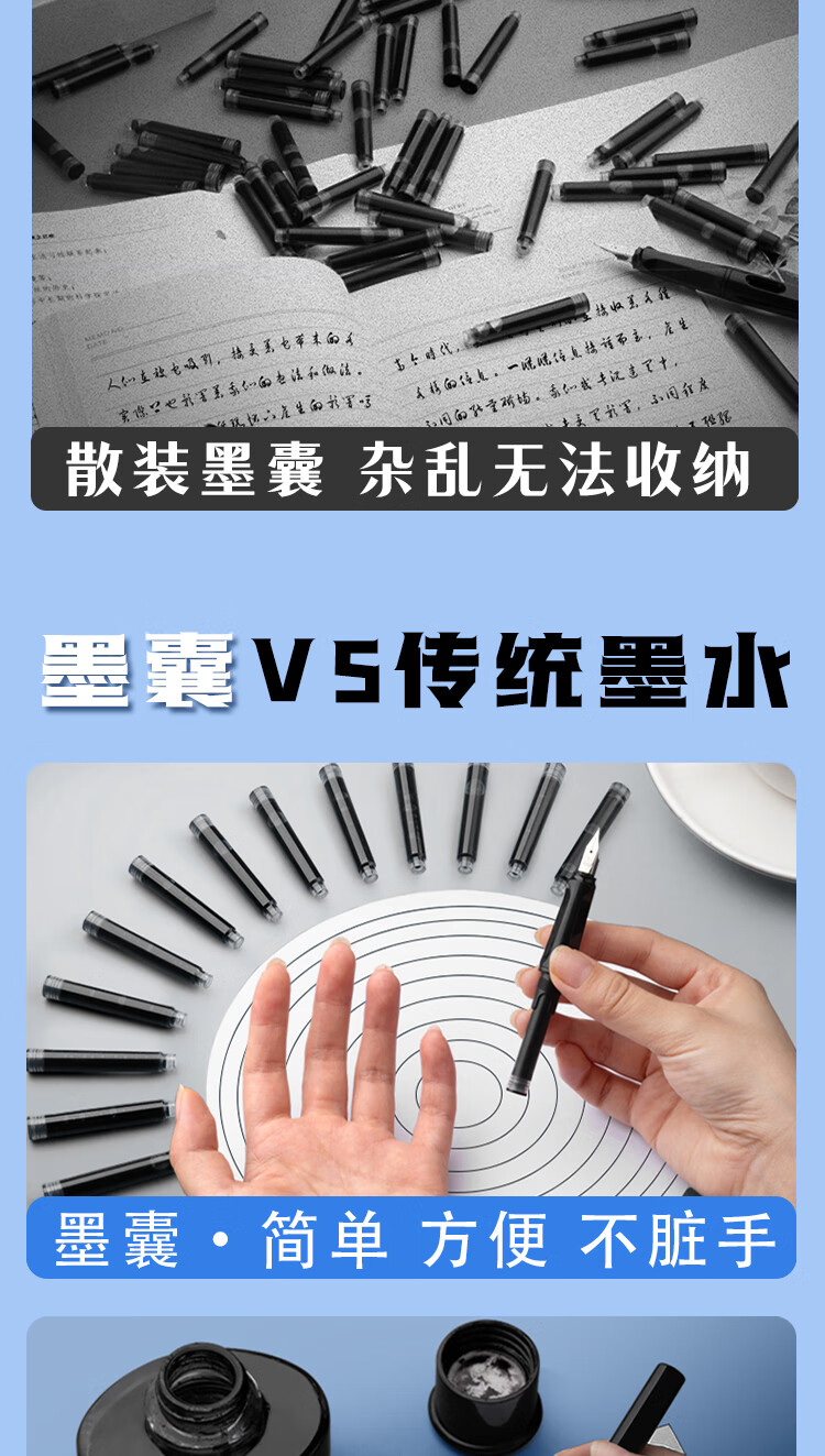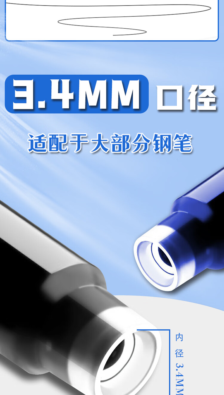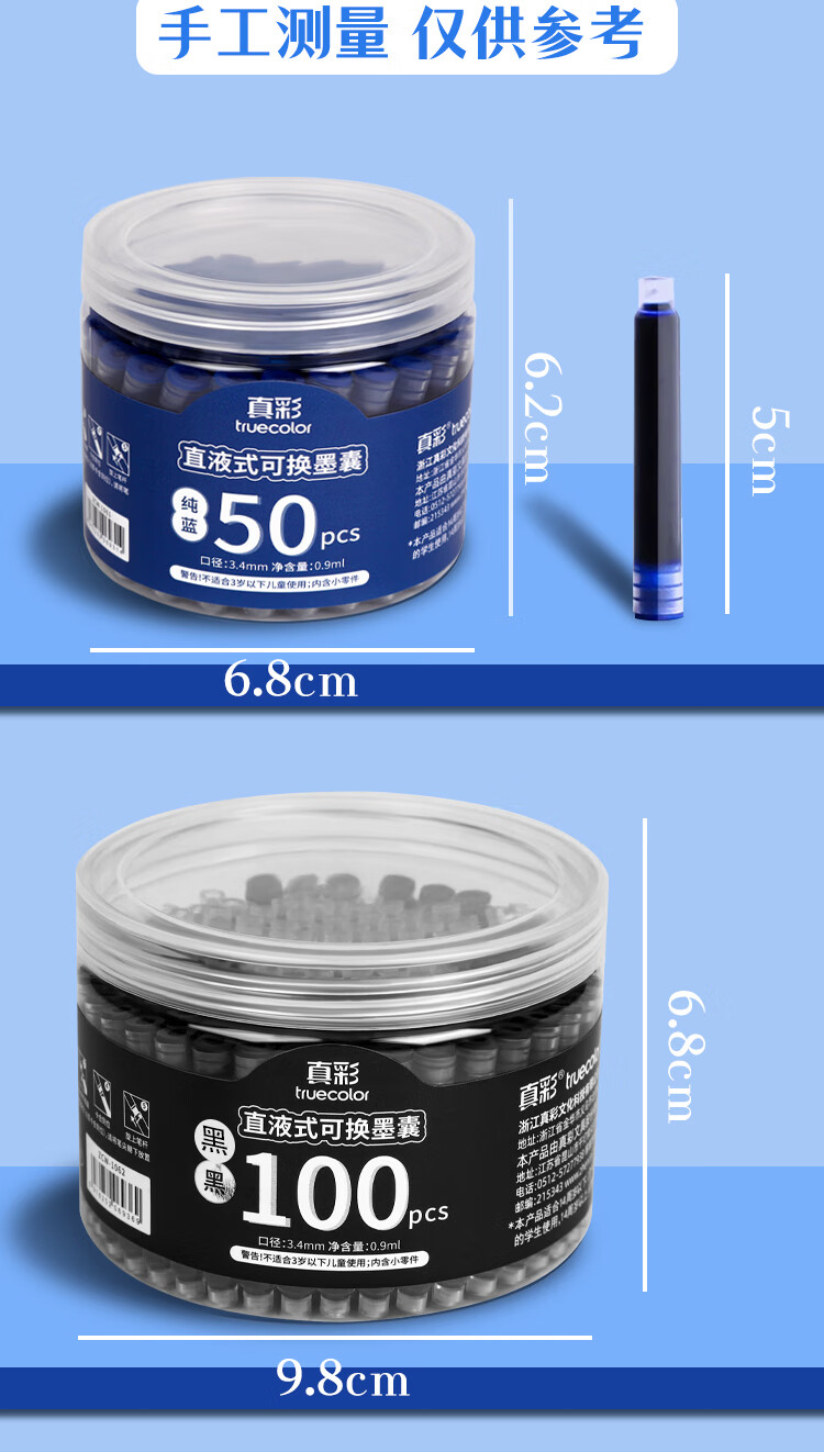 真彩(TRUECOLOR)钢笔墨囊小学生专用三年级通用可替换囊式墨水替换芯练字蓝色3.4mm口径不可擦50支桶装ZCW-1061B