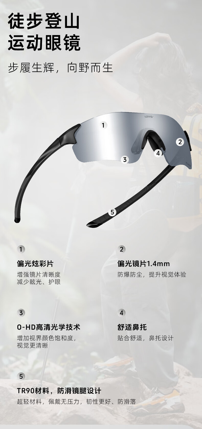 VOZAPOW沃飒徒步登山眼镜偏光炫彩护目镜户外运动骑行跑步太阳镜墨镜男女