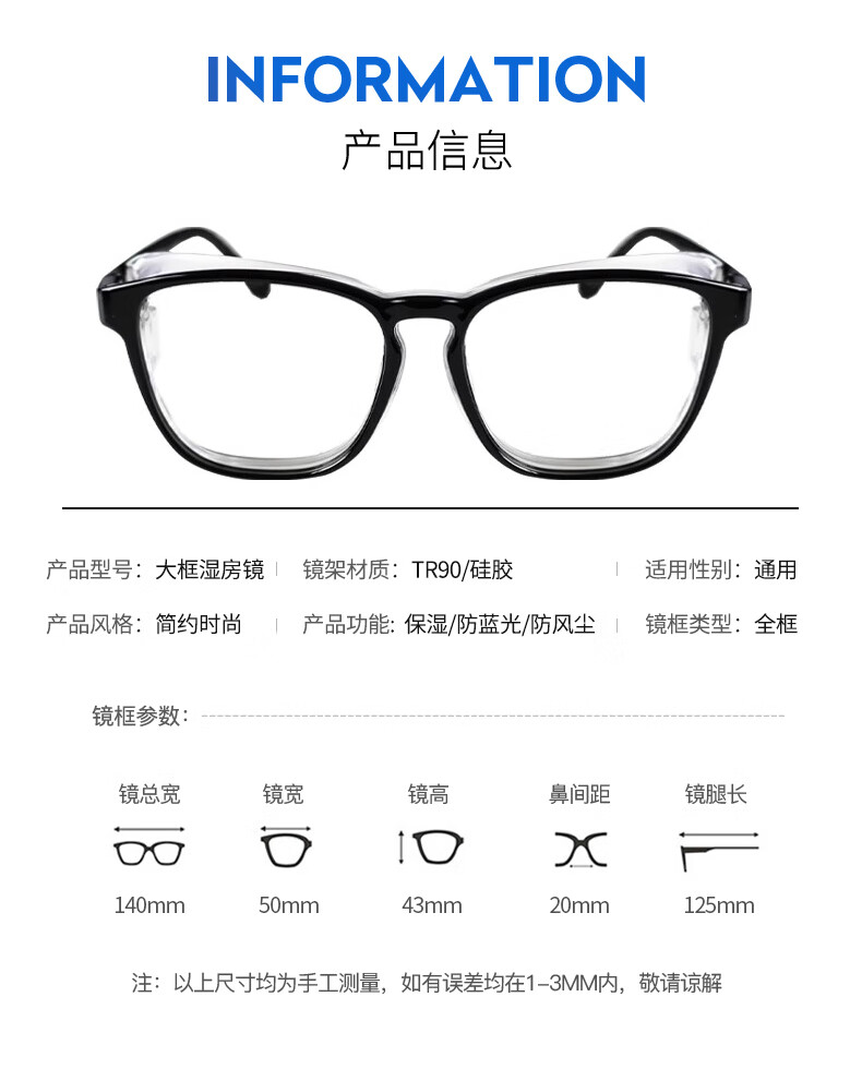 Jimmy Orange湿房镜防蓝光辐射男女保湿防花粉术后防护目墨镜户外防风沙骑行