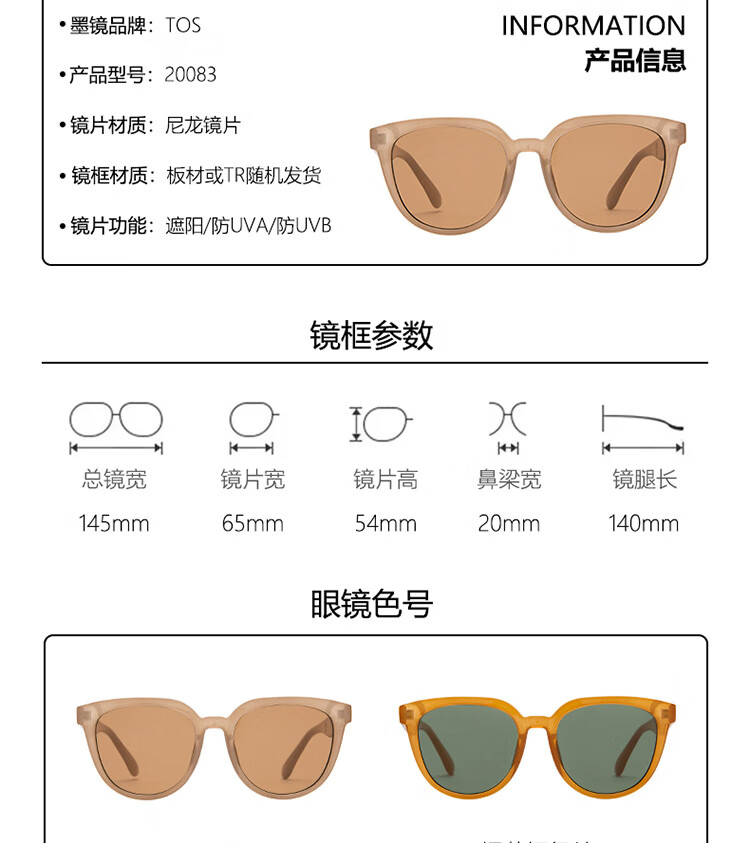 TOS许红豆同款墨镜女冬高级感茶色复古眼镜潮开车太阳镜