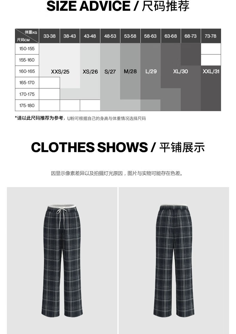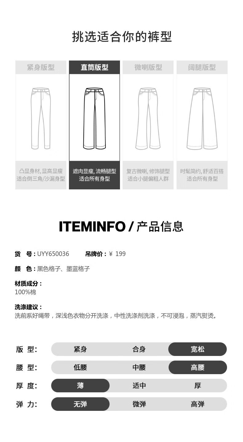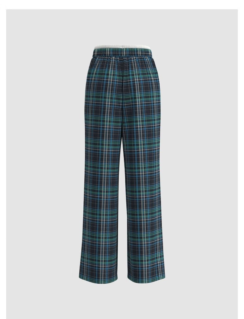 UR2025春季新款女装拼接腰头抽绳撞色格纹直筒裤UYY650036