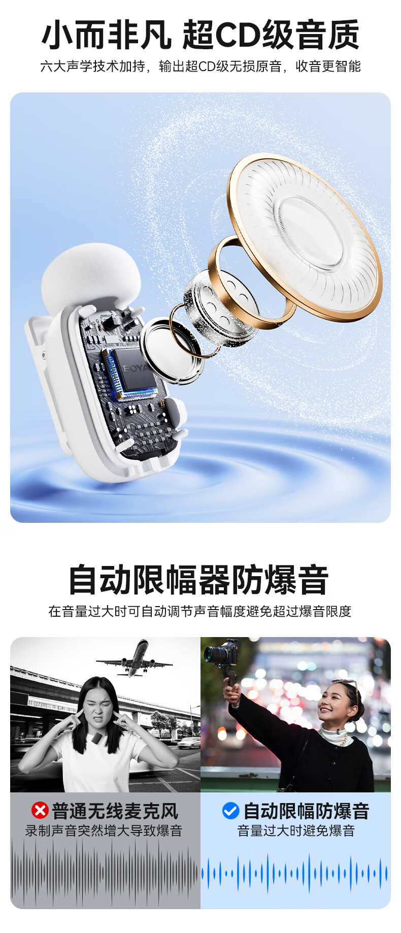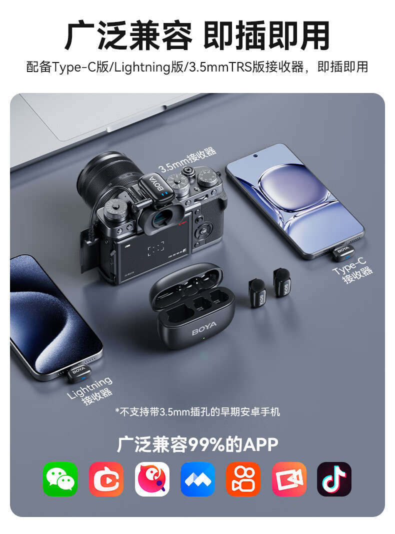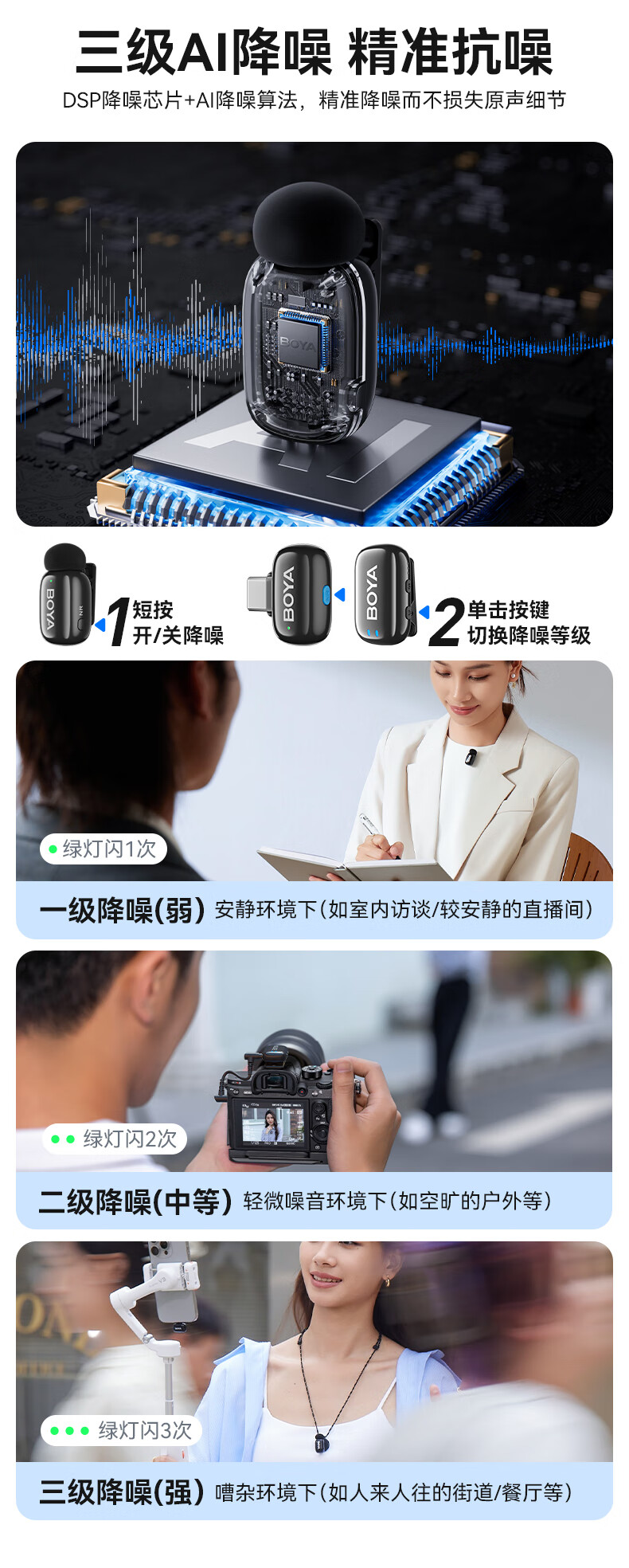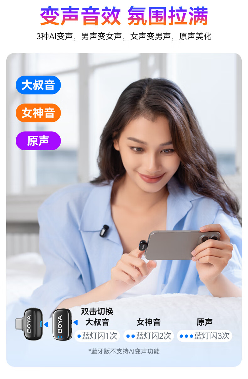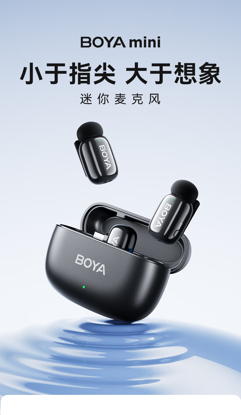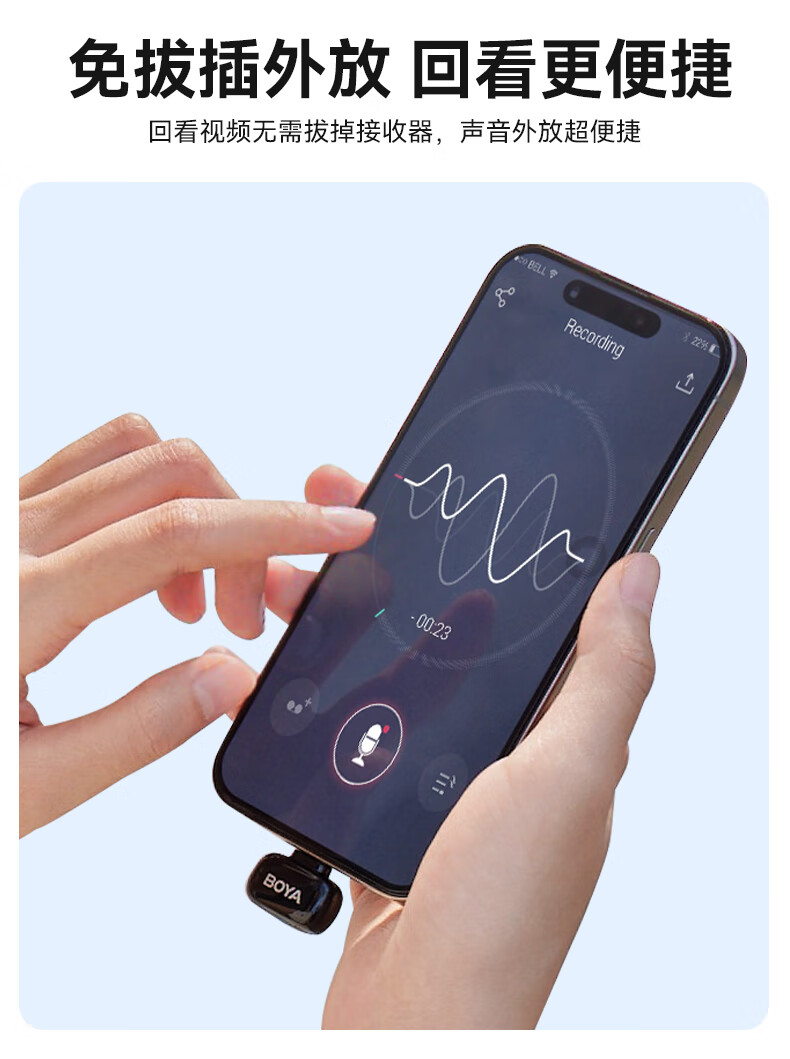BOYA博雅mini无线领夹麦克风手机直播收音麦克风 户外短视频收音器AI降噪一拖二迷你话筒 Lightning版