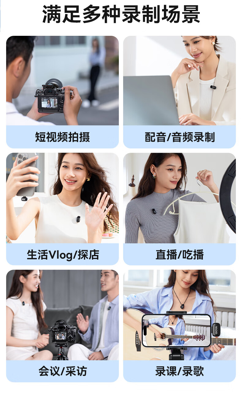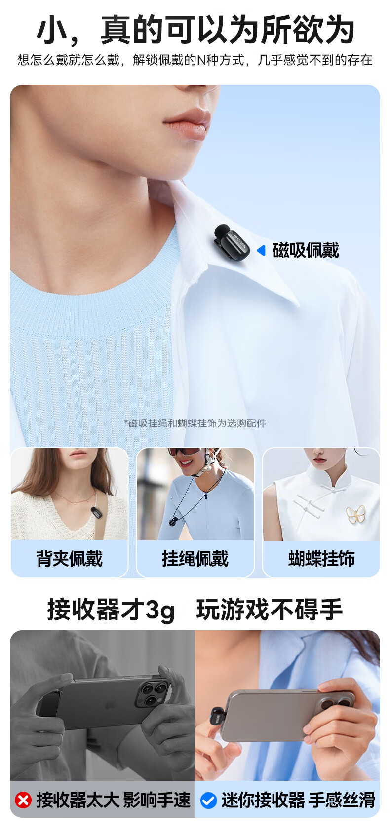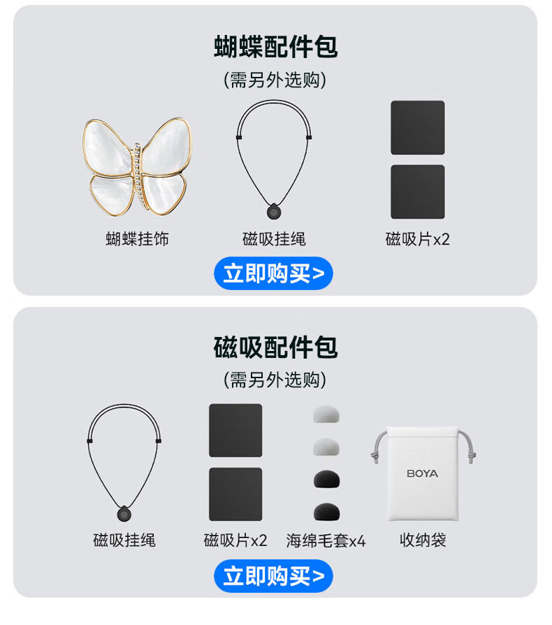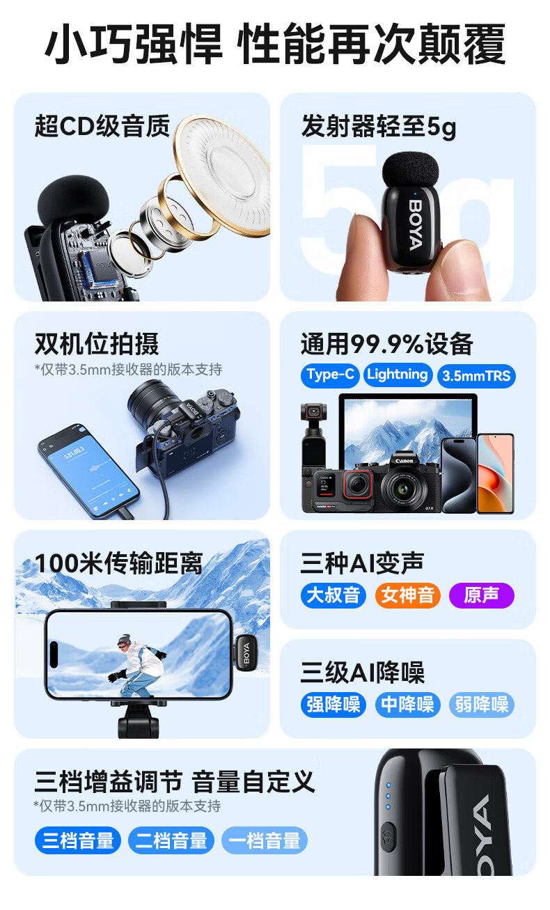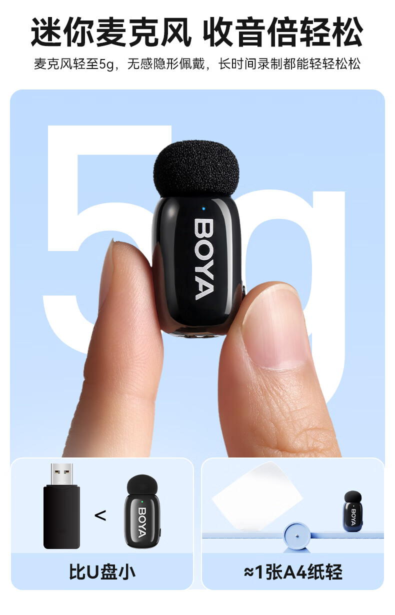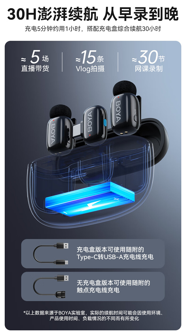 BOYA博雅mini无线领夹麦克风手机直播收音麦克风 户外短视频收音器AI降噪一拖二迷你话筒 Lightning版