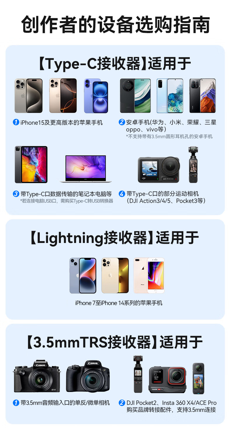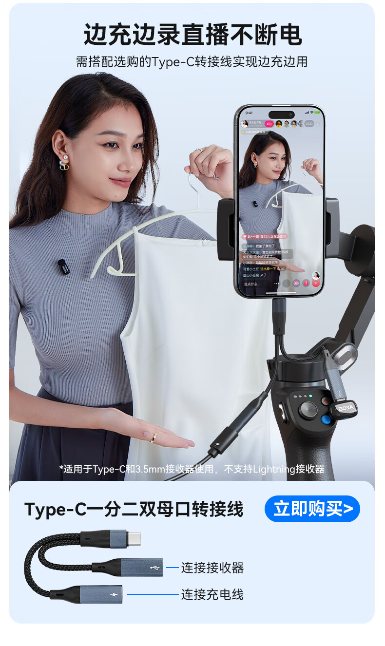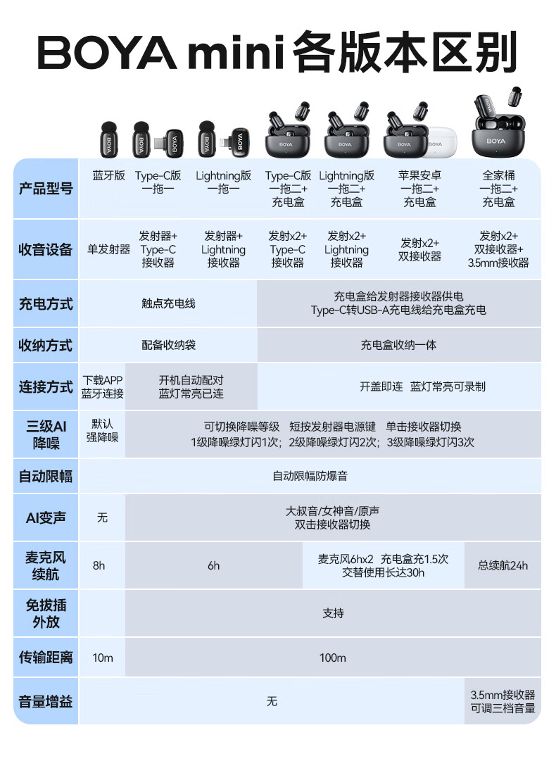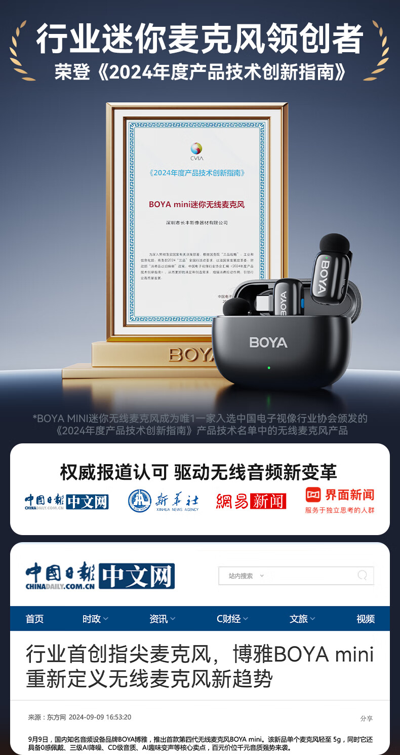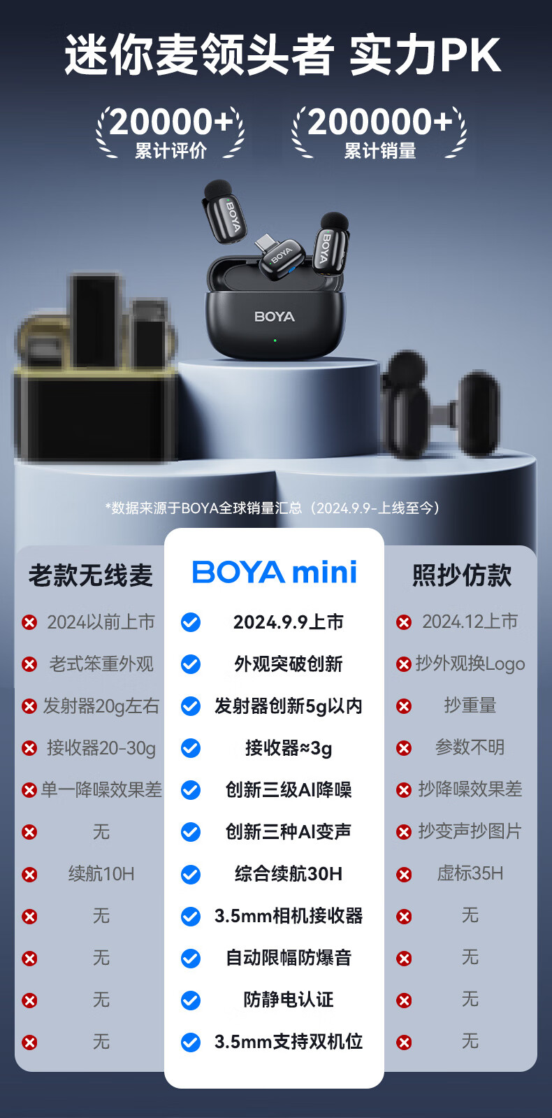 BOYA博雅mini无线领夹麦克风手机直播收音麦克风 户外短视频收音器AI降噪一拖二迷你话筒 Lightning版