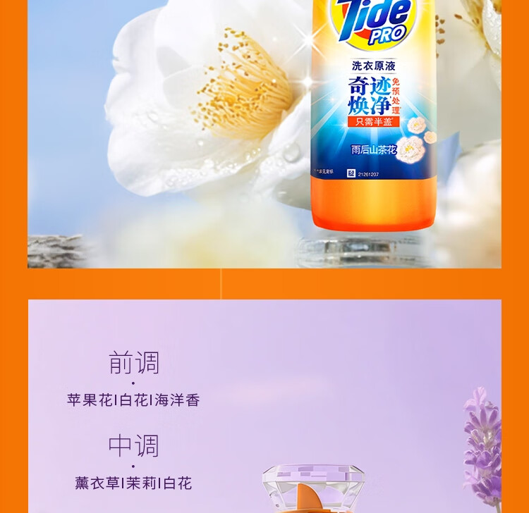 汰渍奇迹焕净持久留香洗衣原液800g山茶花香快洗去渍护色洗衣液