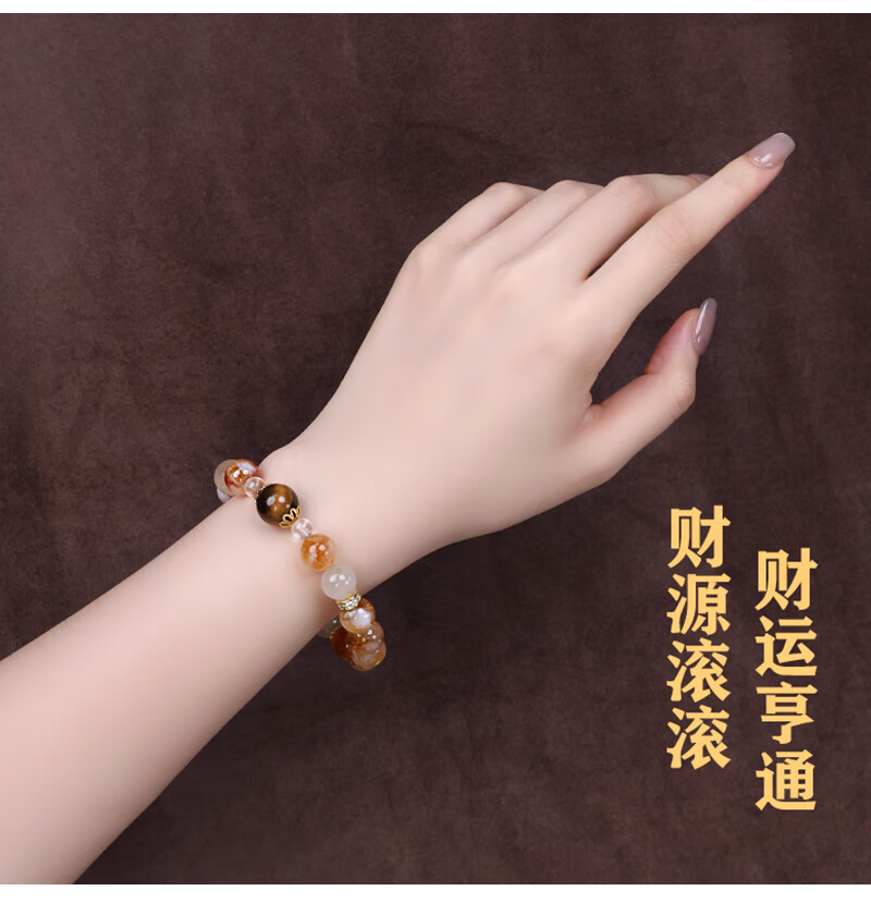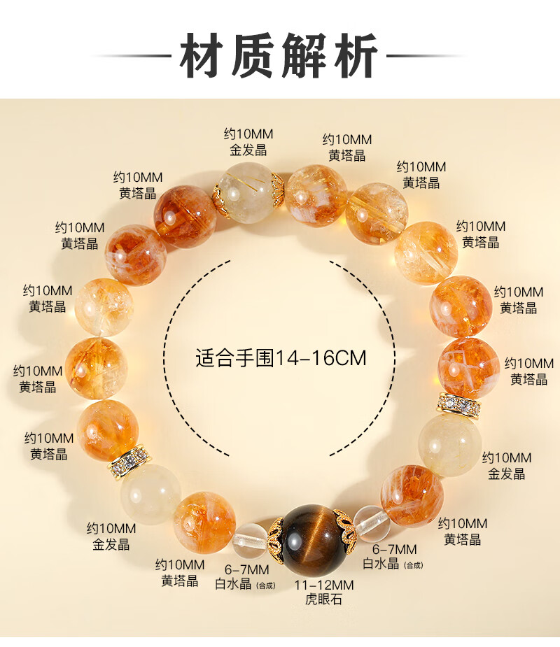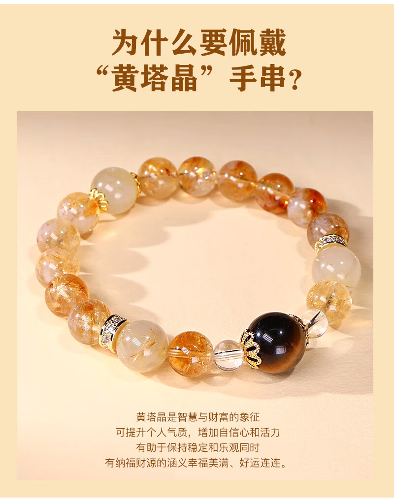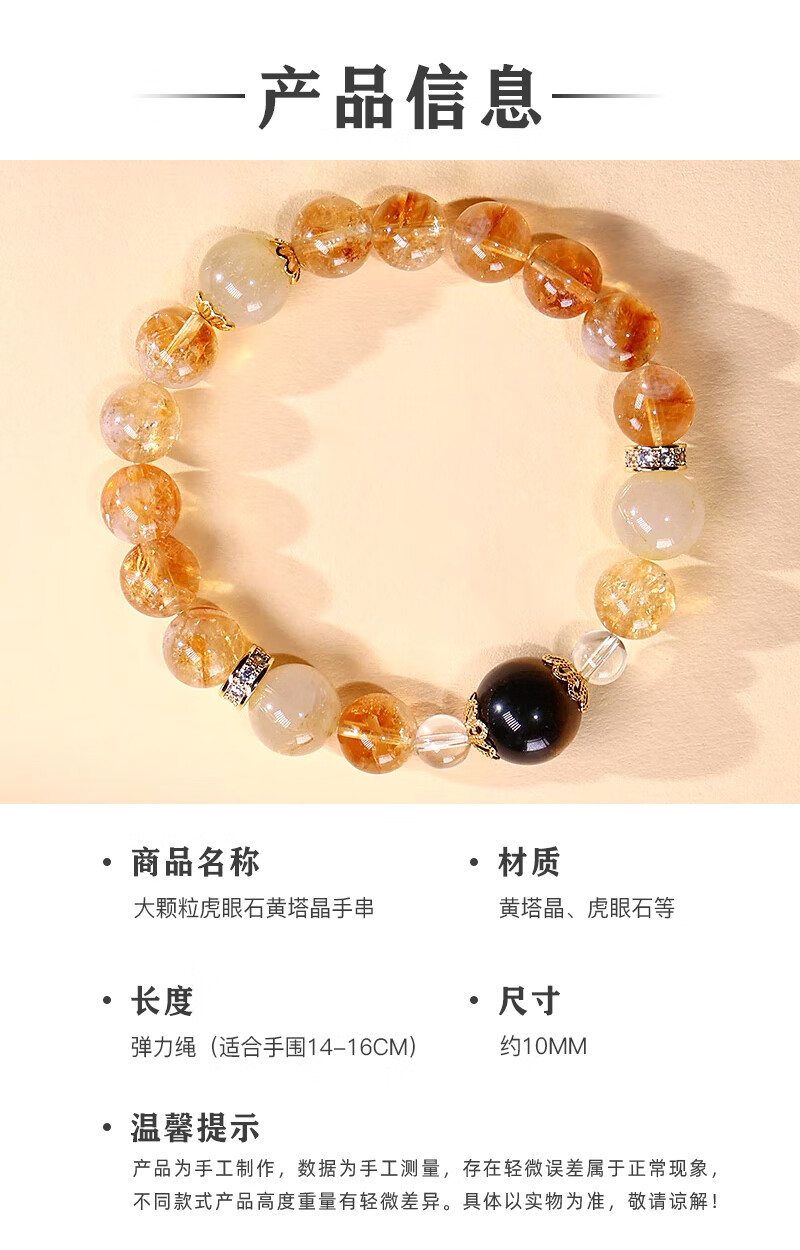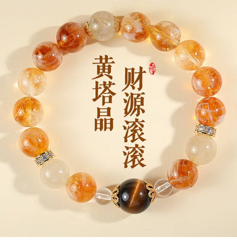 慕梵大颗粒黄塔水晶手串本命年虎眼石转运珠手链生日礼物送男女朋友