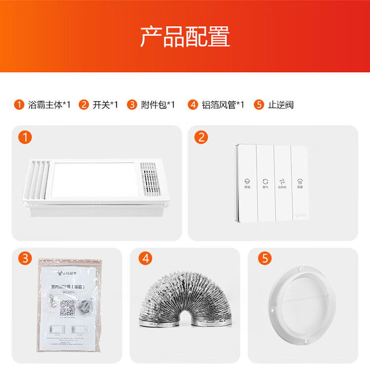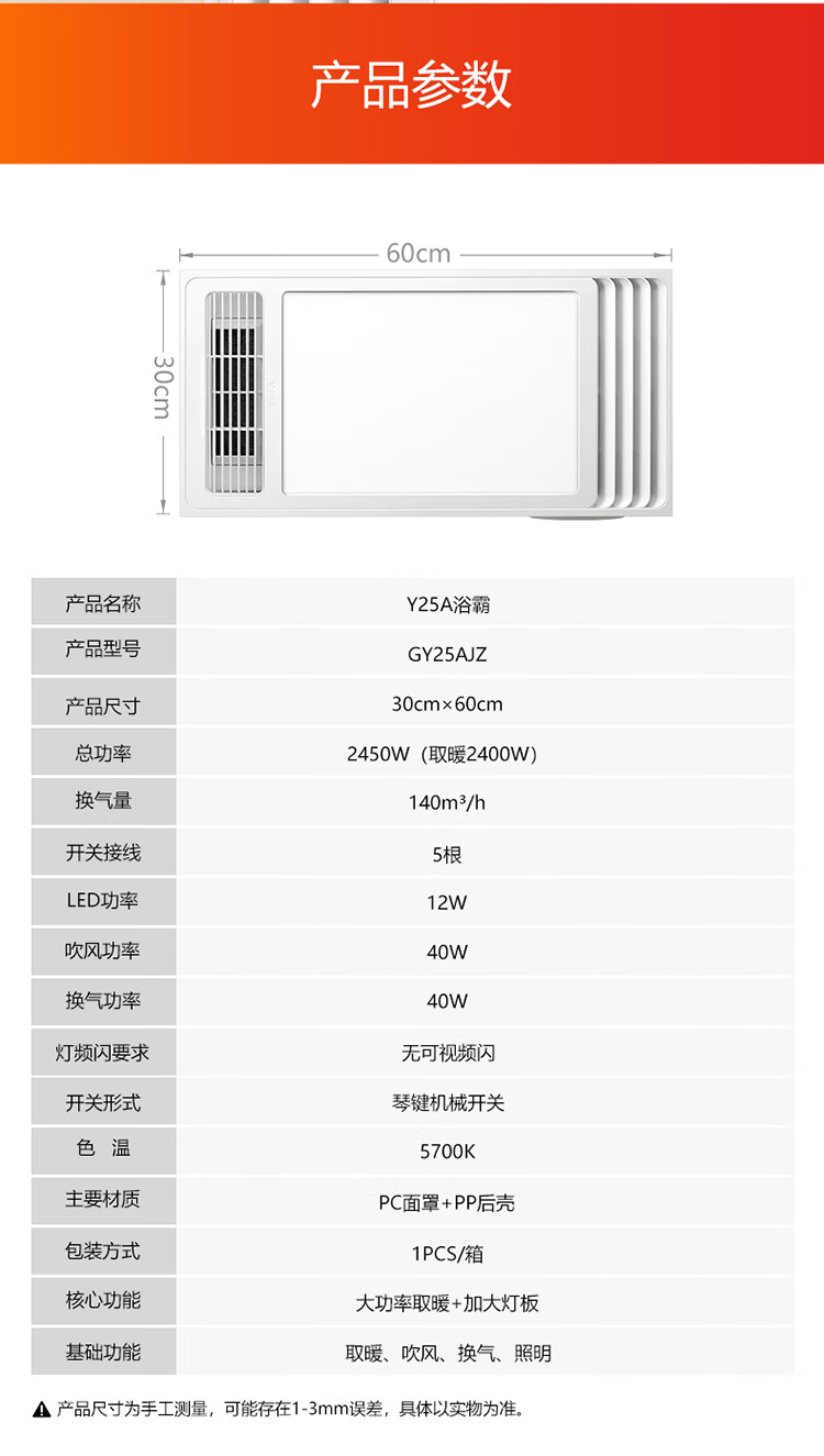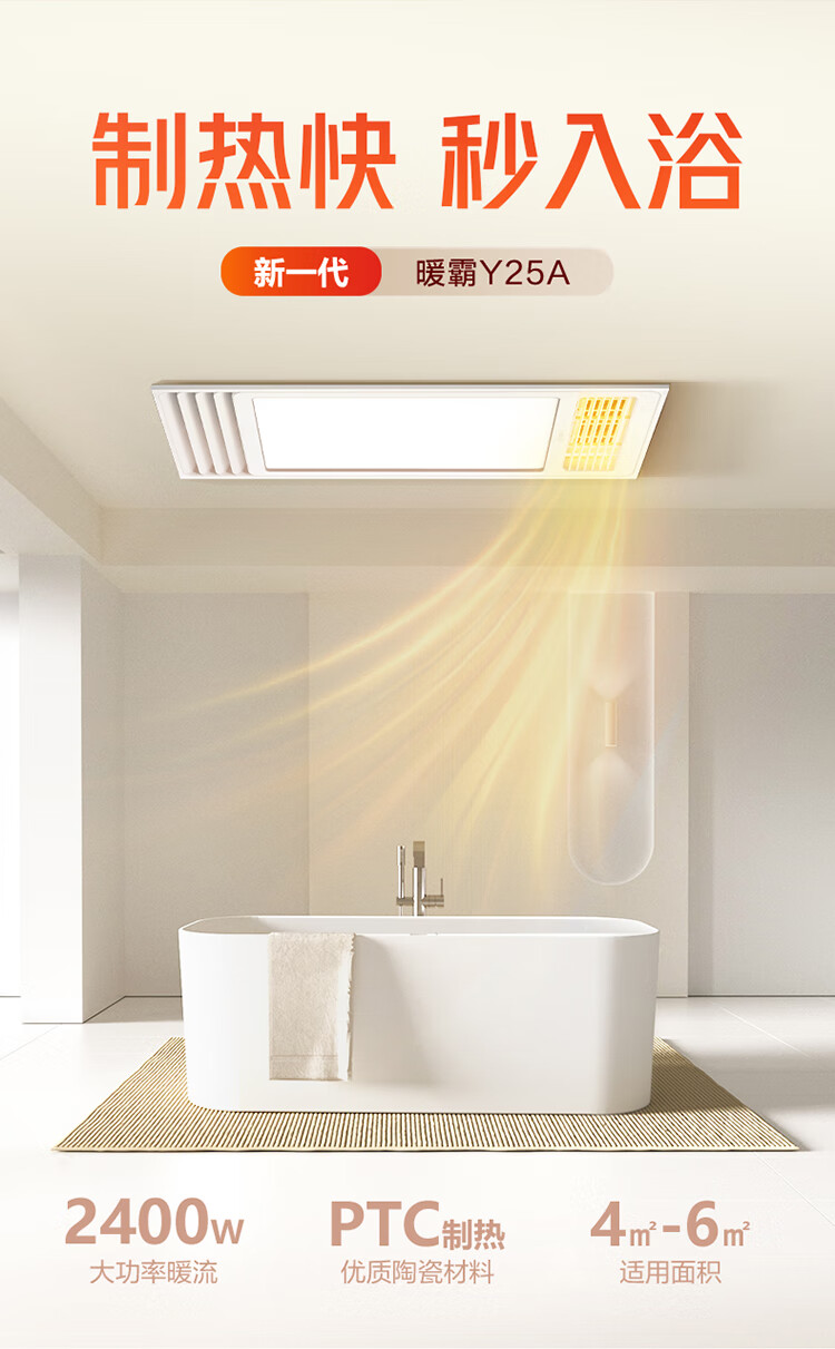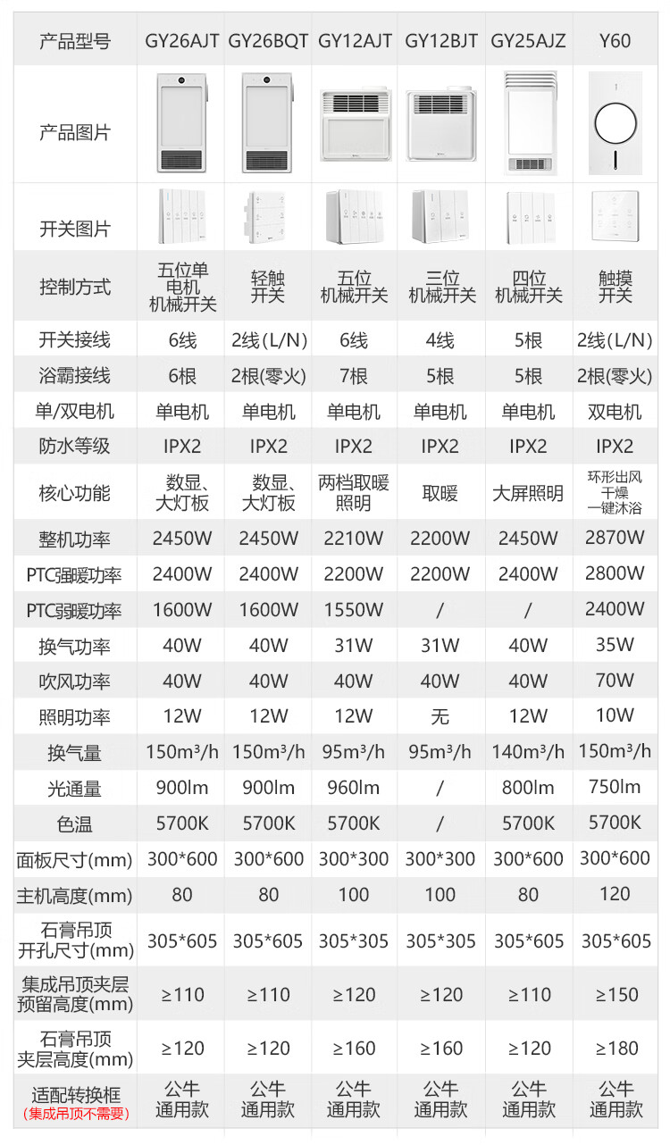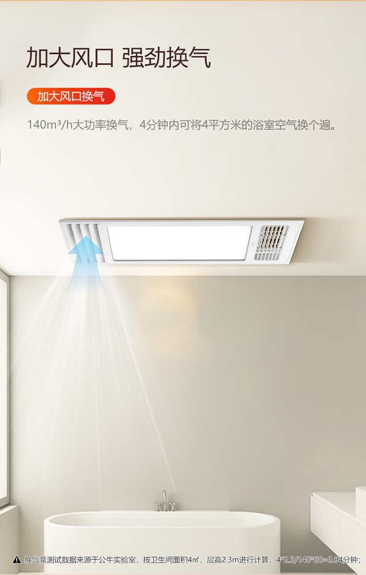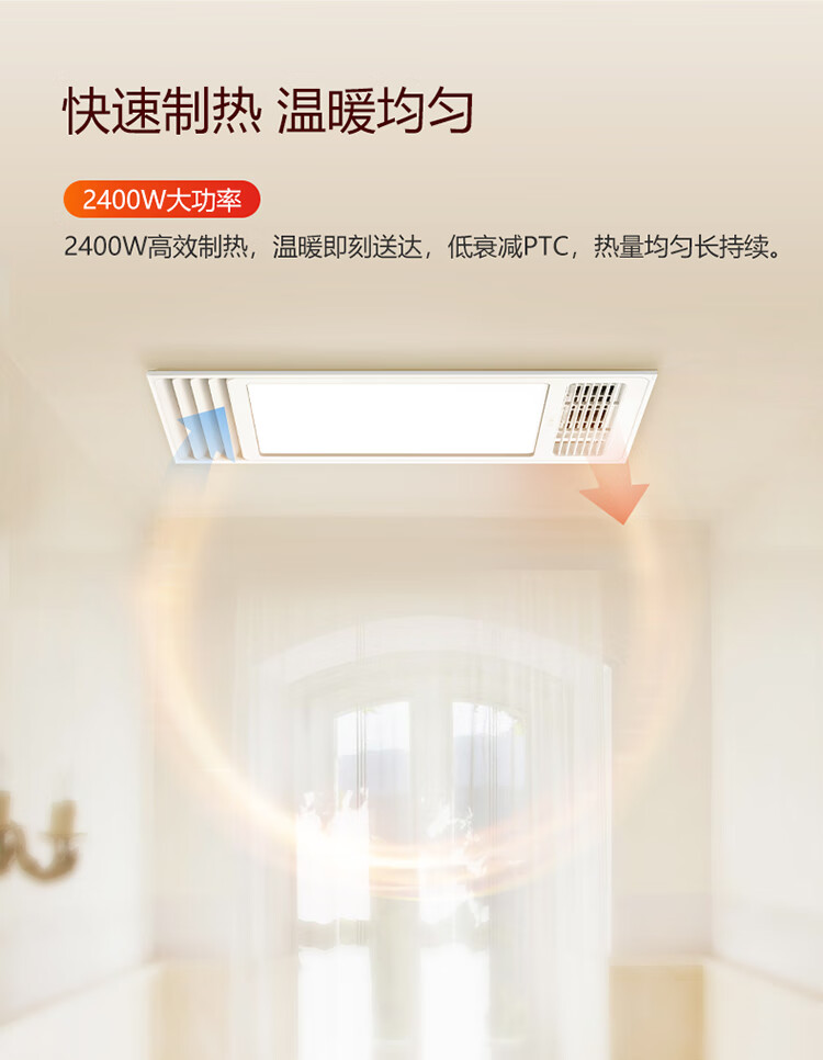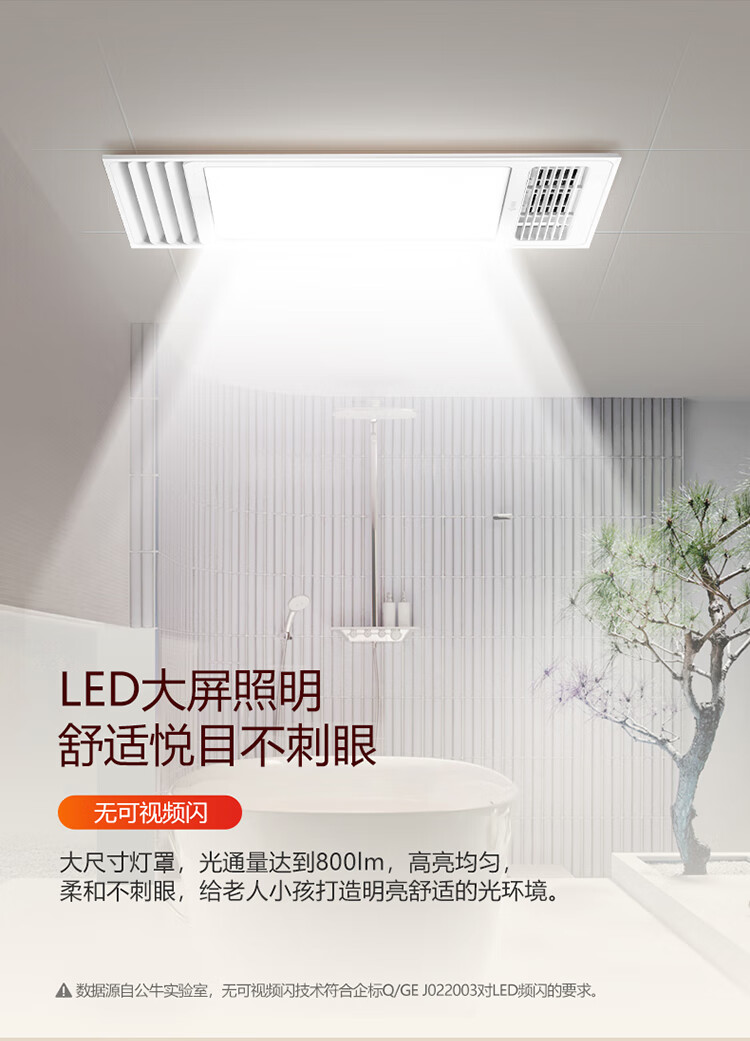 公牛(BULL)浴霸风暖照明排气一体集成300*600大功率2450W卫生间速热GY25AJZ