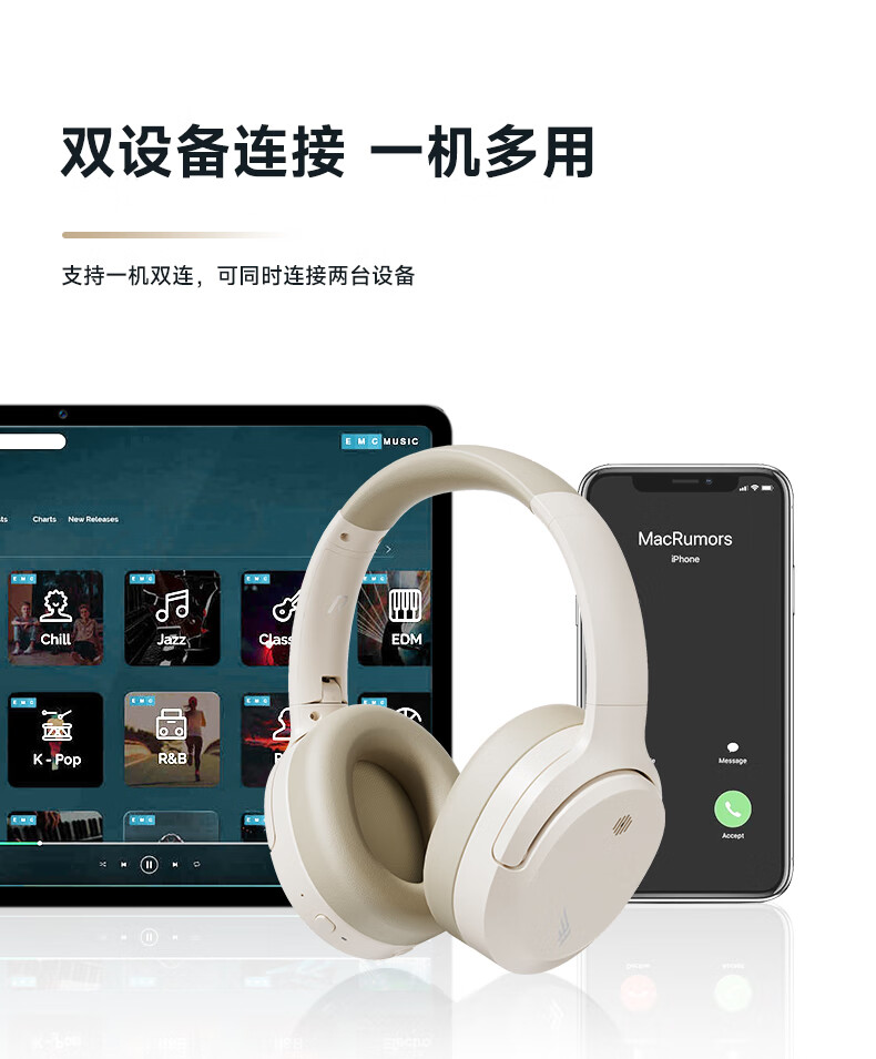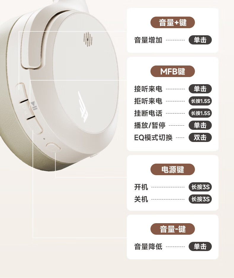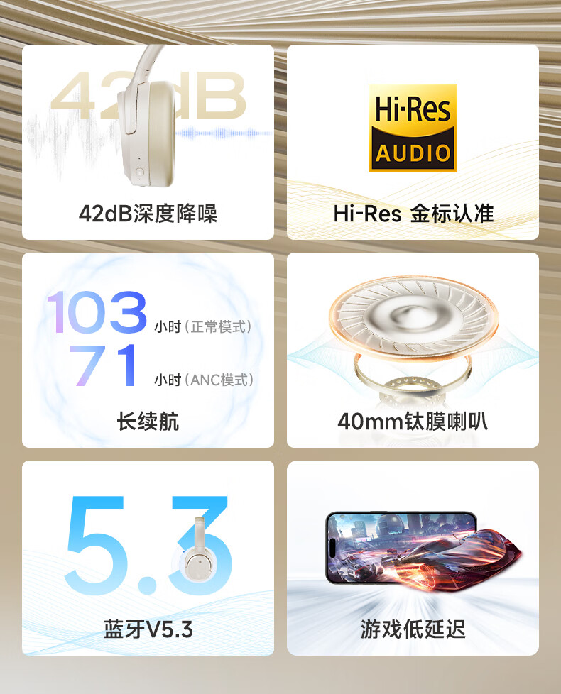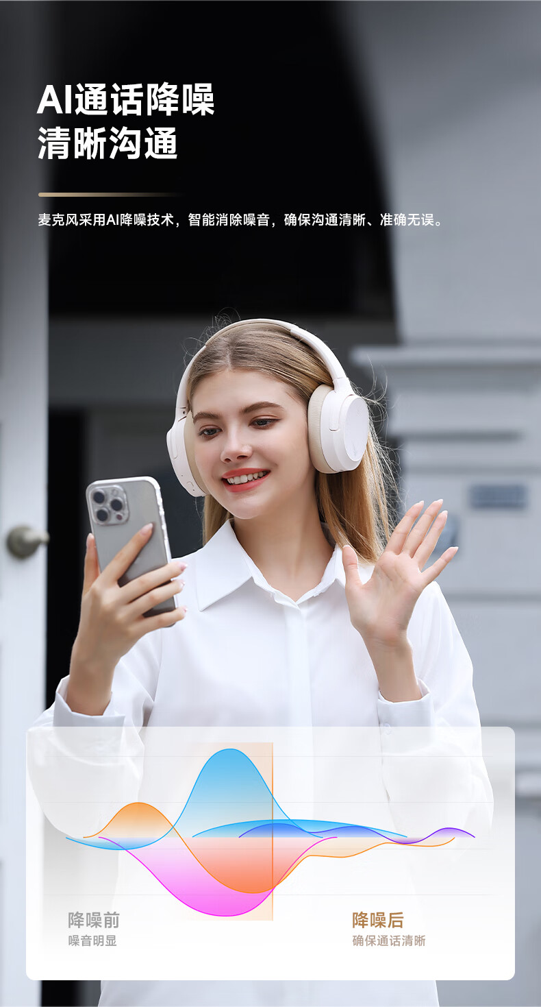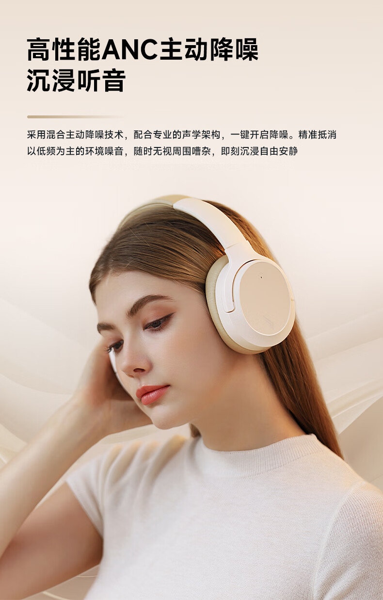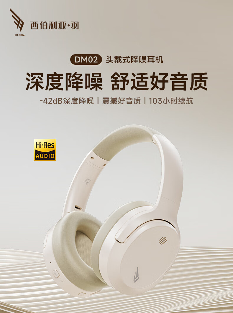 西伯利亚(XIBERIA)羽DM02主动降噪金标认证无线头戴式蓝牙耳机超长续航降噪音乐游戏运动耳机云烟白