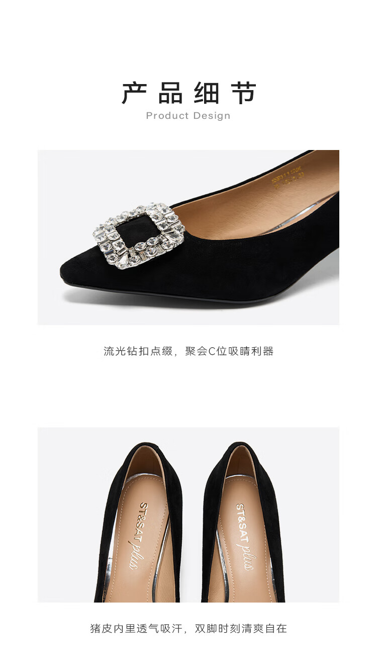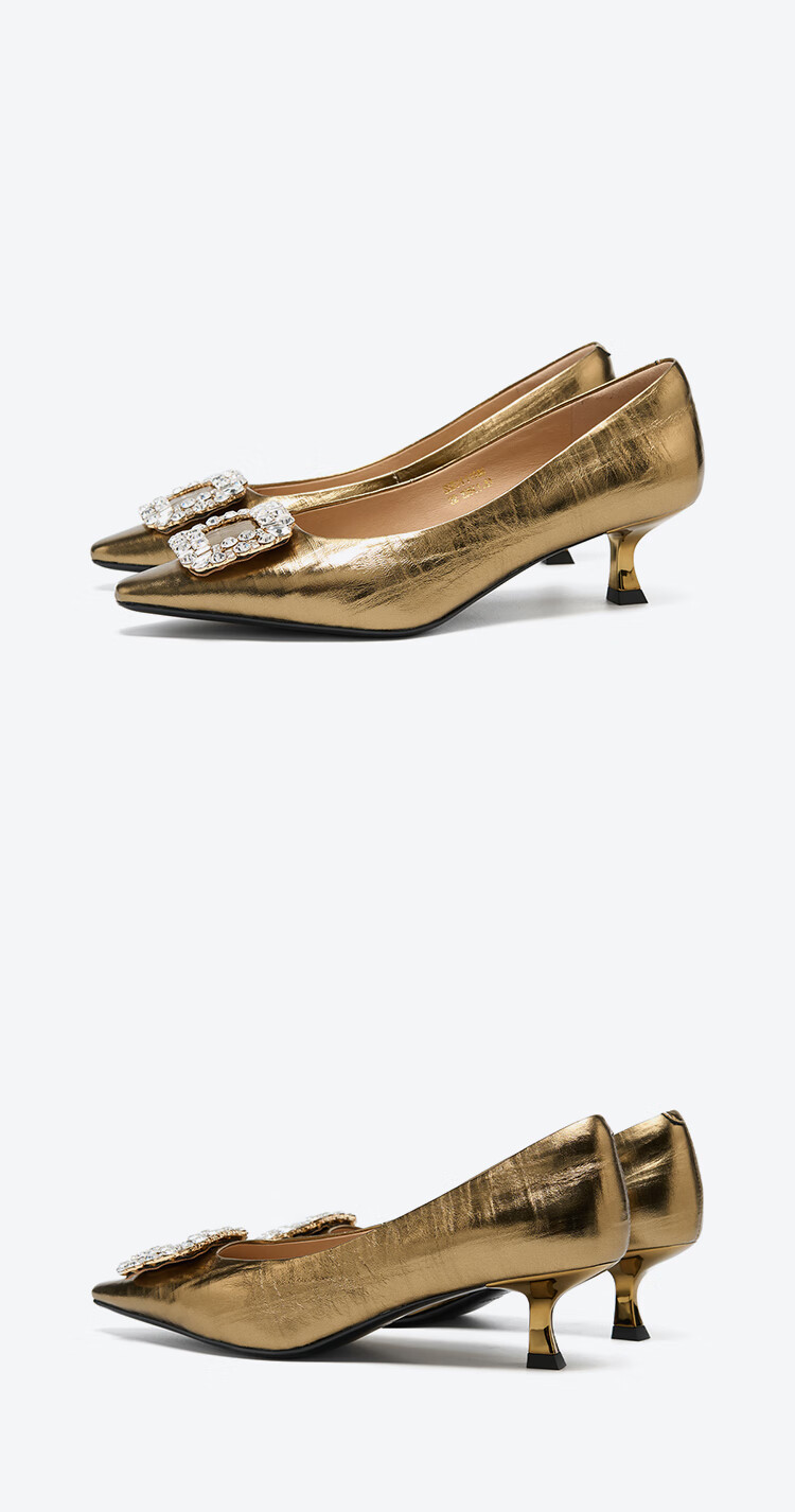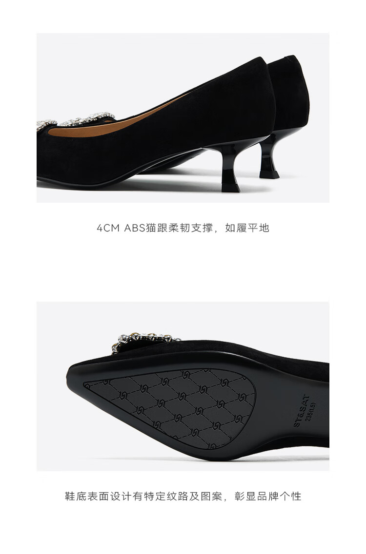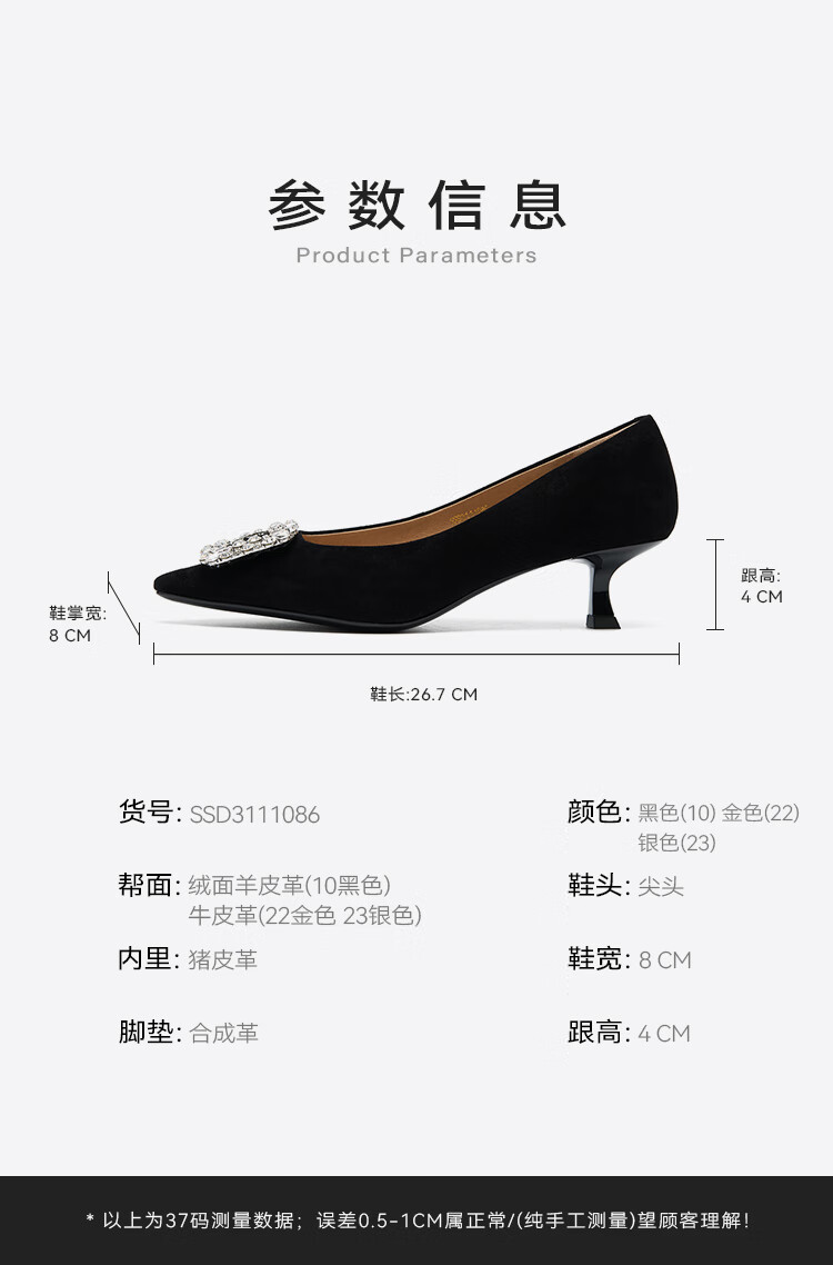 星期六尖头女鞋2025秋款优雅浅口细跟高跟欧美风女单鞋SSD3111086 金色 39