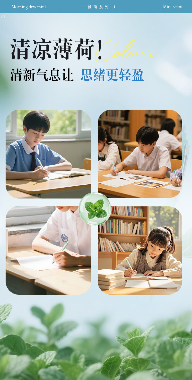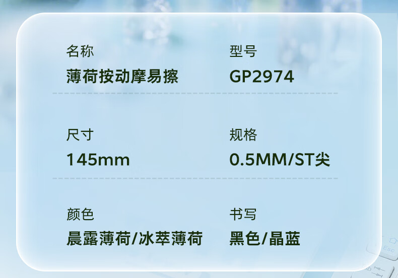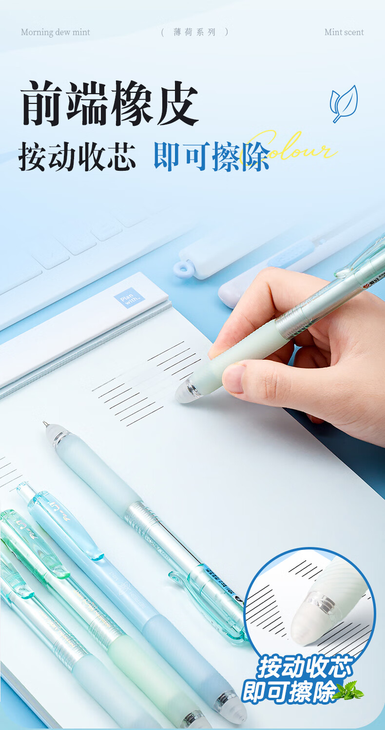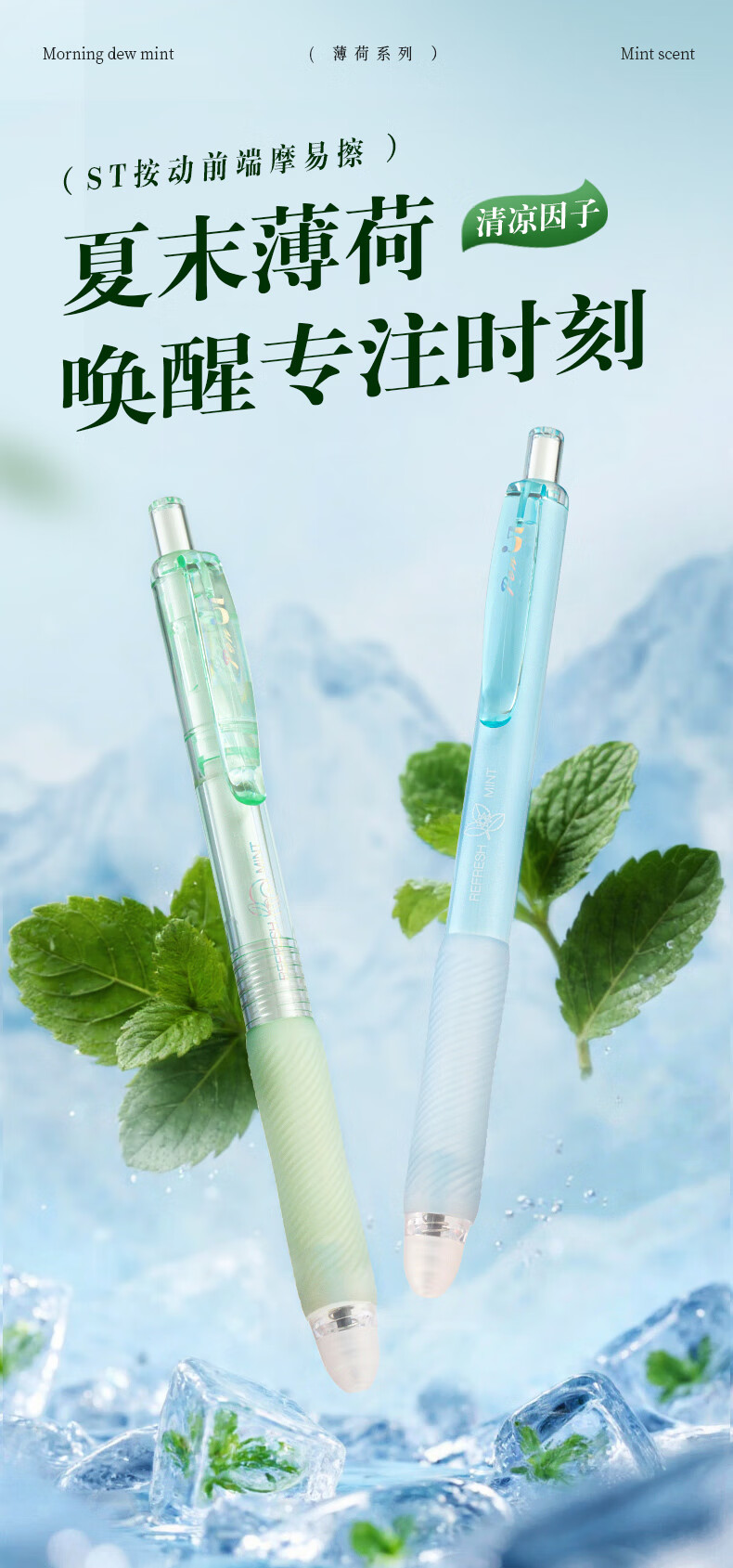 爱好(AIHAO)薄荷香味可擦笔ST尖晶蓝色按动学生热可擦中性笔高颜值笔刷题笔3支 GP2974