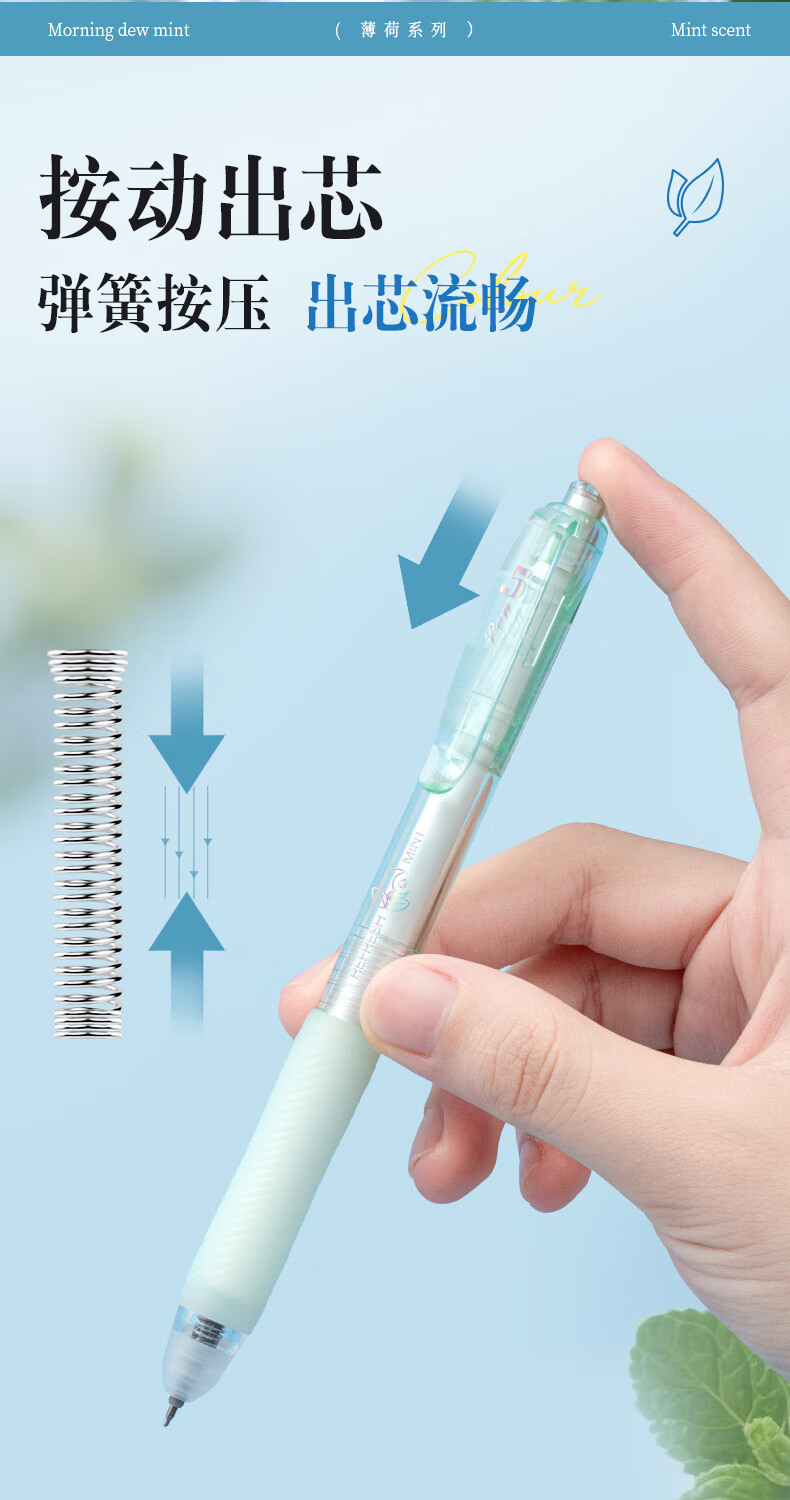六品堂0.5K-35静音按动中性笔高颜值刷题速干顺滑碳素笔黑色教师办公学生考试针管笔中性笔 静音按动中性笔-淡蓝*4支 0.5+mm