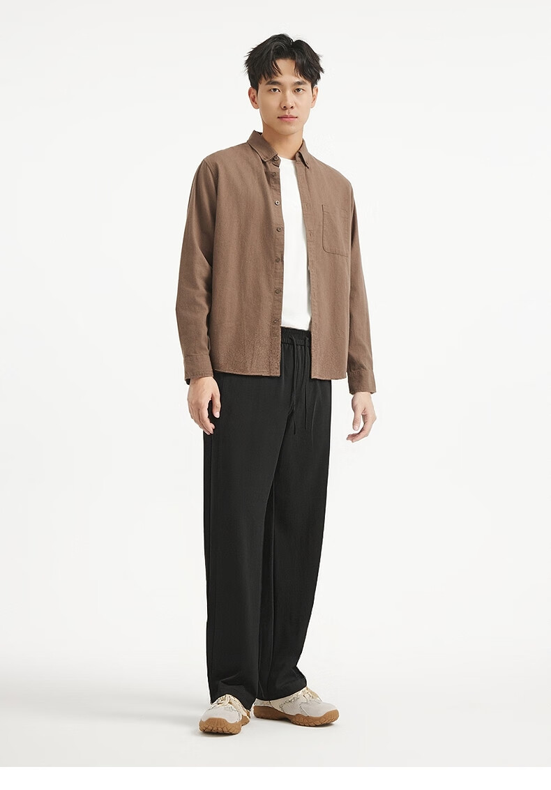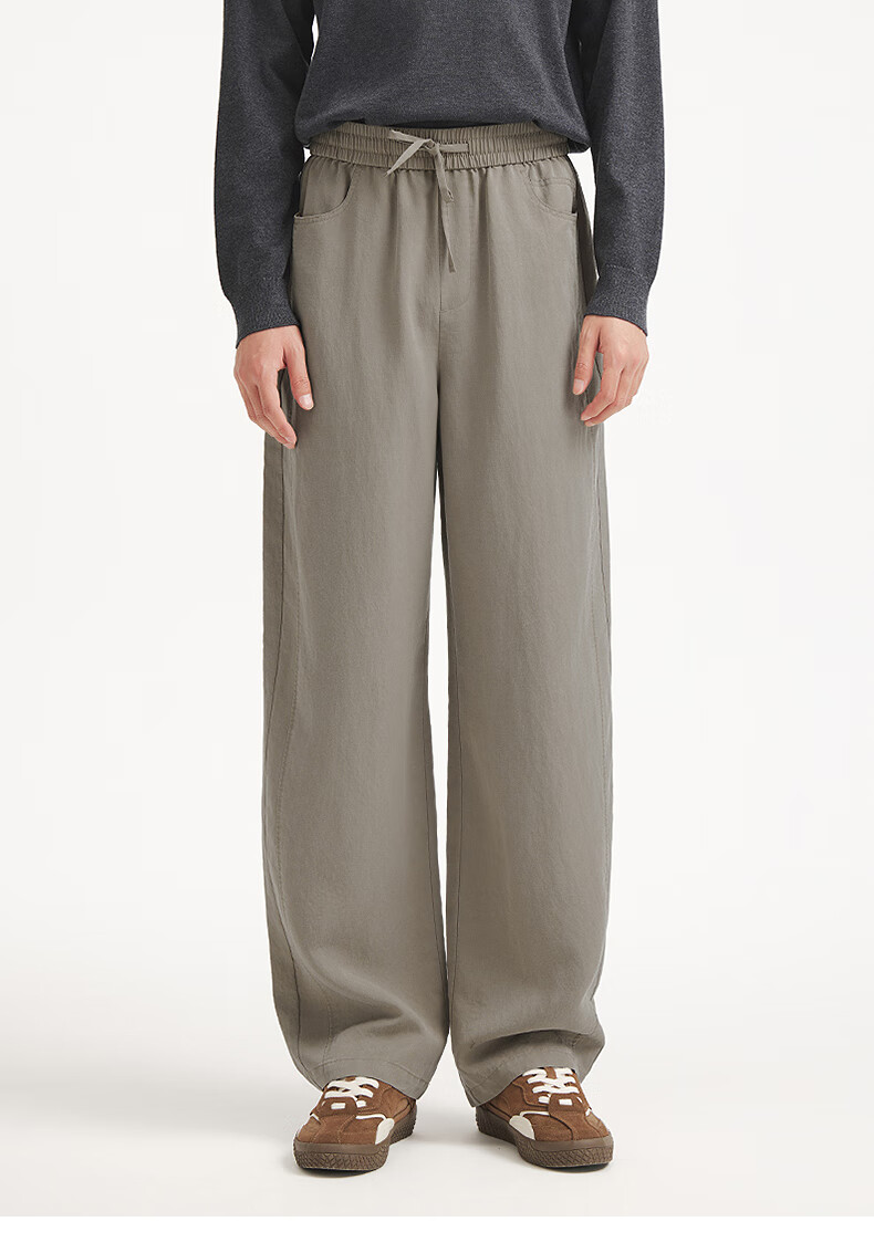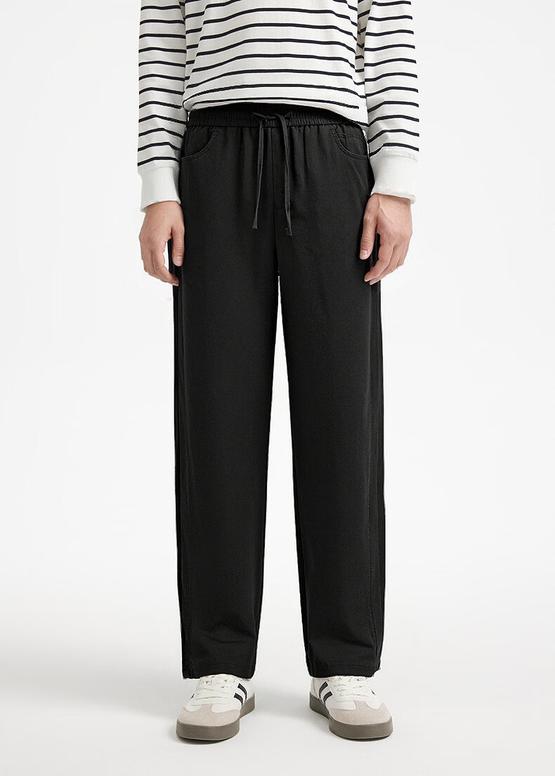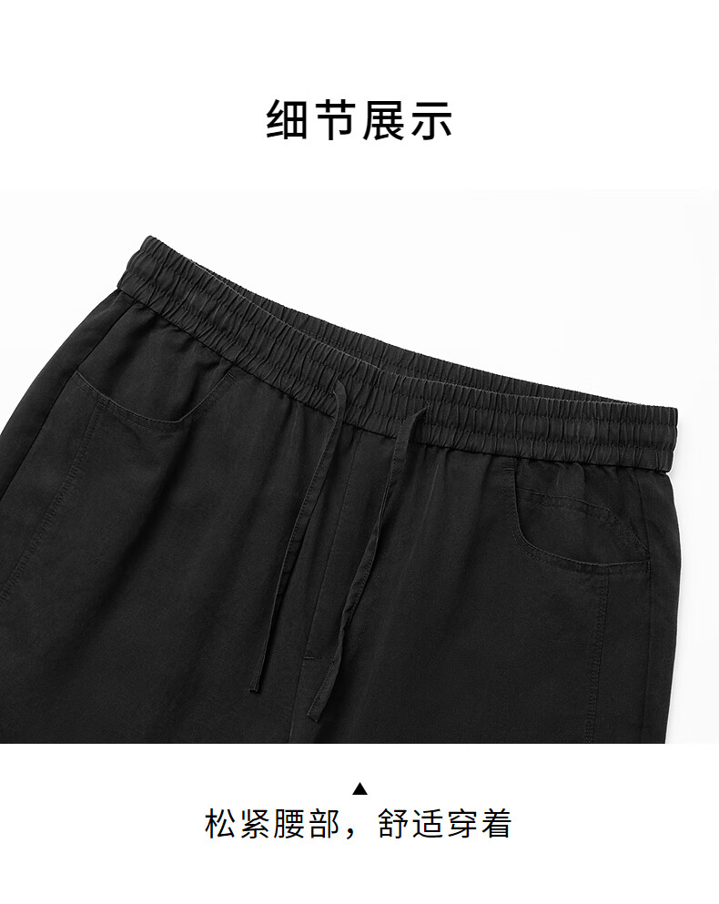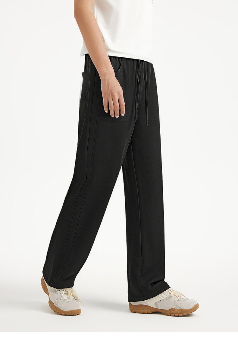 热风【商场同款】男士长裤2025年秋新款舒适宽松长裤松紧腰莱赛尔裤子 01黑色 S