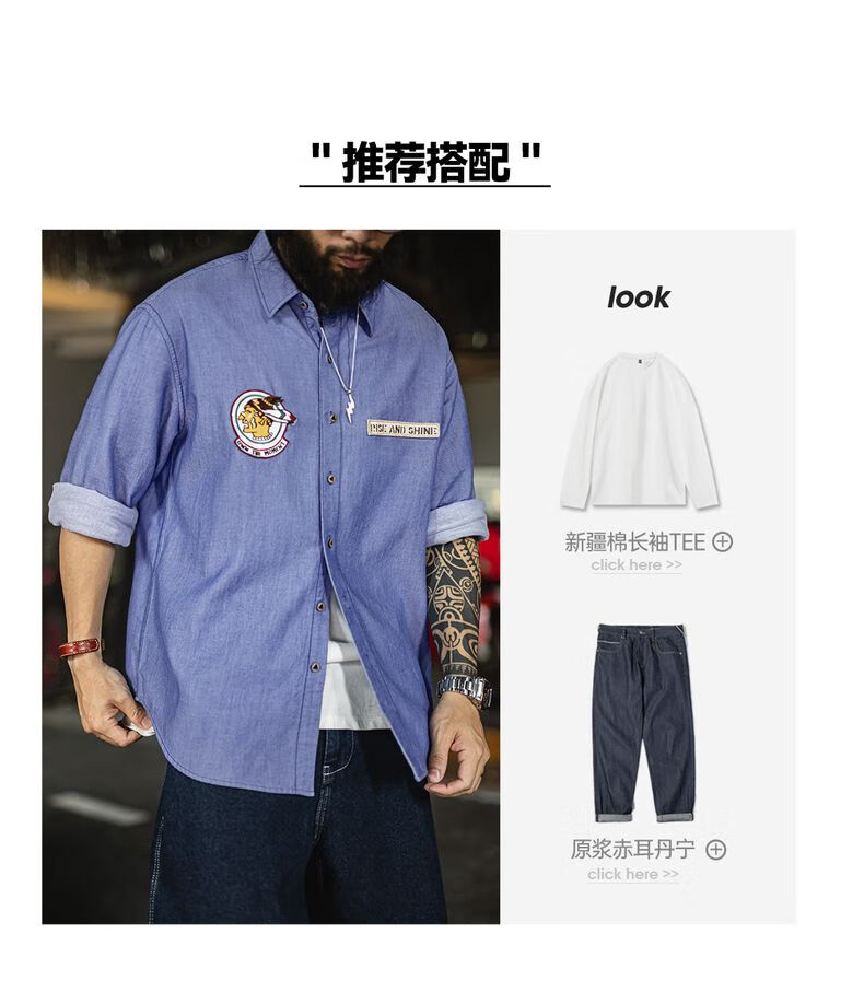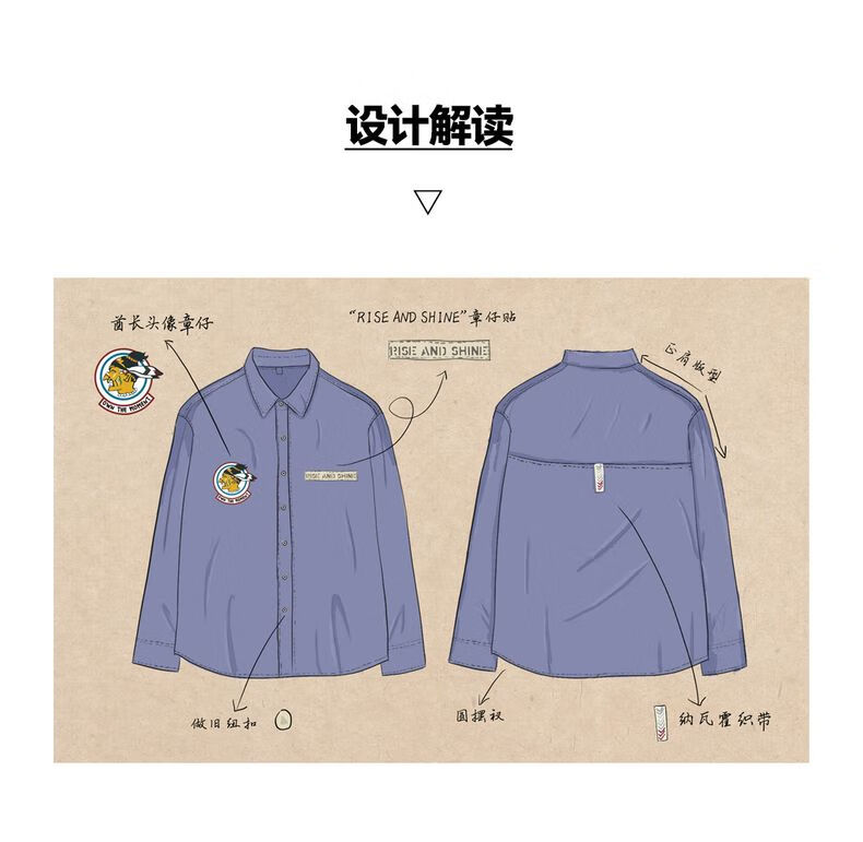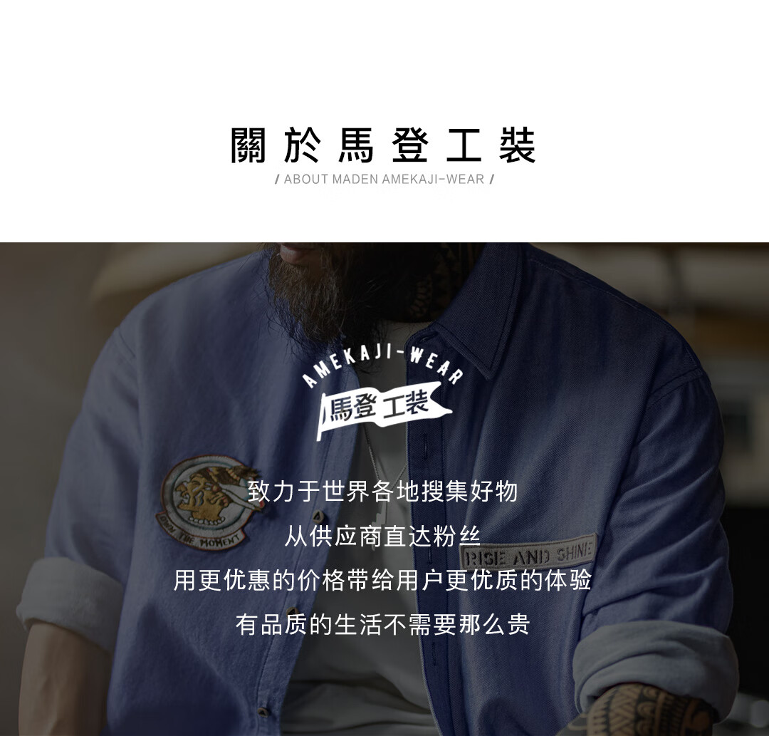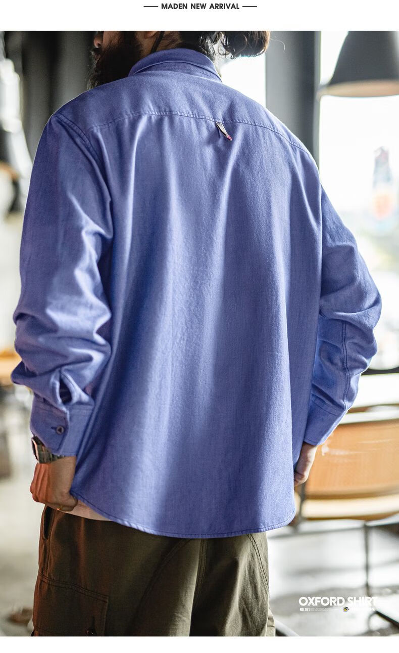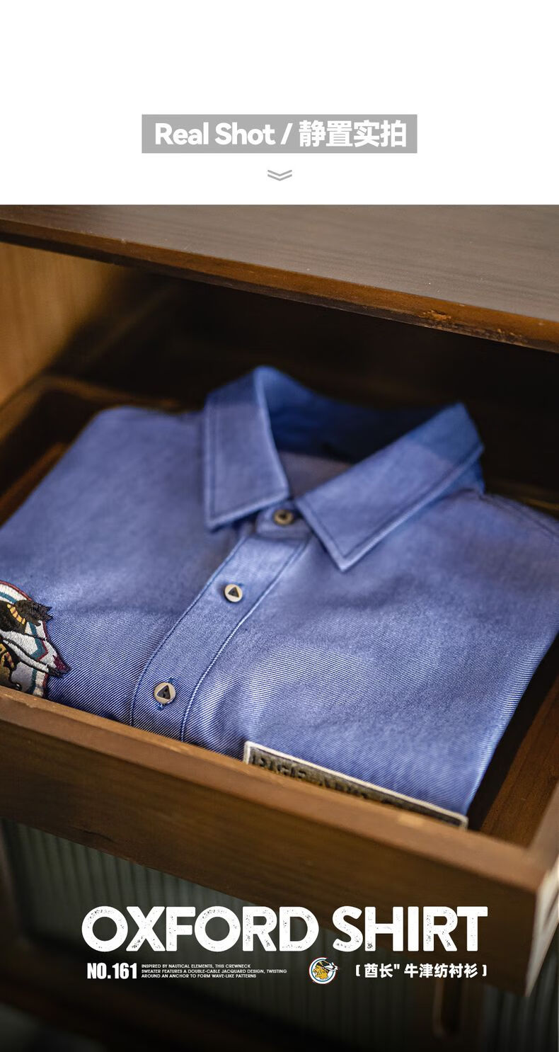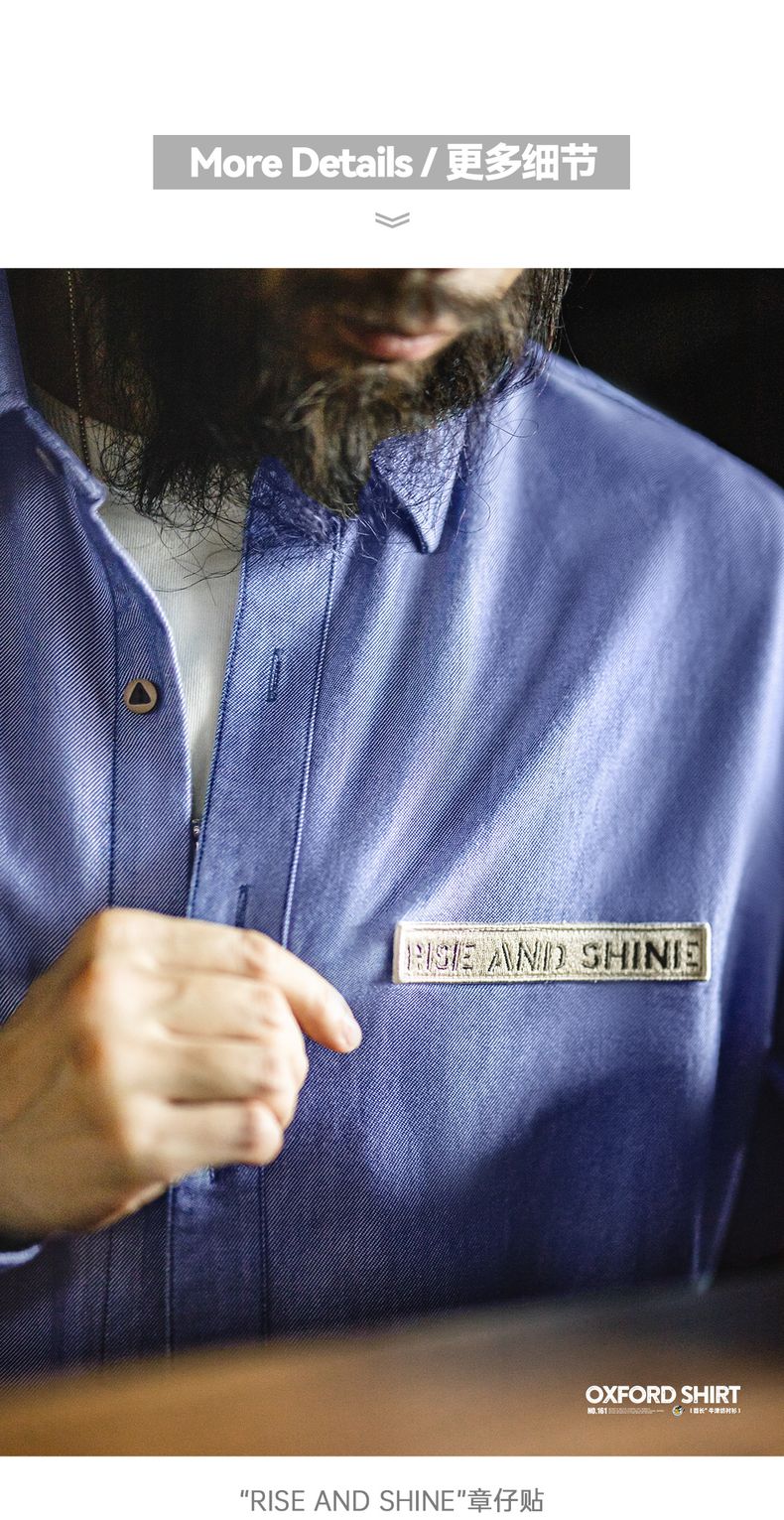 马登工装美式休闲牛津纺长袖衬衫男刺绣章仔纯棉男士衬衣外套秋季薄款 牛津蓝 L