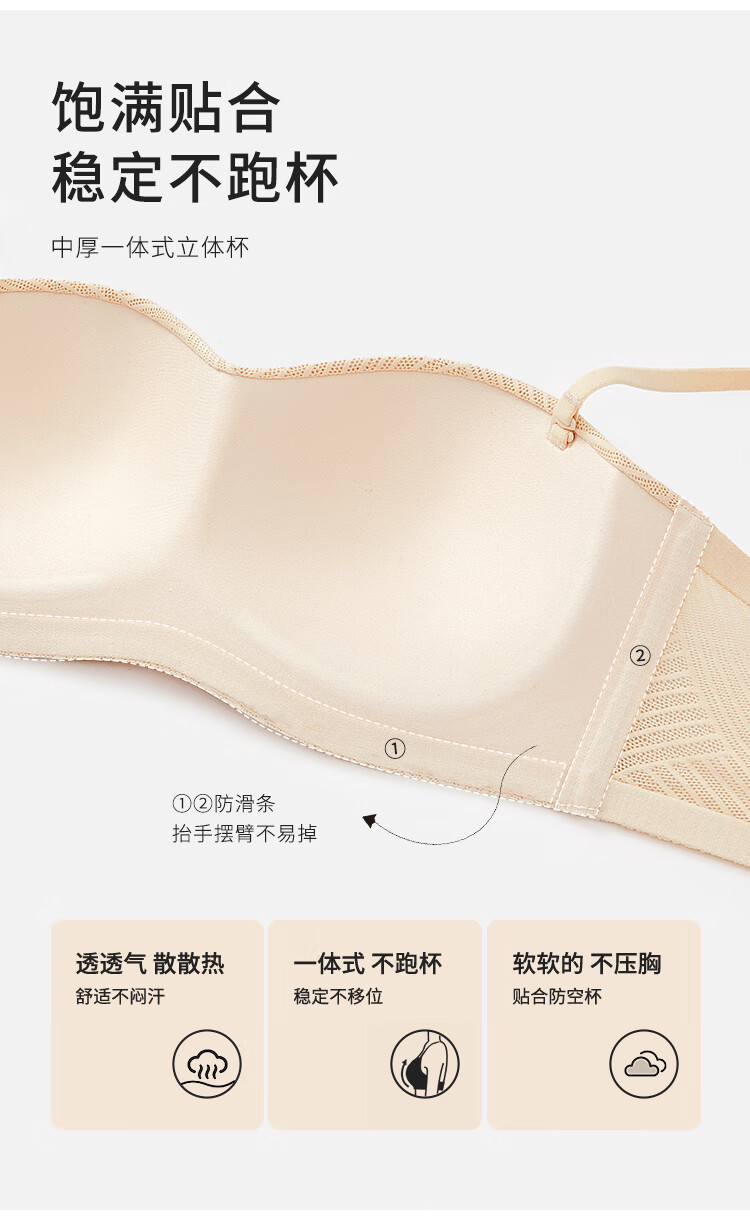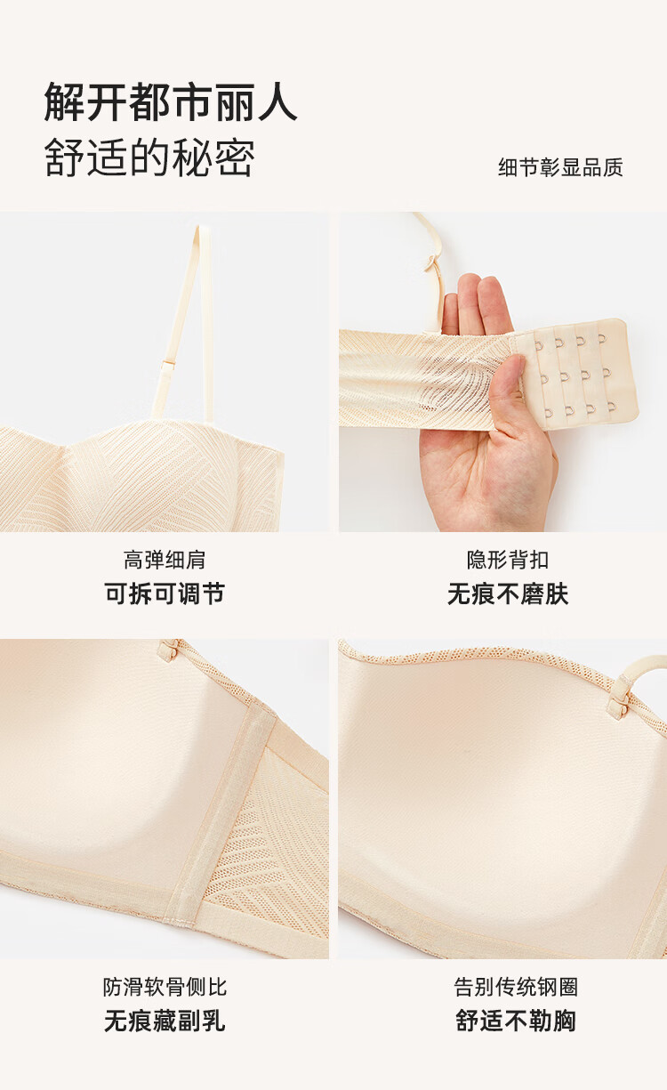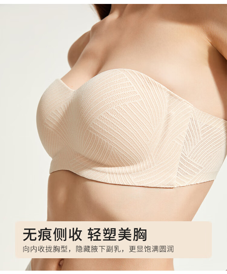 都市丽人内衣女文胸无钢圈蕾丝性感无痕软支撑薄款抹胸聚拢胸罩2B352P